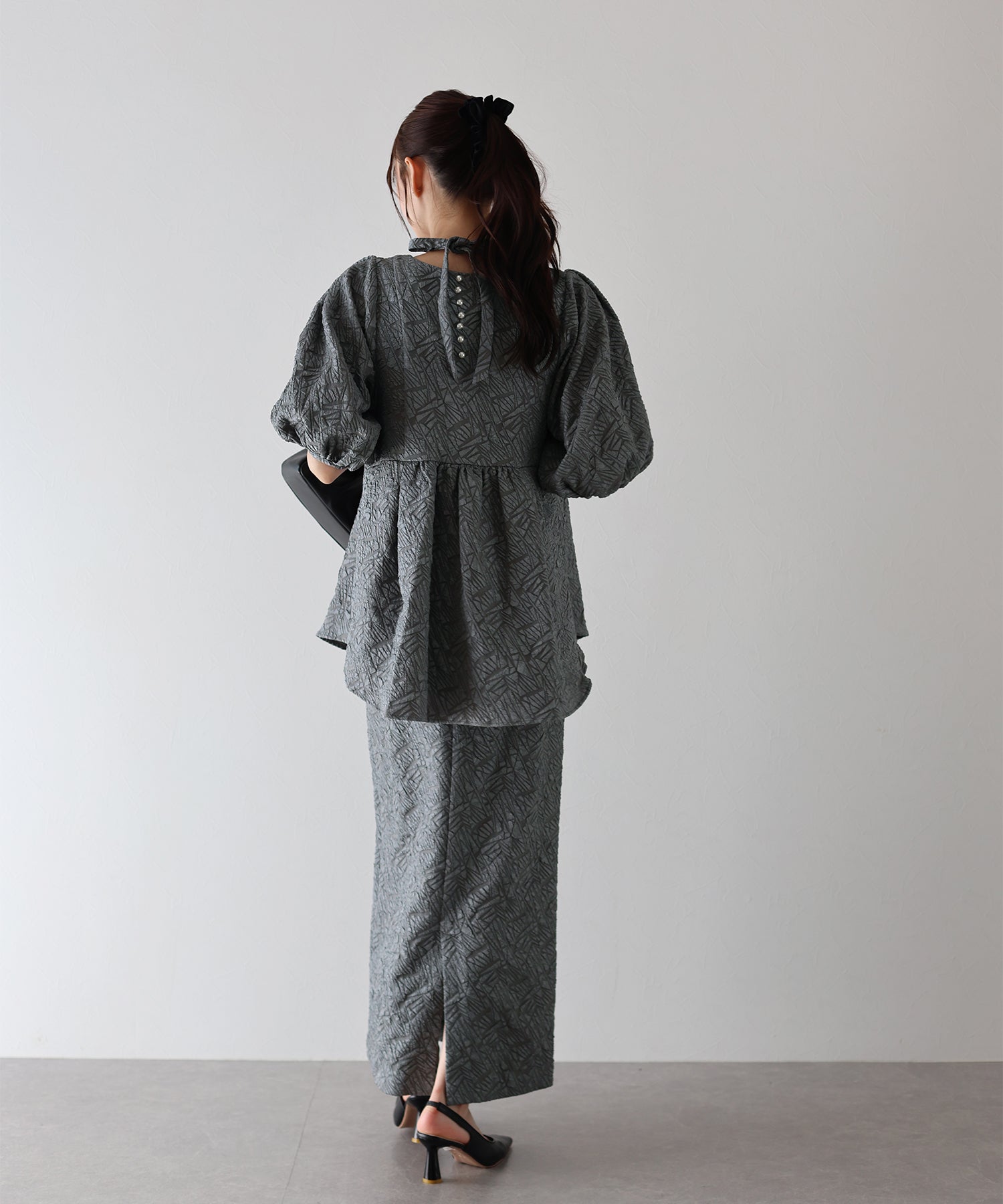 大きく見せすぎない絶妙なシルエットでペプラムの裾はお尻まですっぽりカバー。