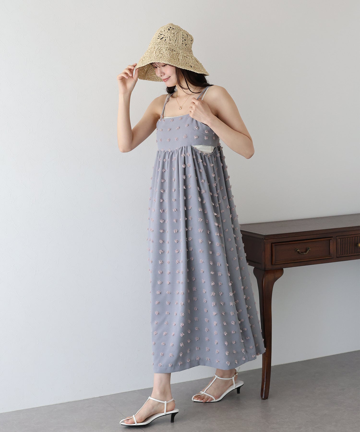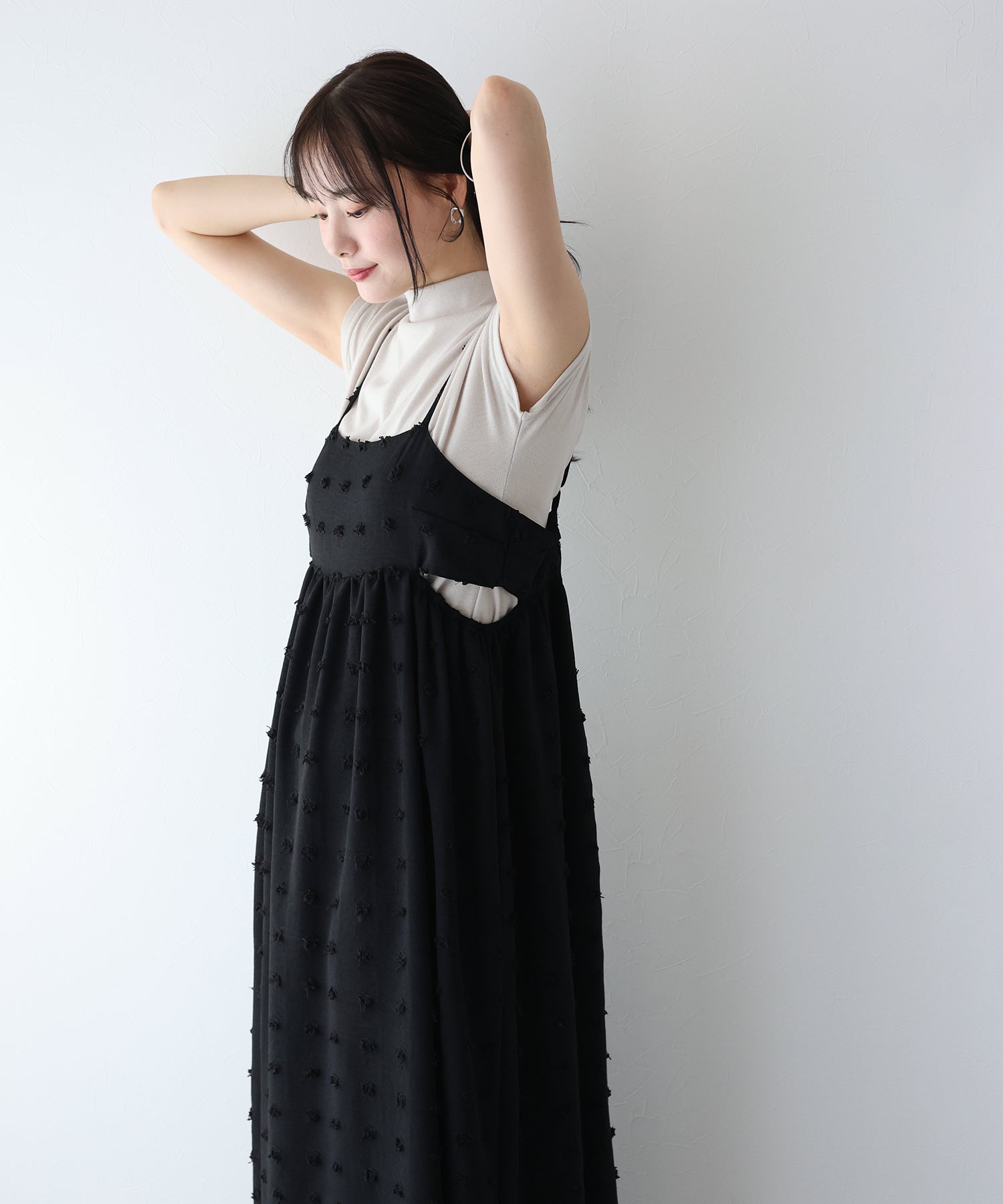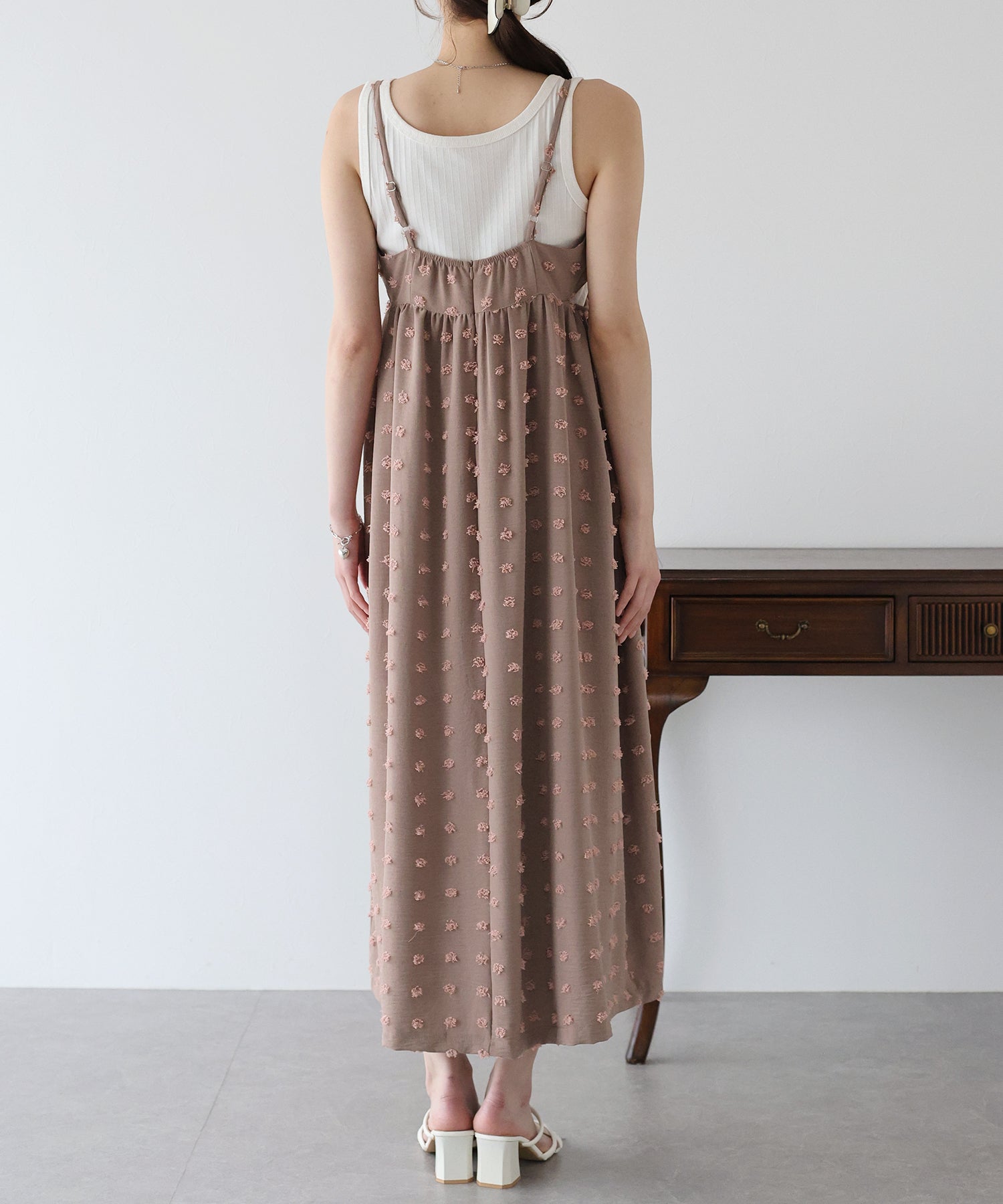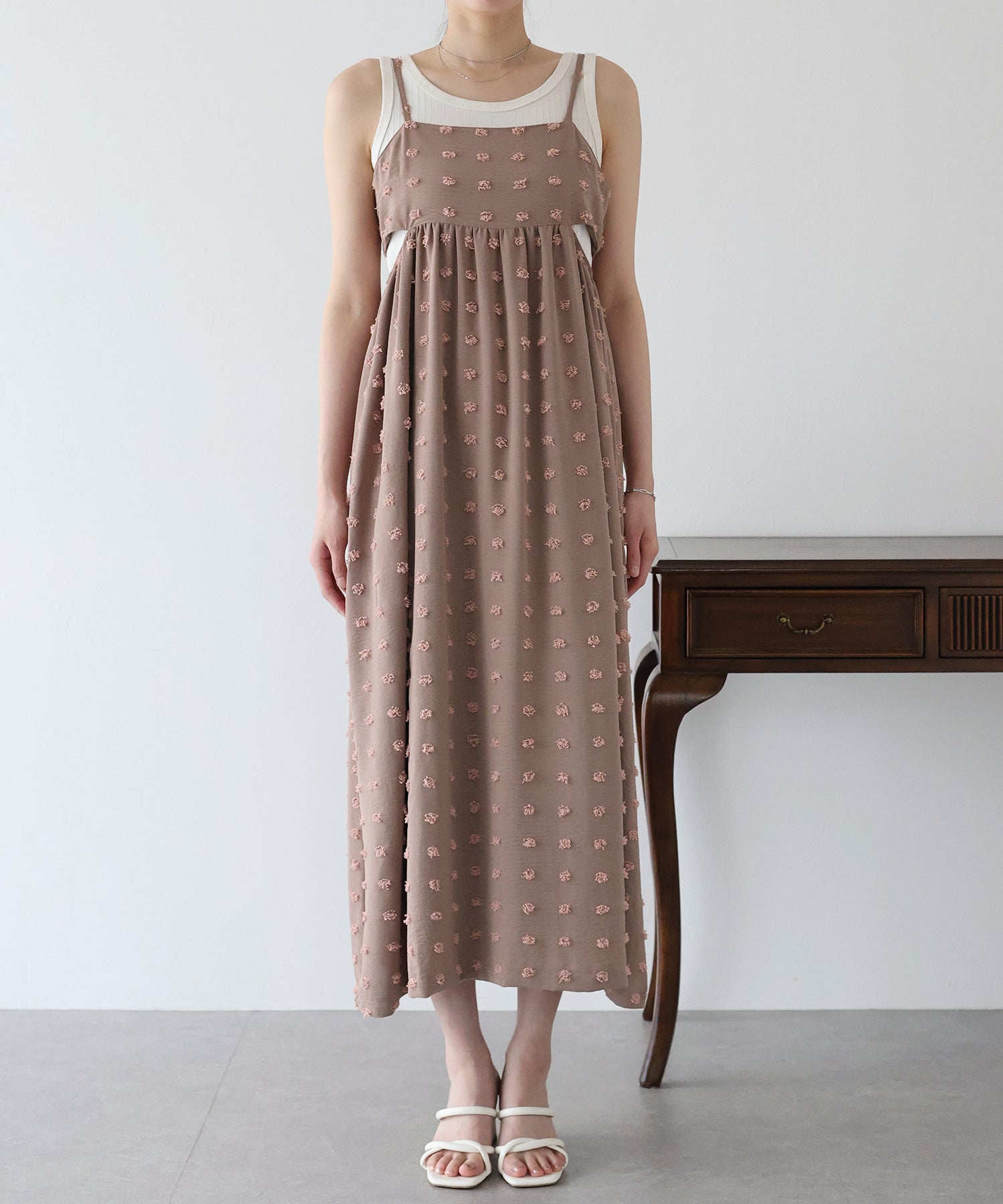 カジュアル×立体的なドット柄のキャミワンピ