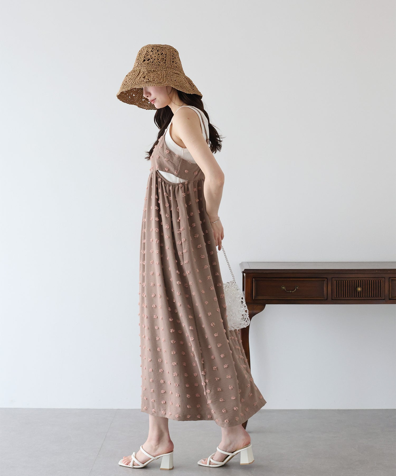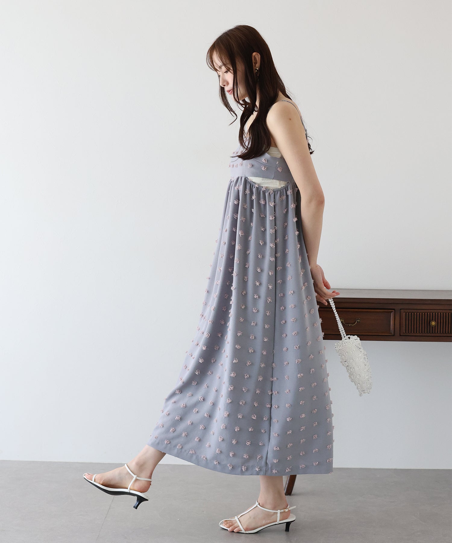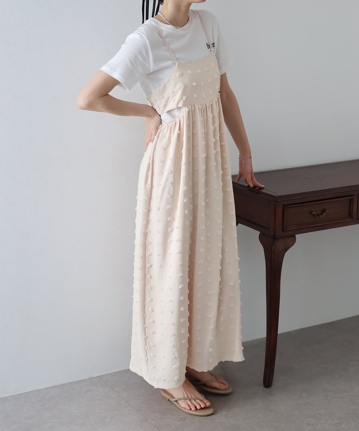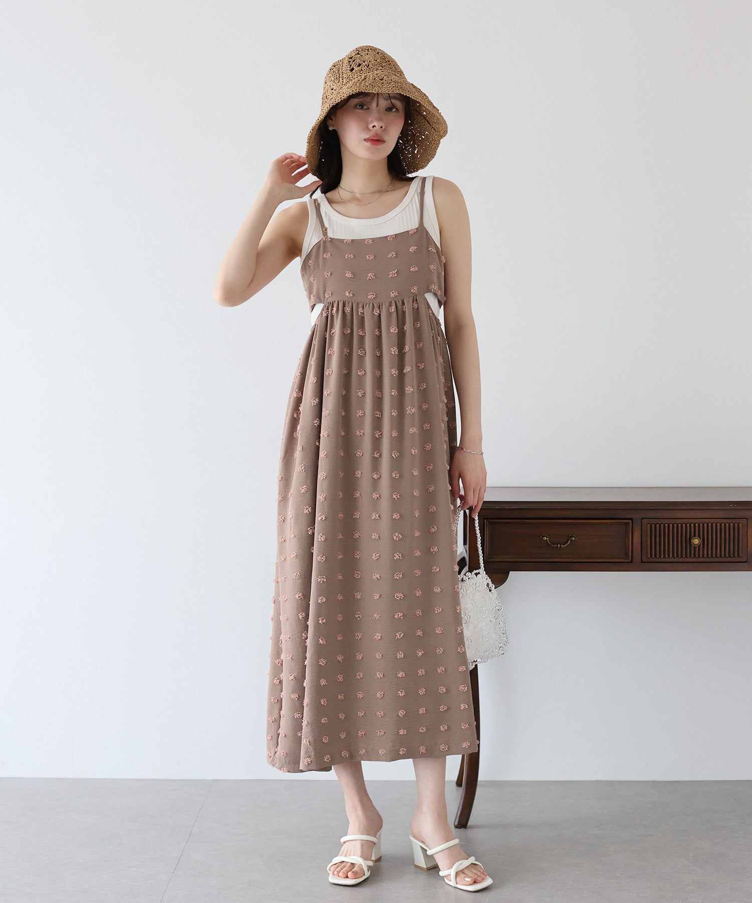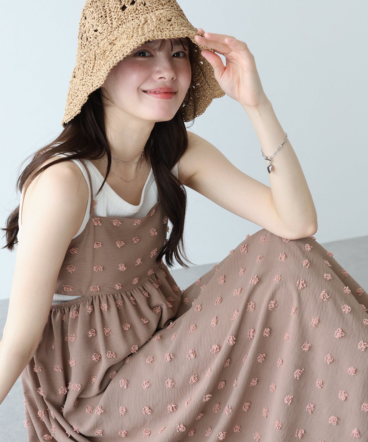 カジュアル×立体的なドット柄のキャミワンピ
