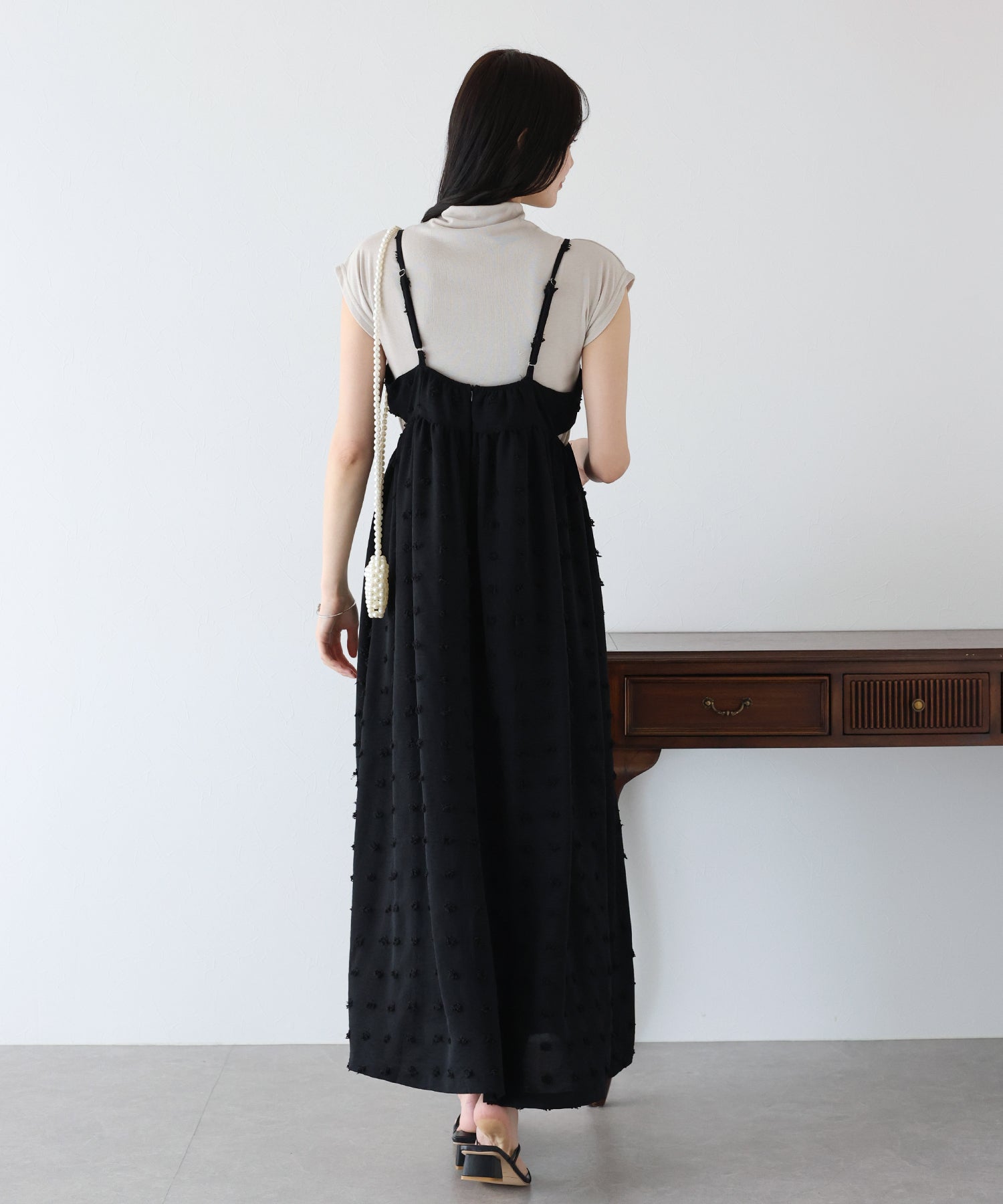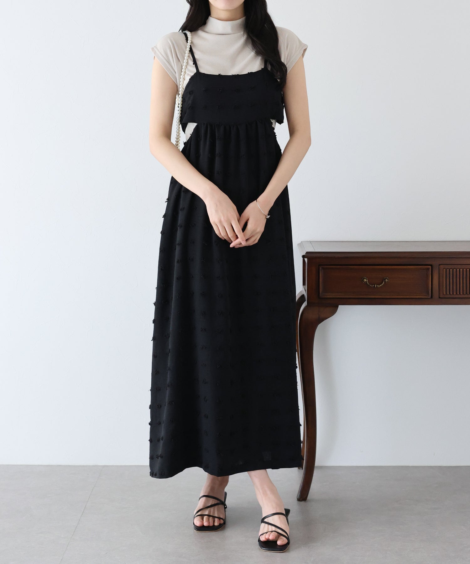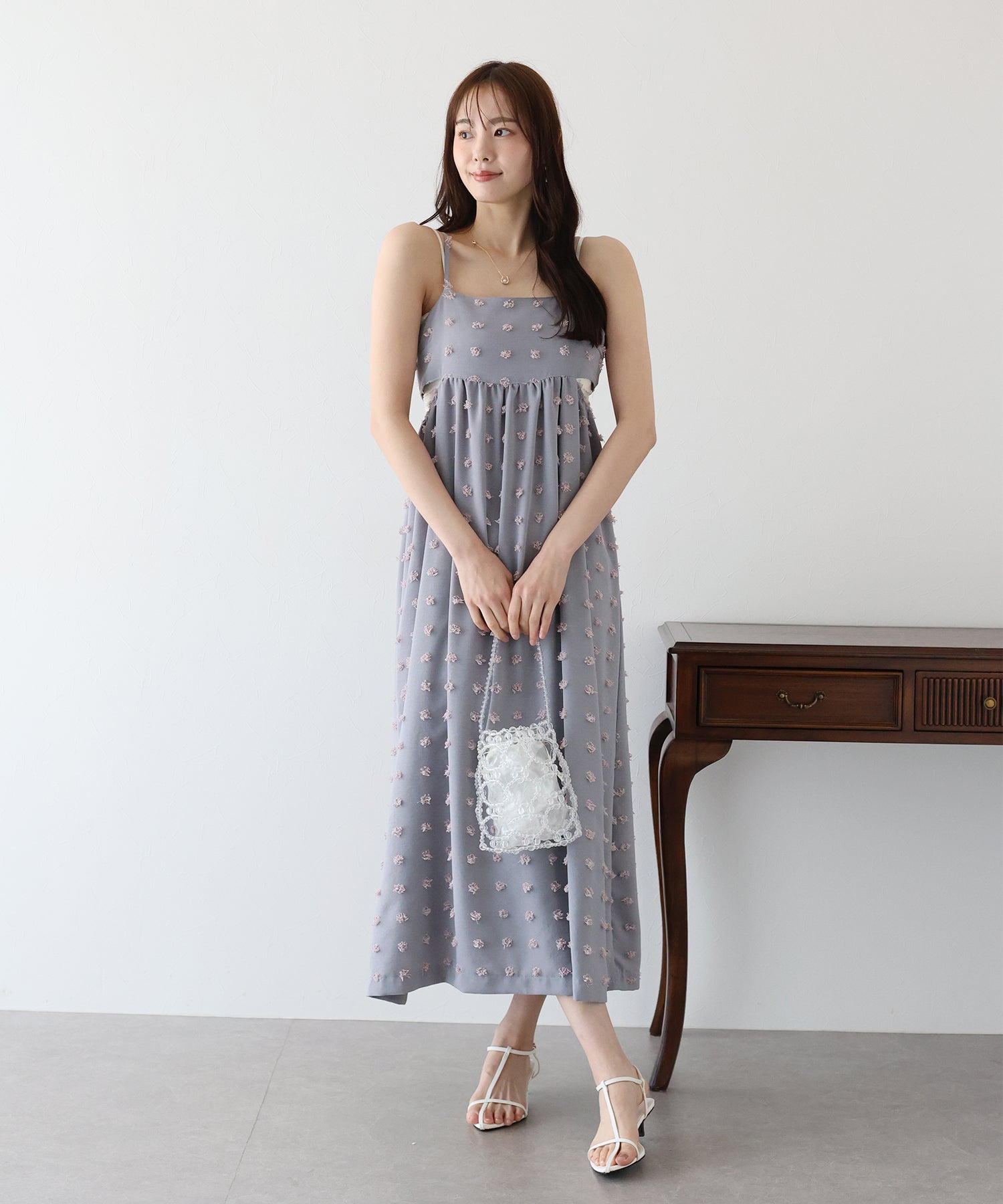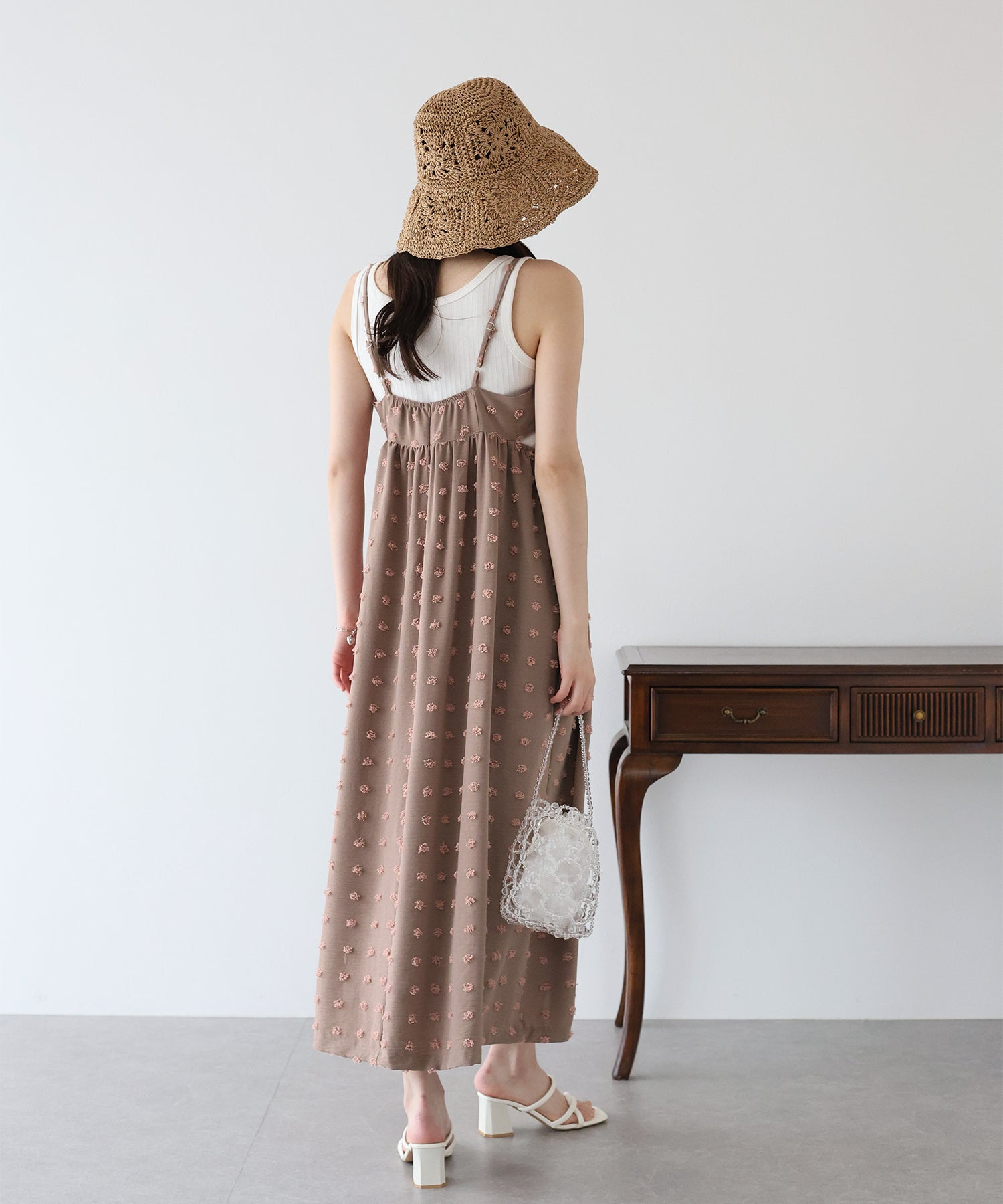 カジュアル×立体的なドット柄のキャミワンピ