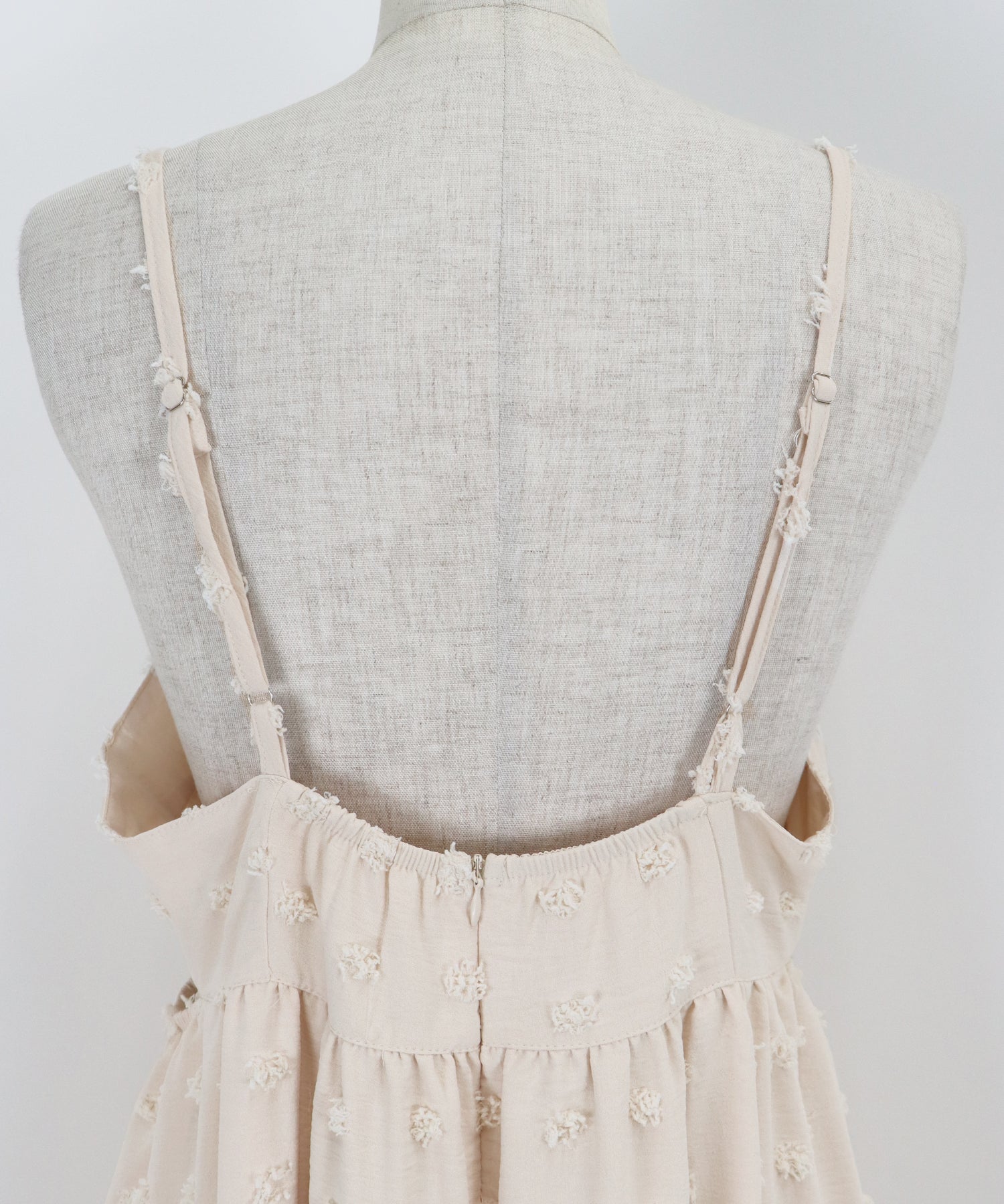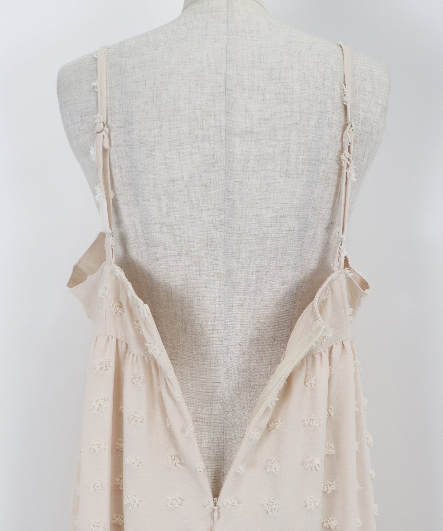 ?DETAIL カットアウトデザイン 肩紐アジャスター付き バックファスナー有り 裏地付き
