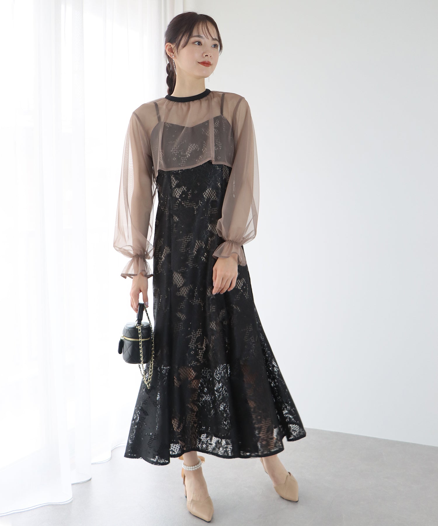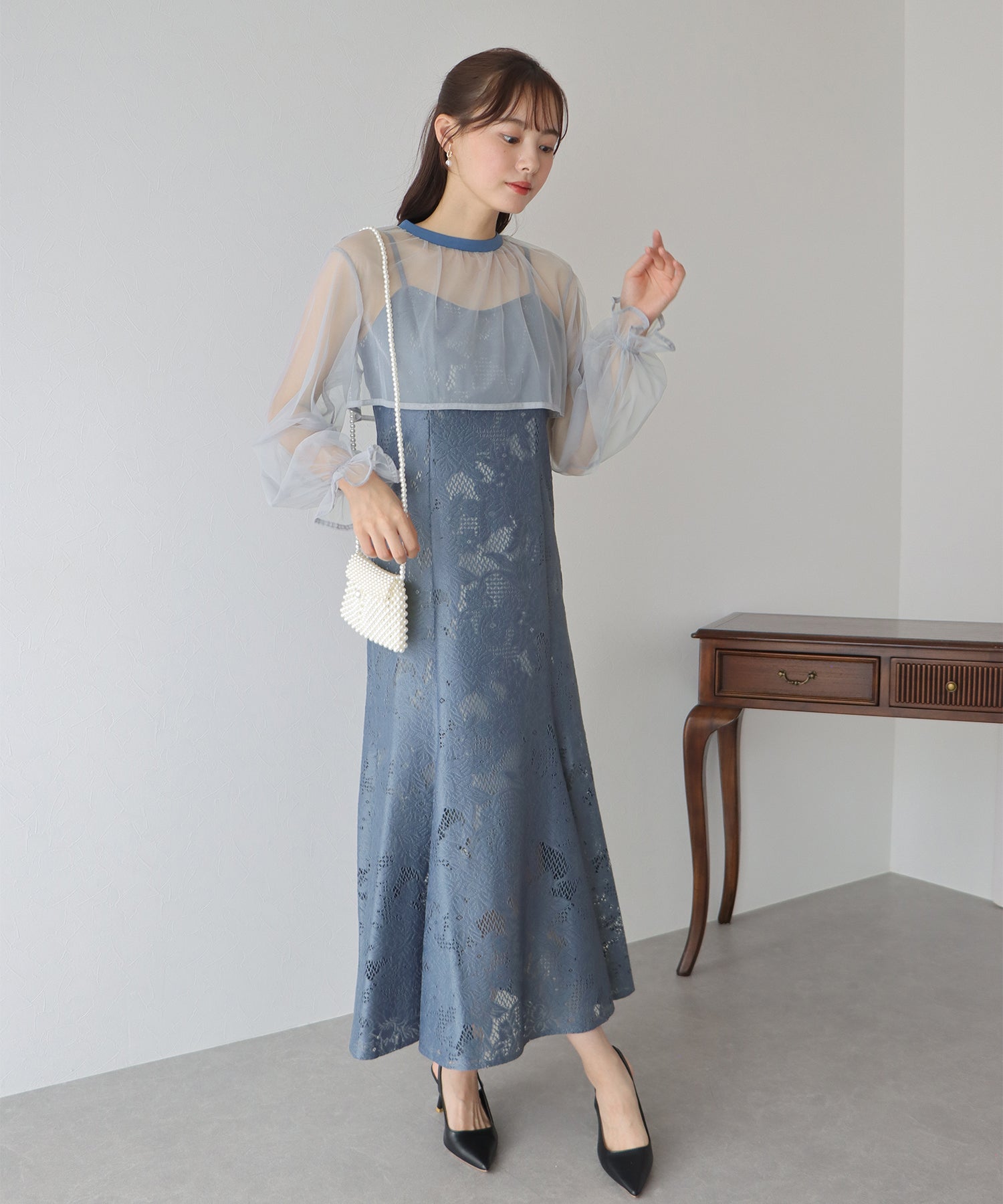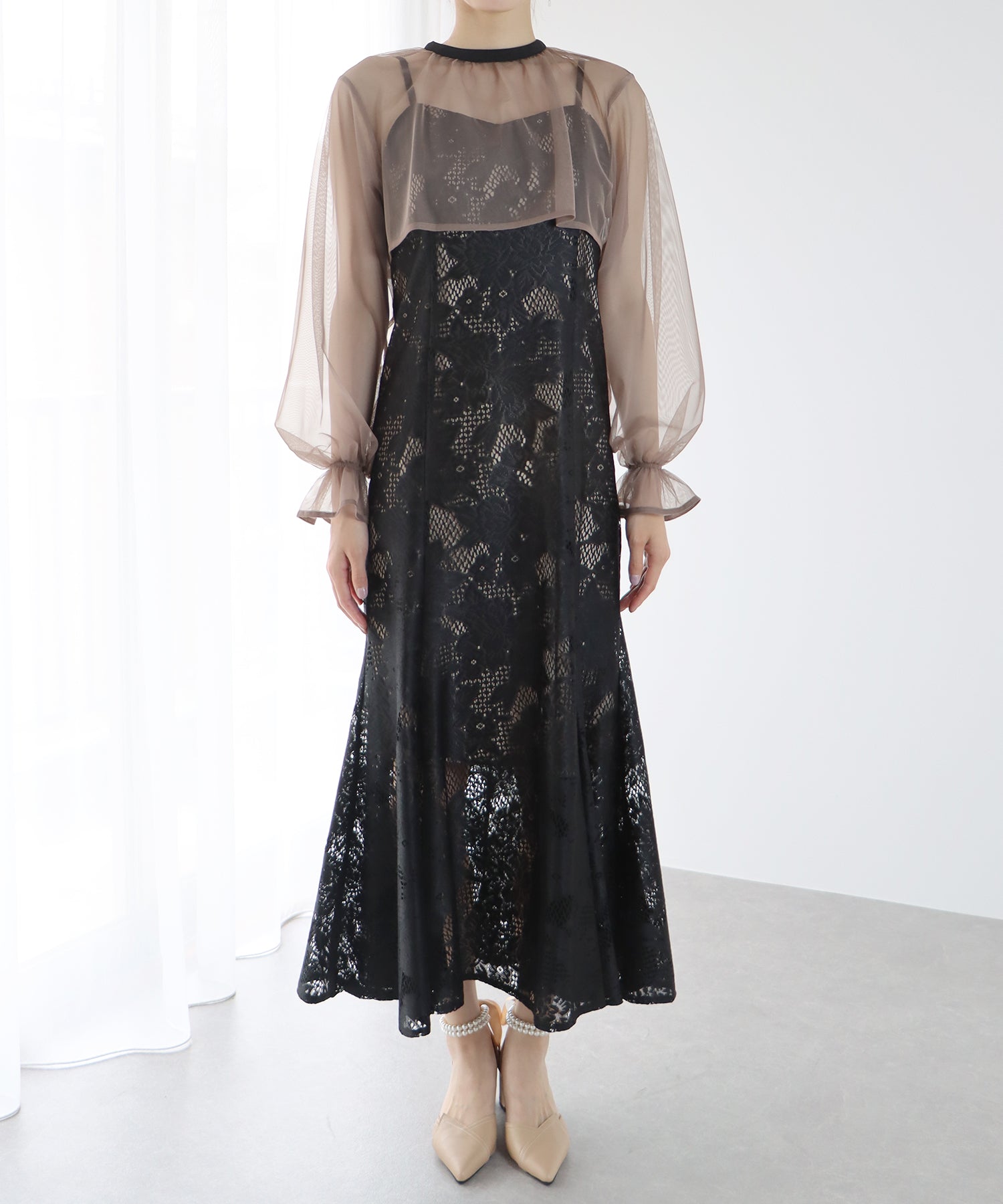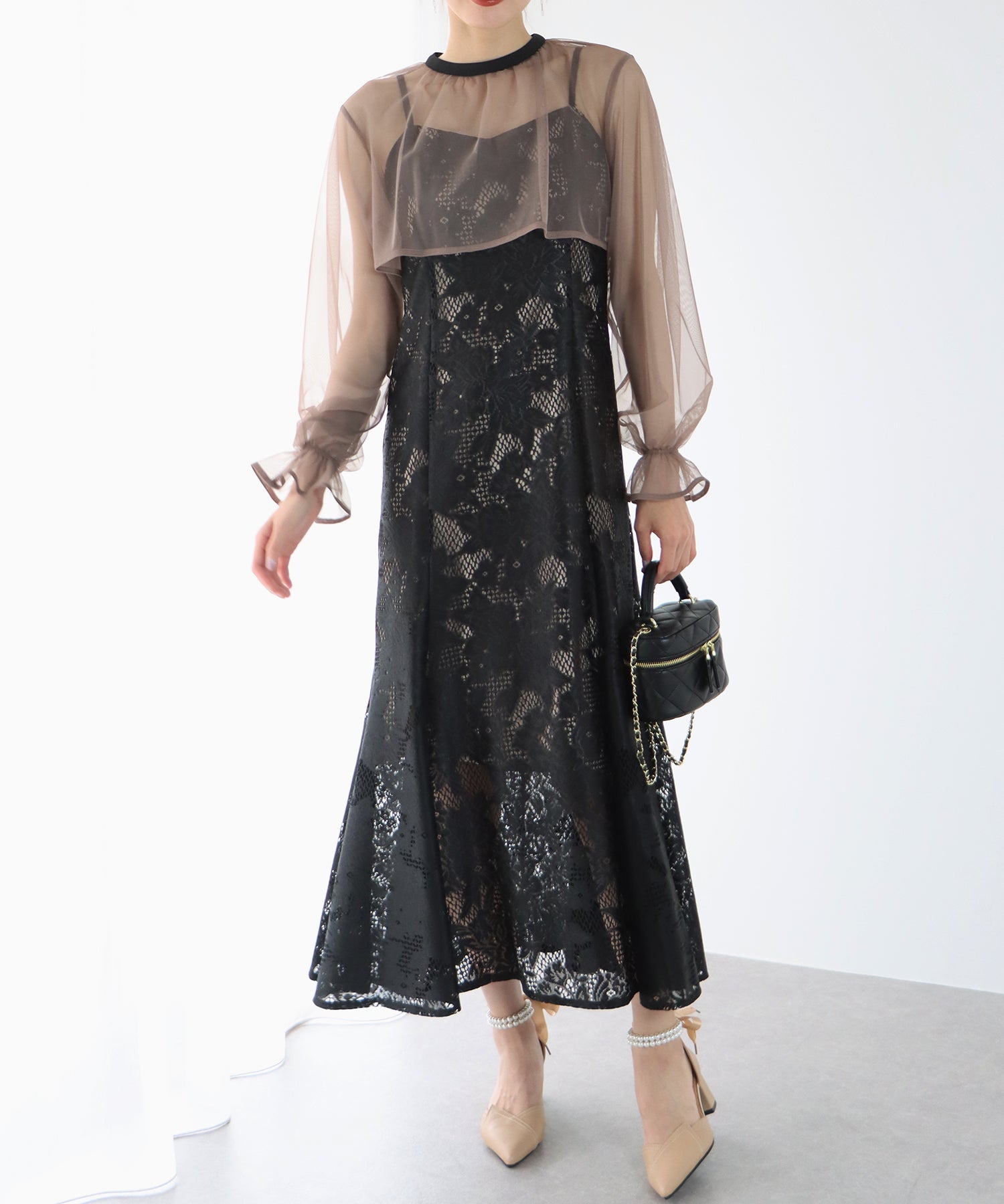 - 【TIME SALE】フリルレースボレロ×マーメイドワンピースドレス