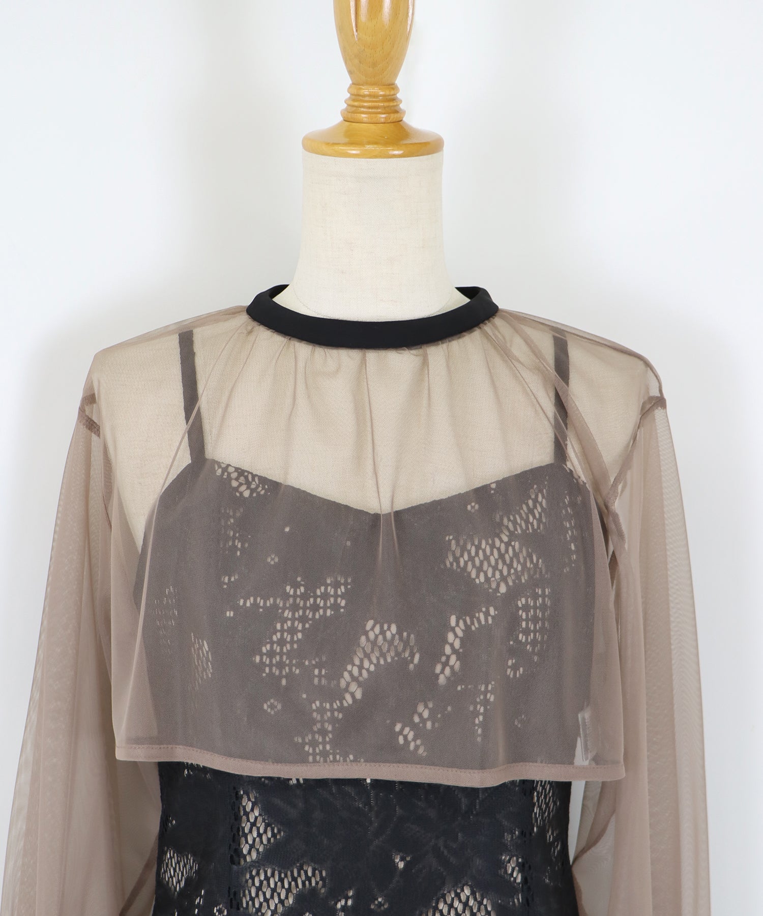 - 【SALE】フリルチュールベスト&ミモザジャガードドレス