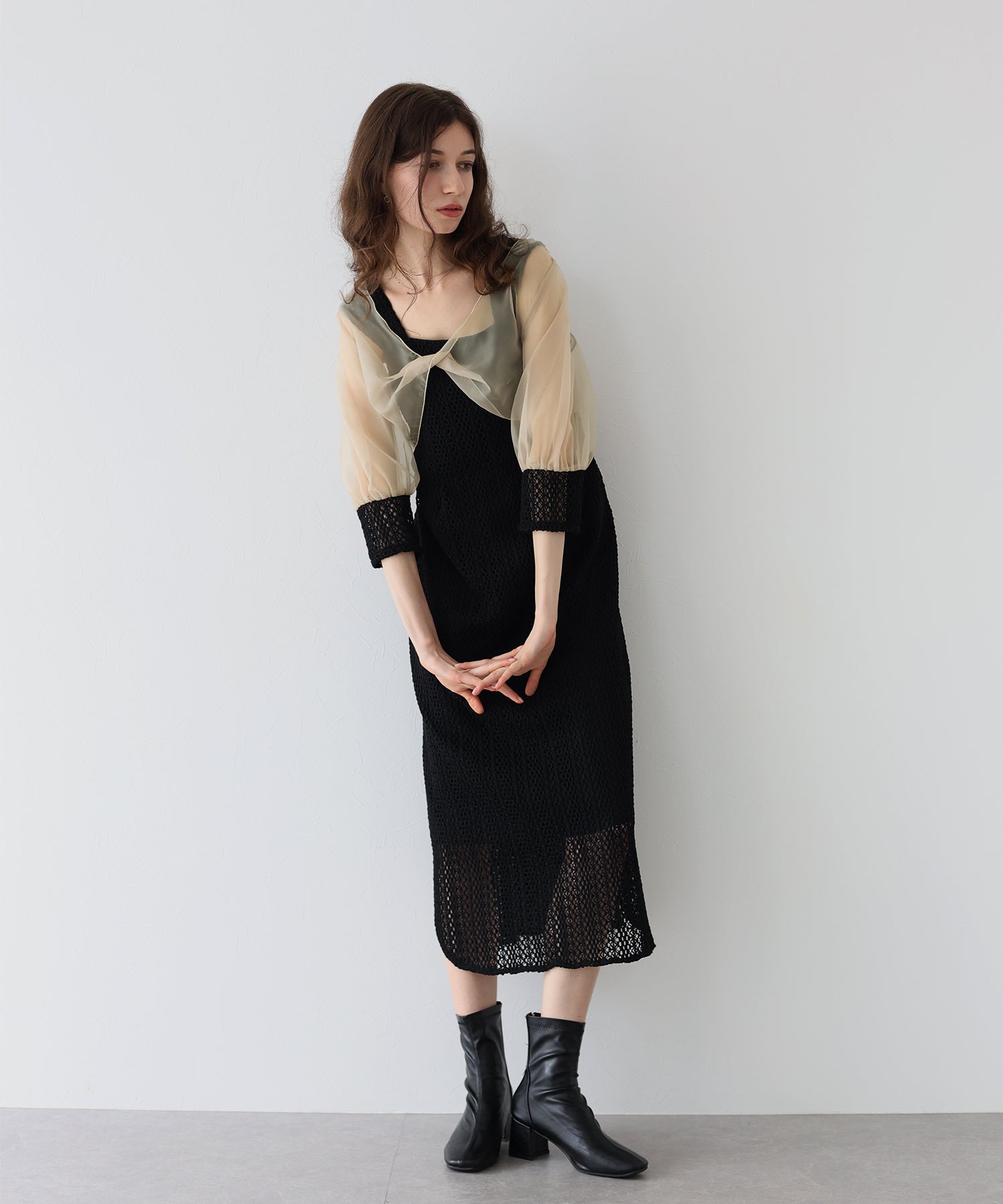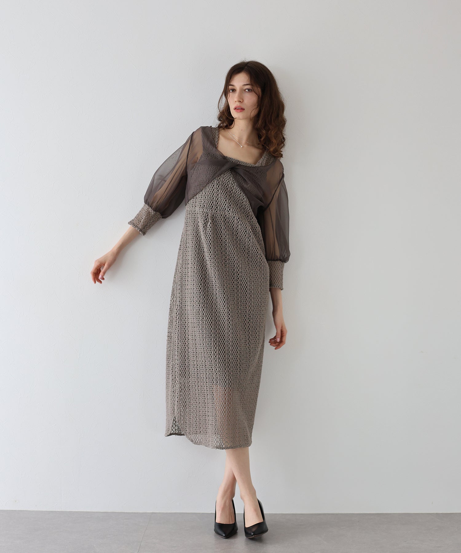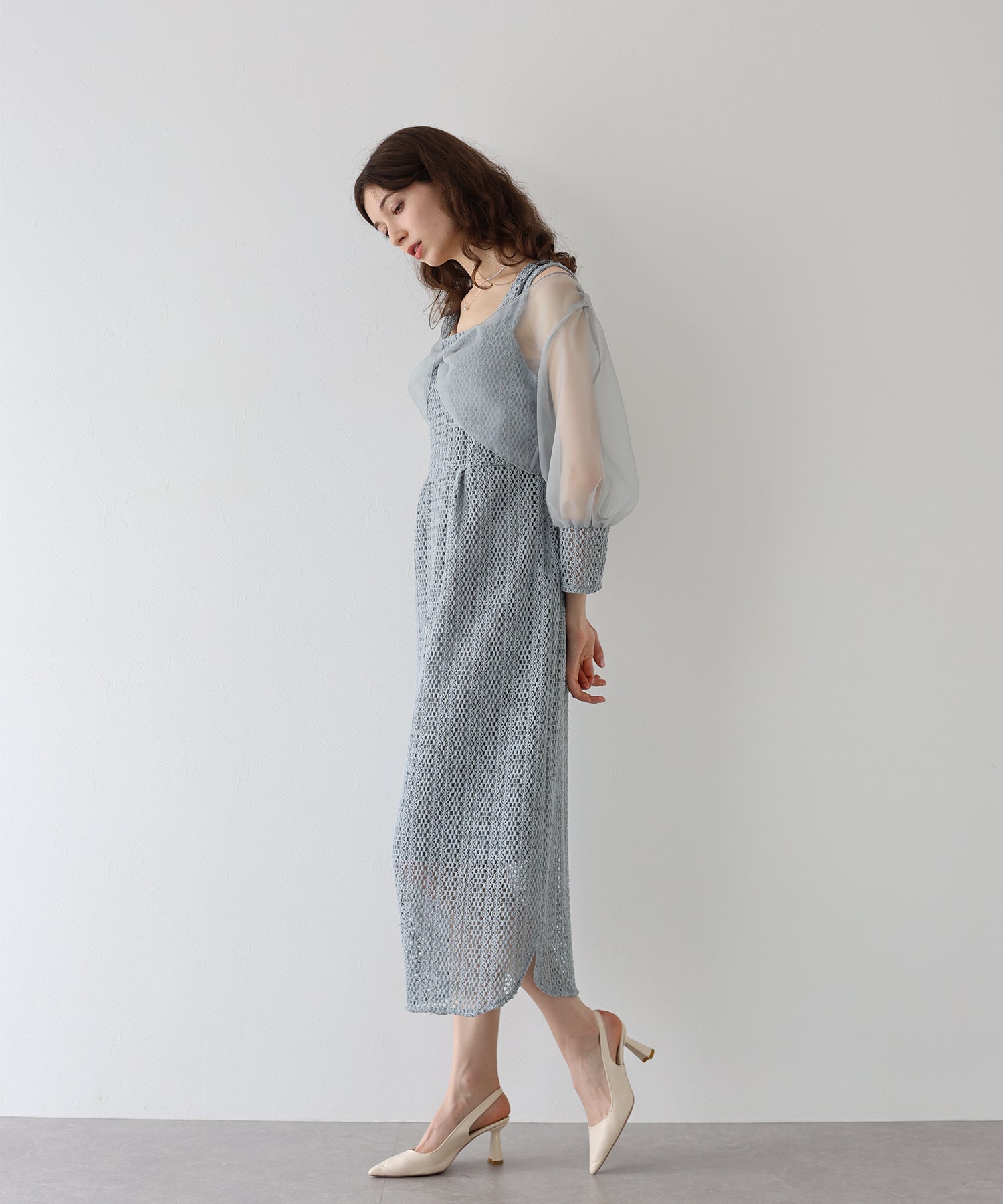 ?STYLING パーティーシーンではパンプスやミニバッグで小さめにまとめて、 ちょっとしたお食事にはワンピース1枚にサンダルを合わせたり、ボレロの代わりにジャケットとのコーディネートでカジュアルダウンし普段使いも◎