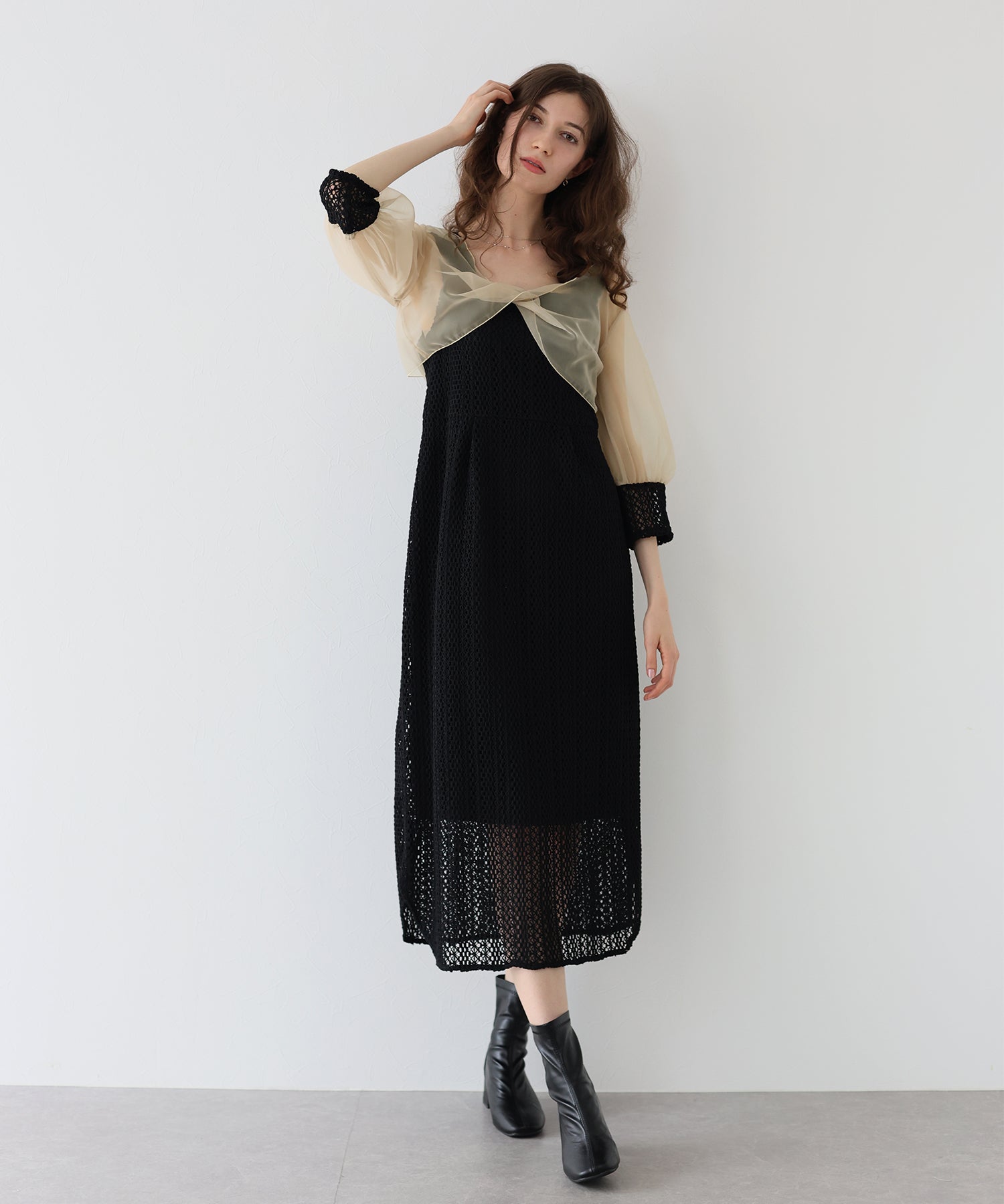 ※この製品は繊細なレースを使用しておりますので、ファスナーの開閉や取り扱いには十分にご注意ください。| モデル | 167cm |