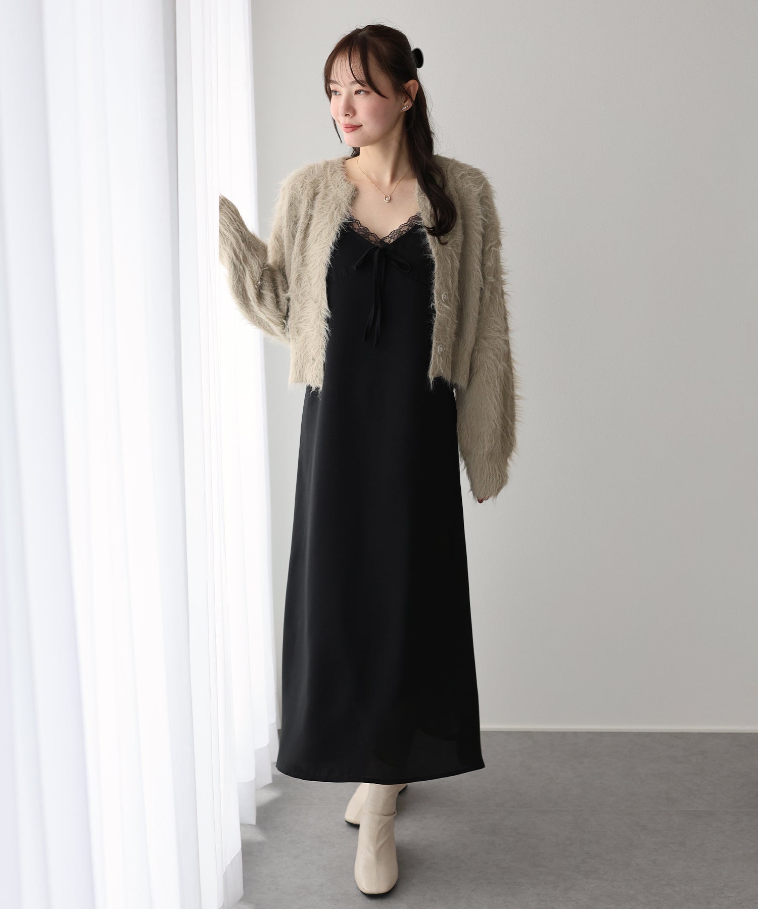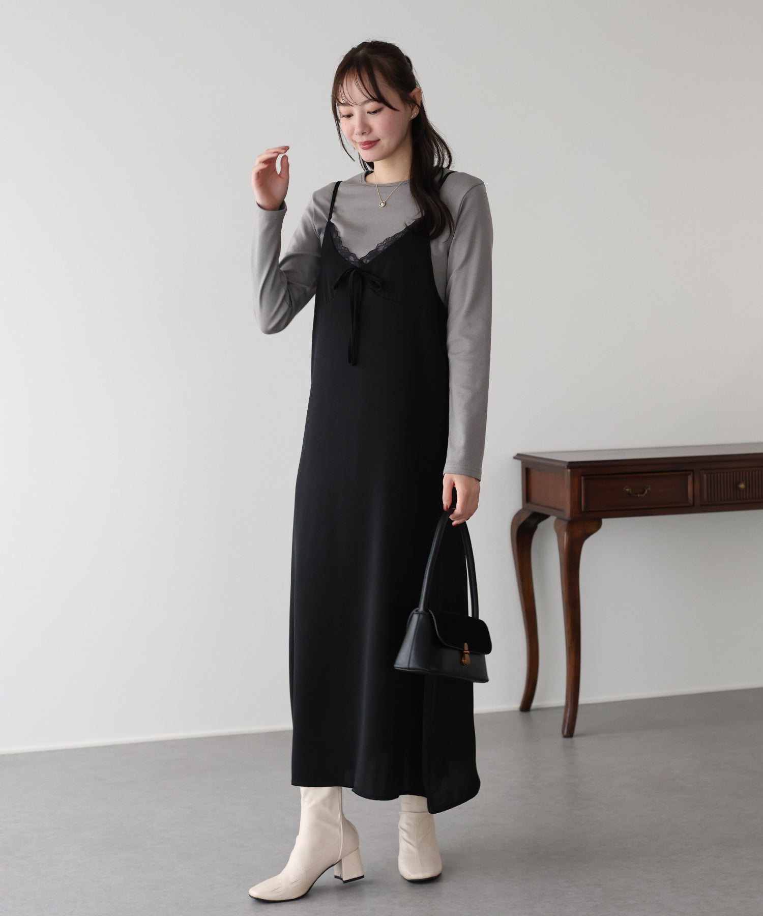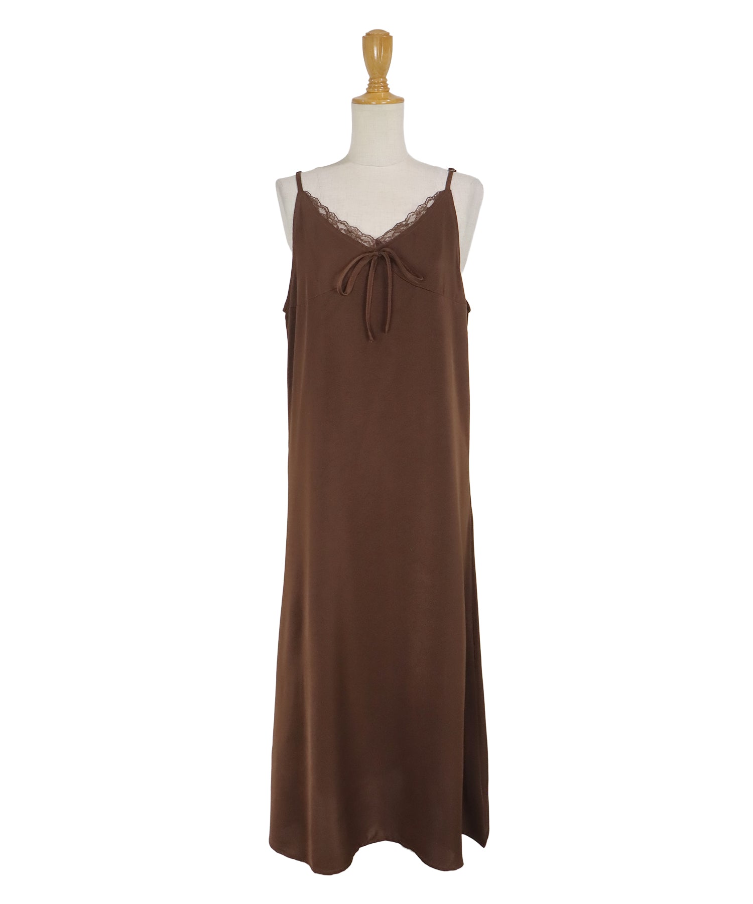 レース×リボンが華やかに映える上品サテンキャミワンピース