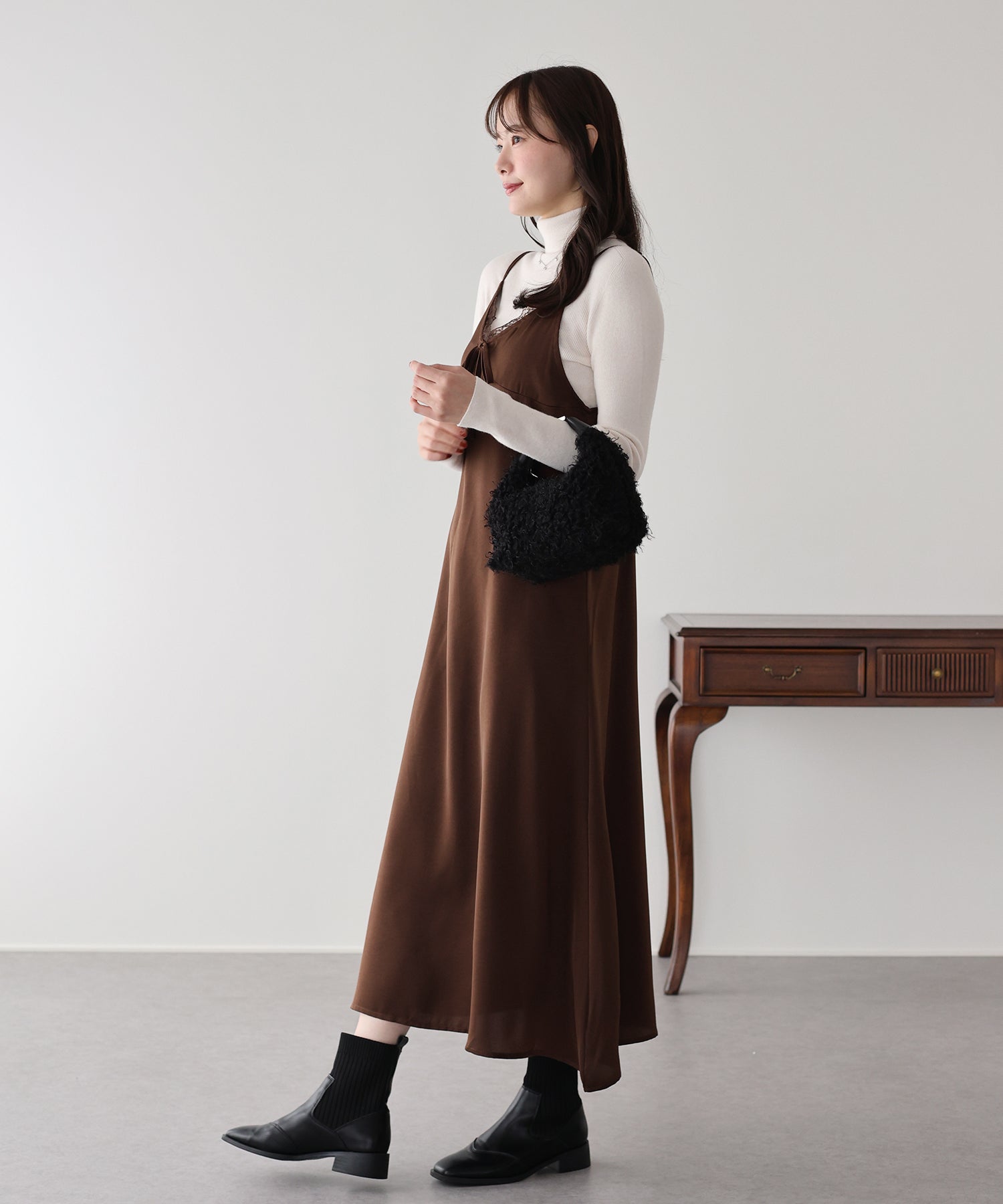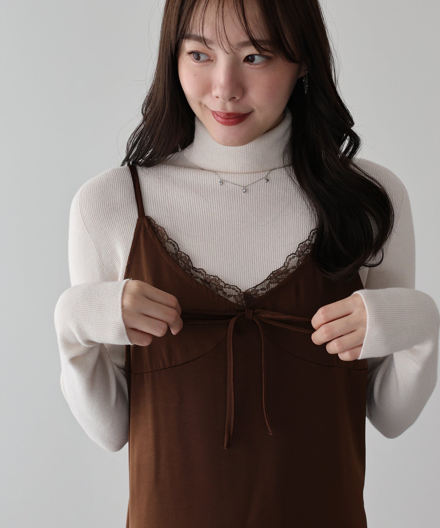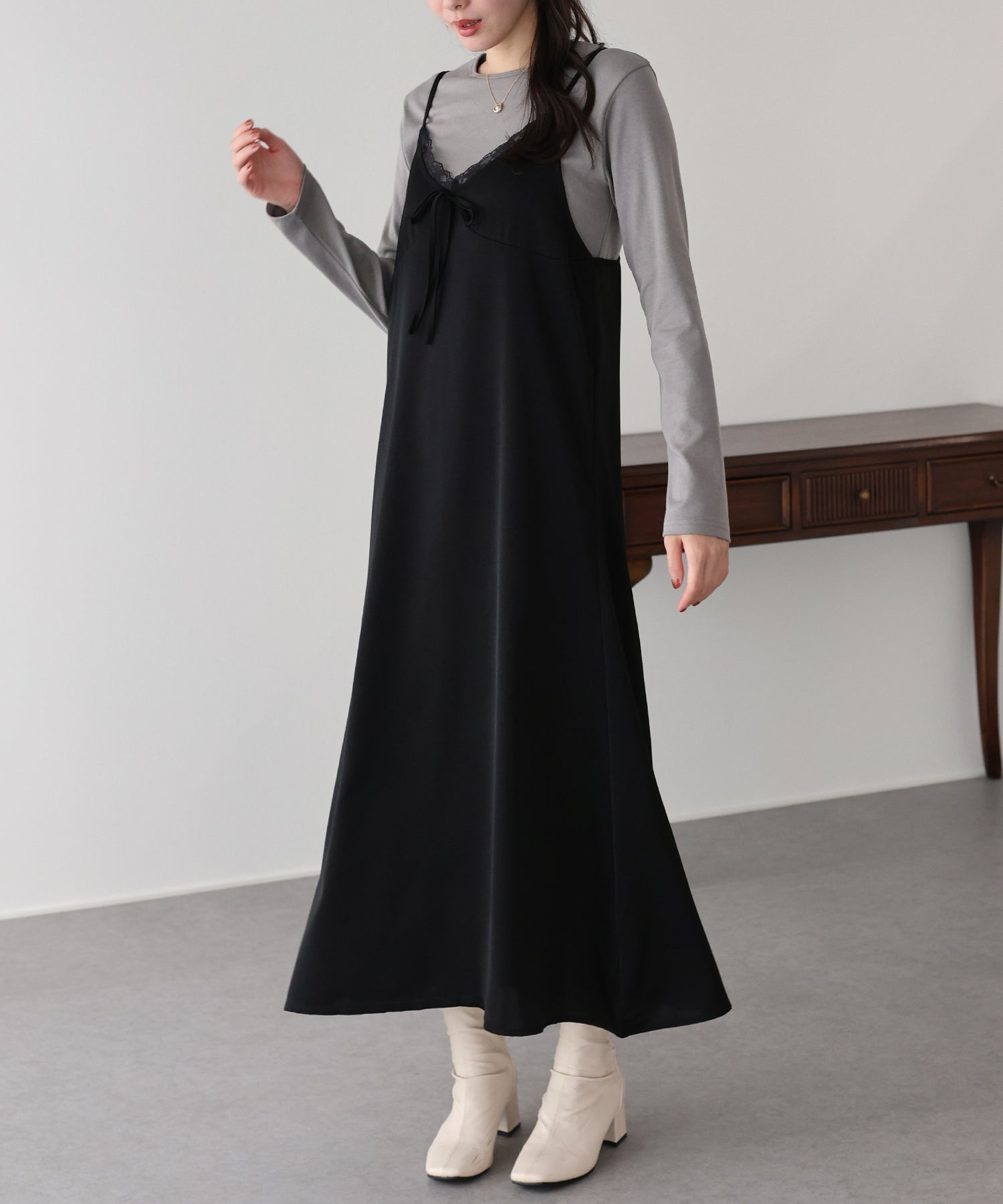 レース×リボンが華やかに映える上品サテンキャミワンピース