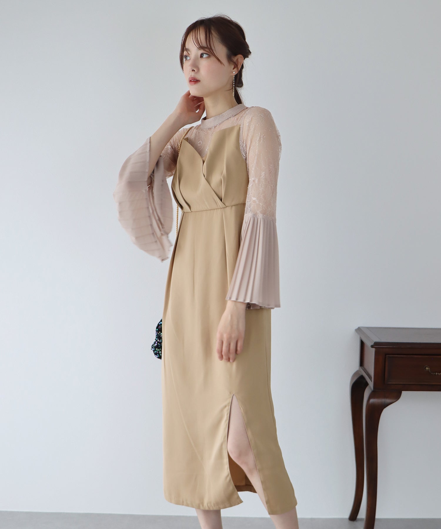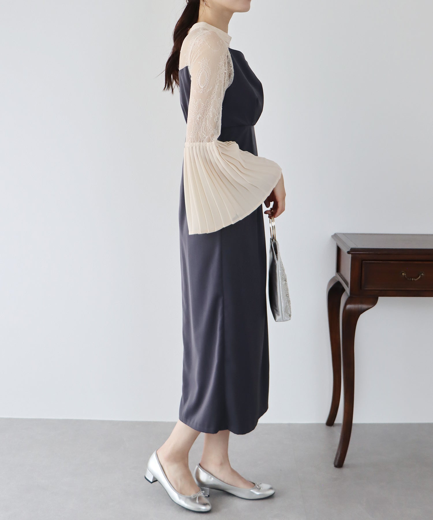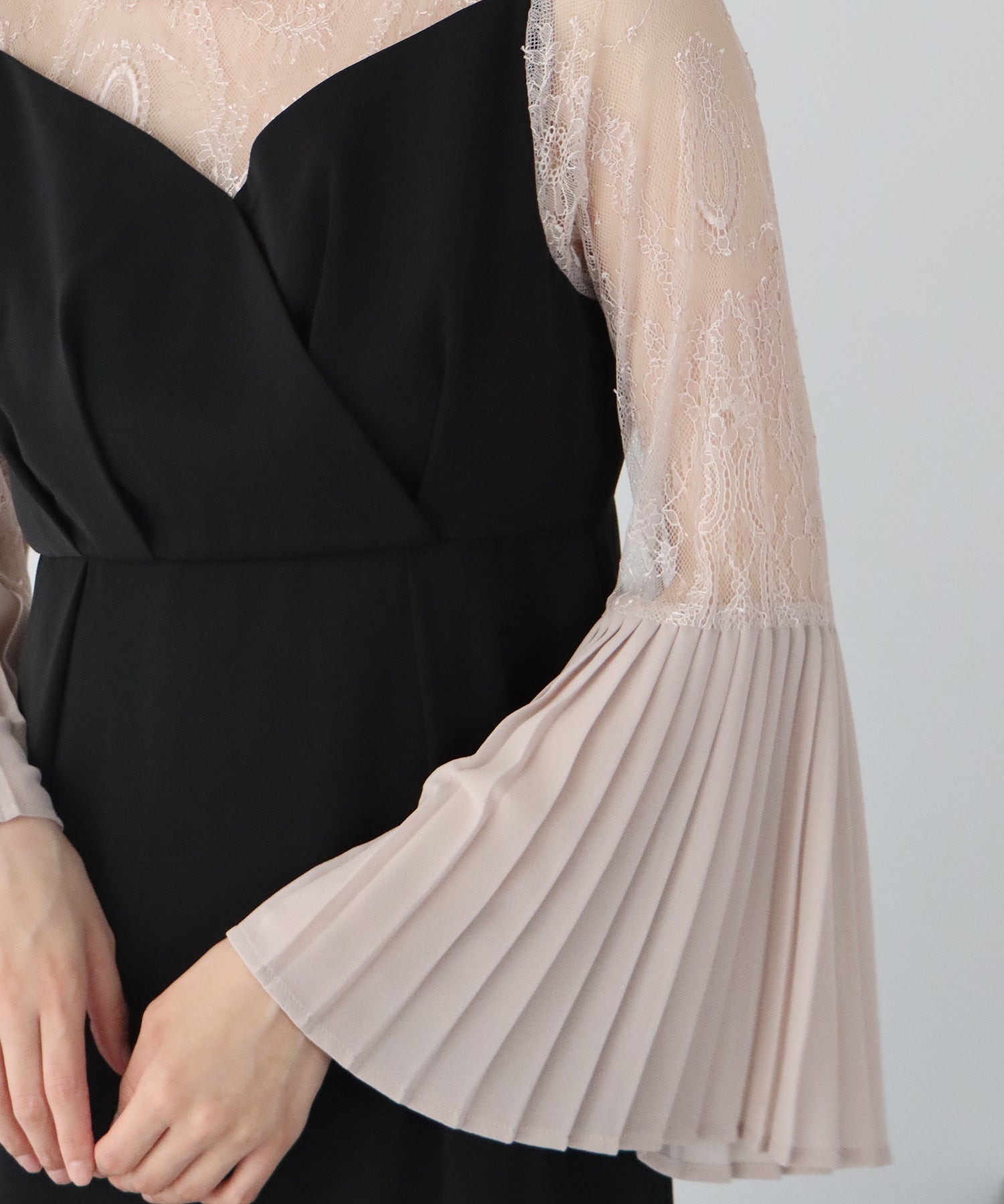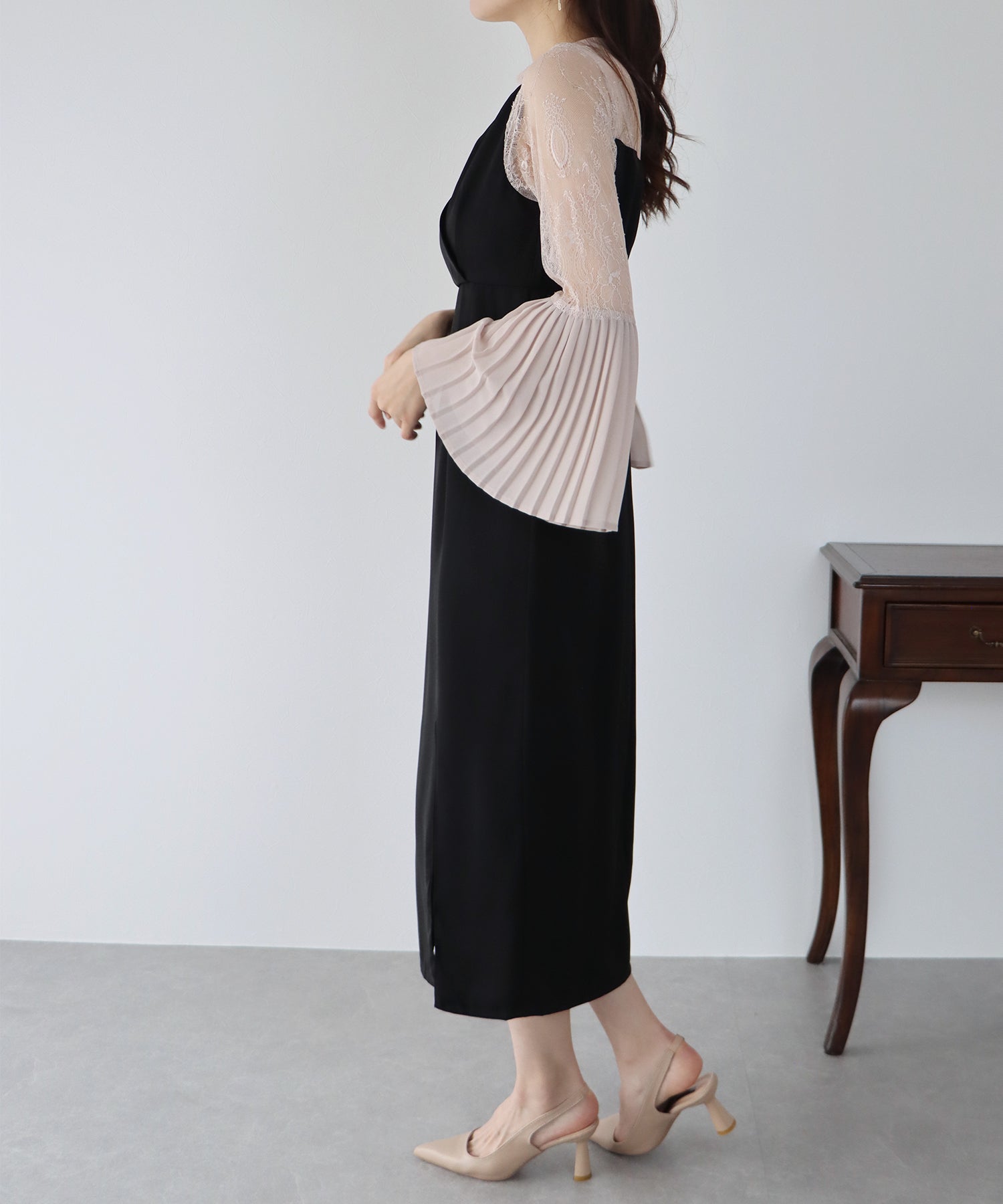 - 【SALE】プリーツスリーブIラインパーティードレス