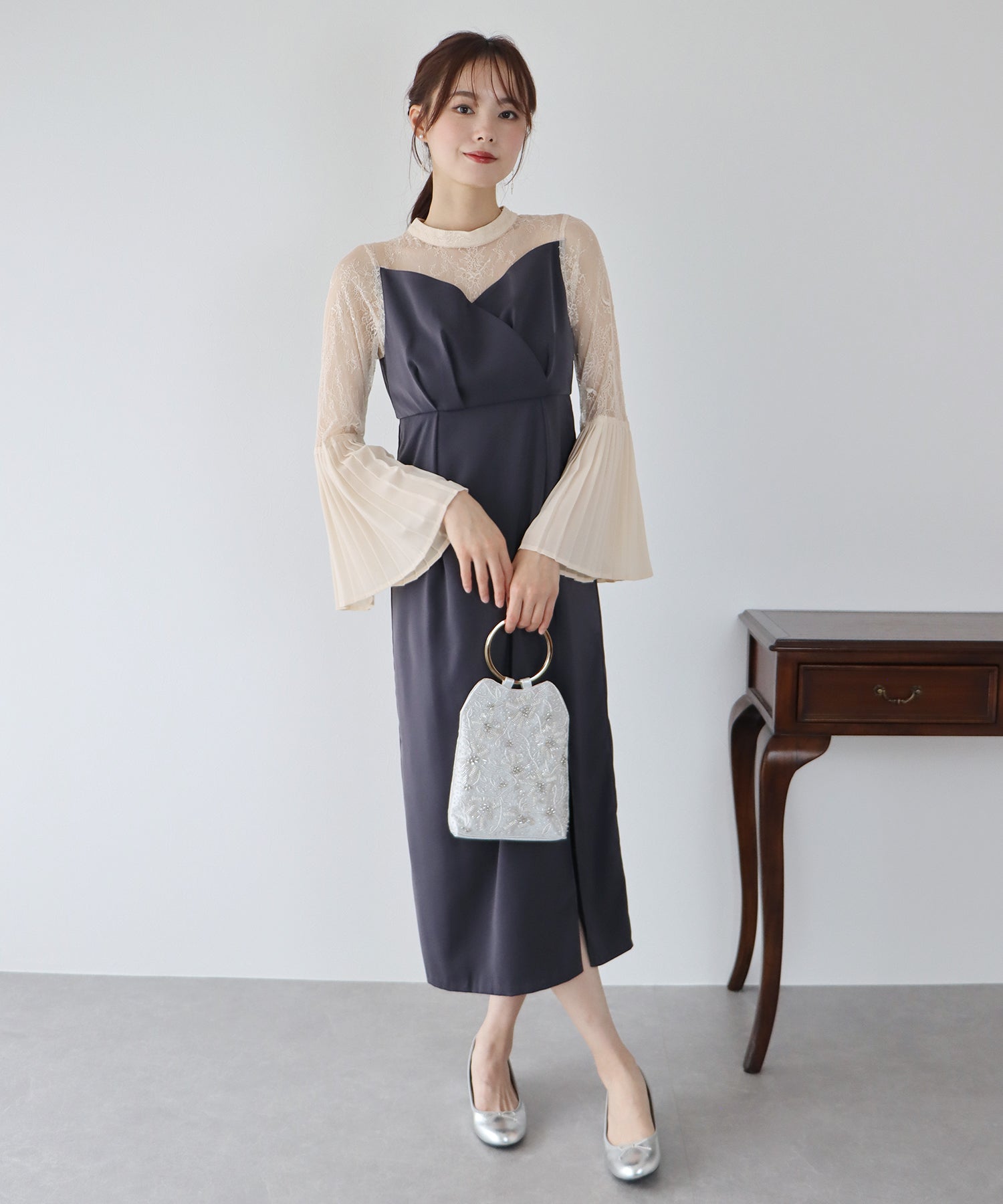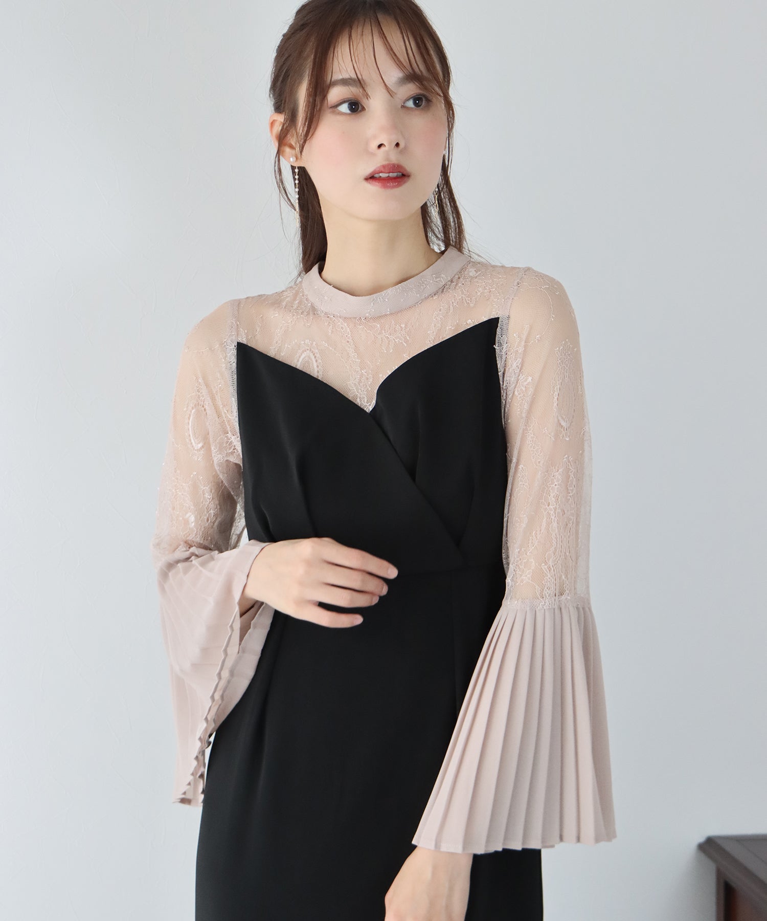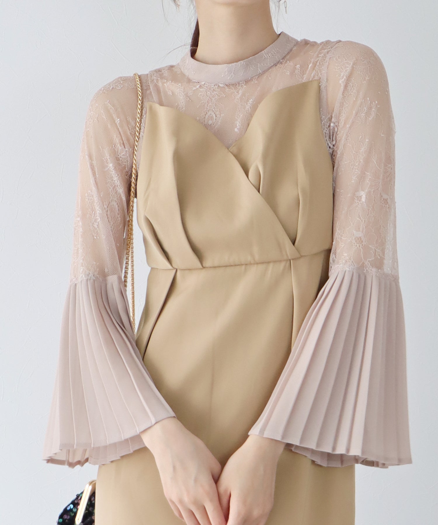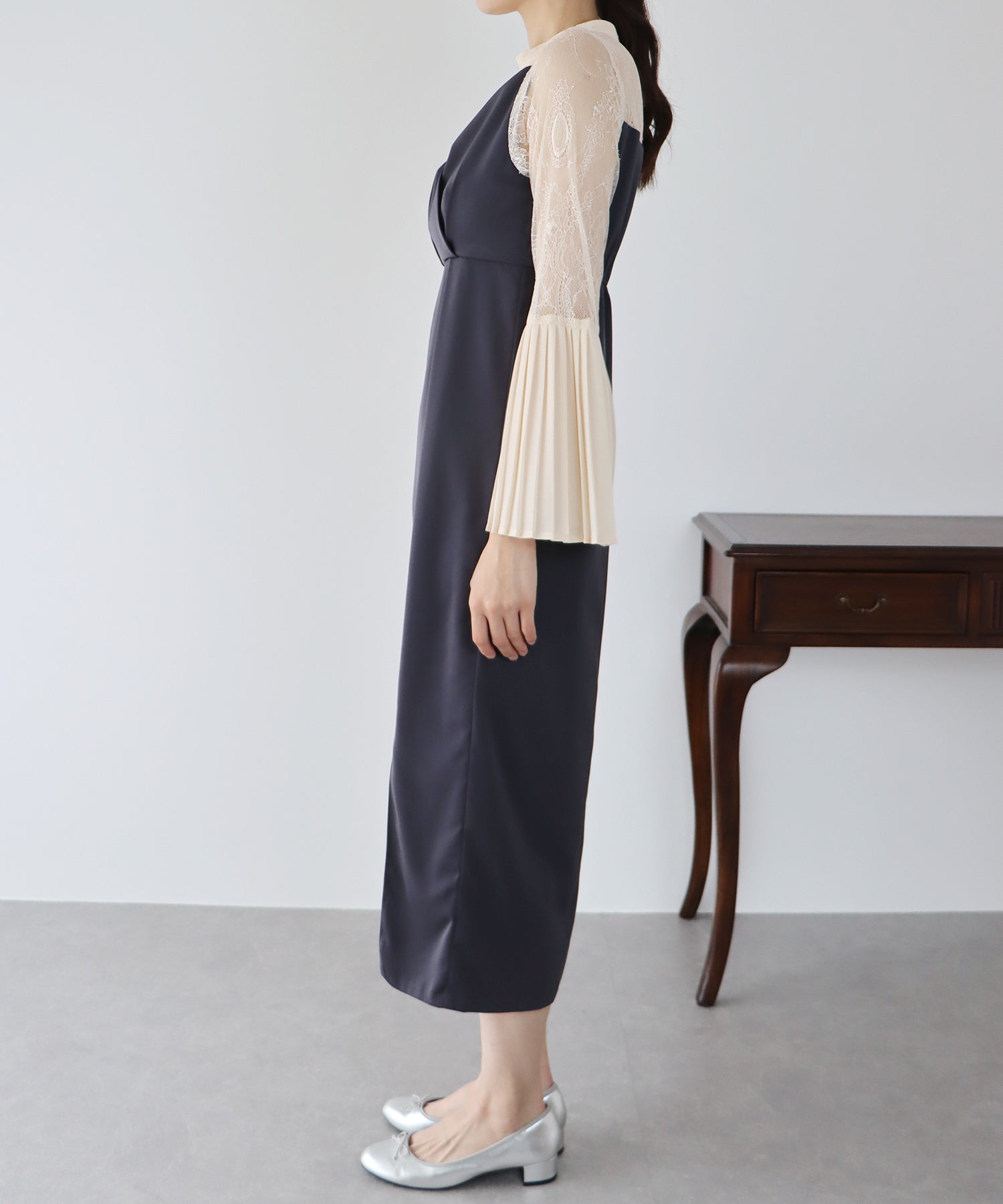 - 【SALE】プリーツスリーブIラインパーティードレス