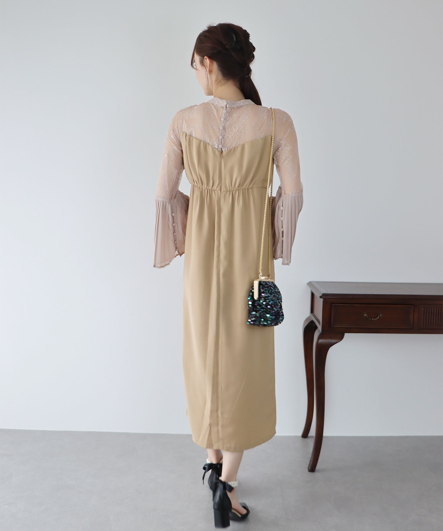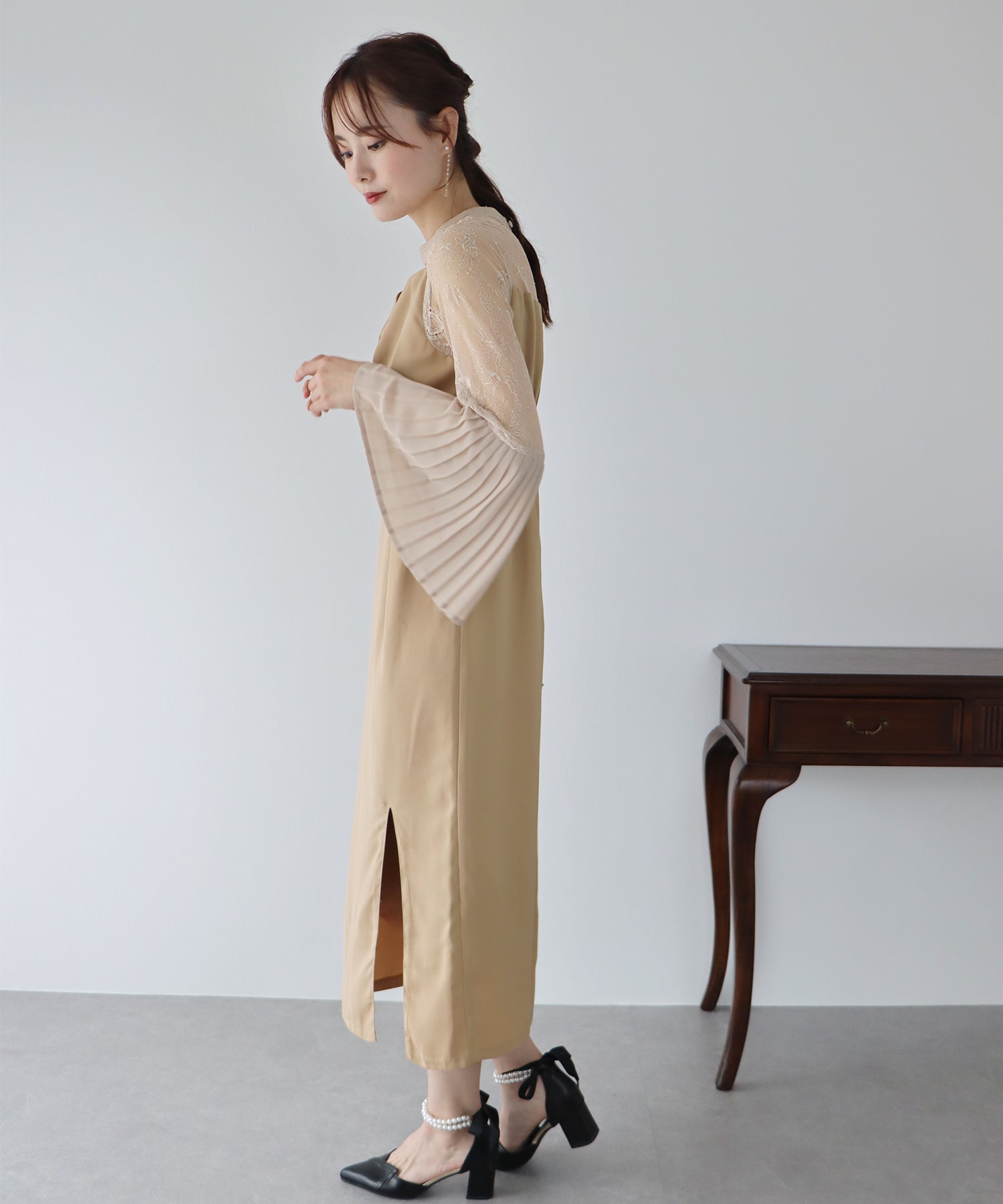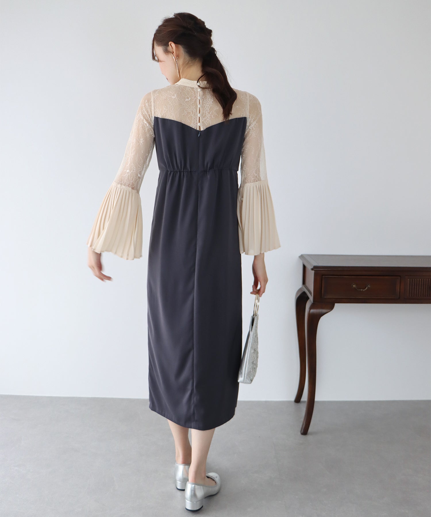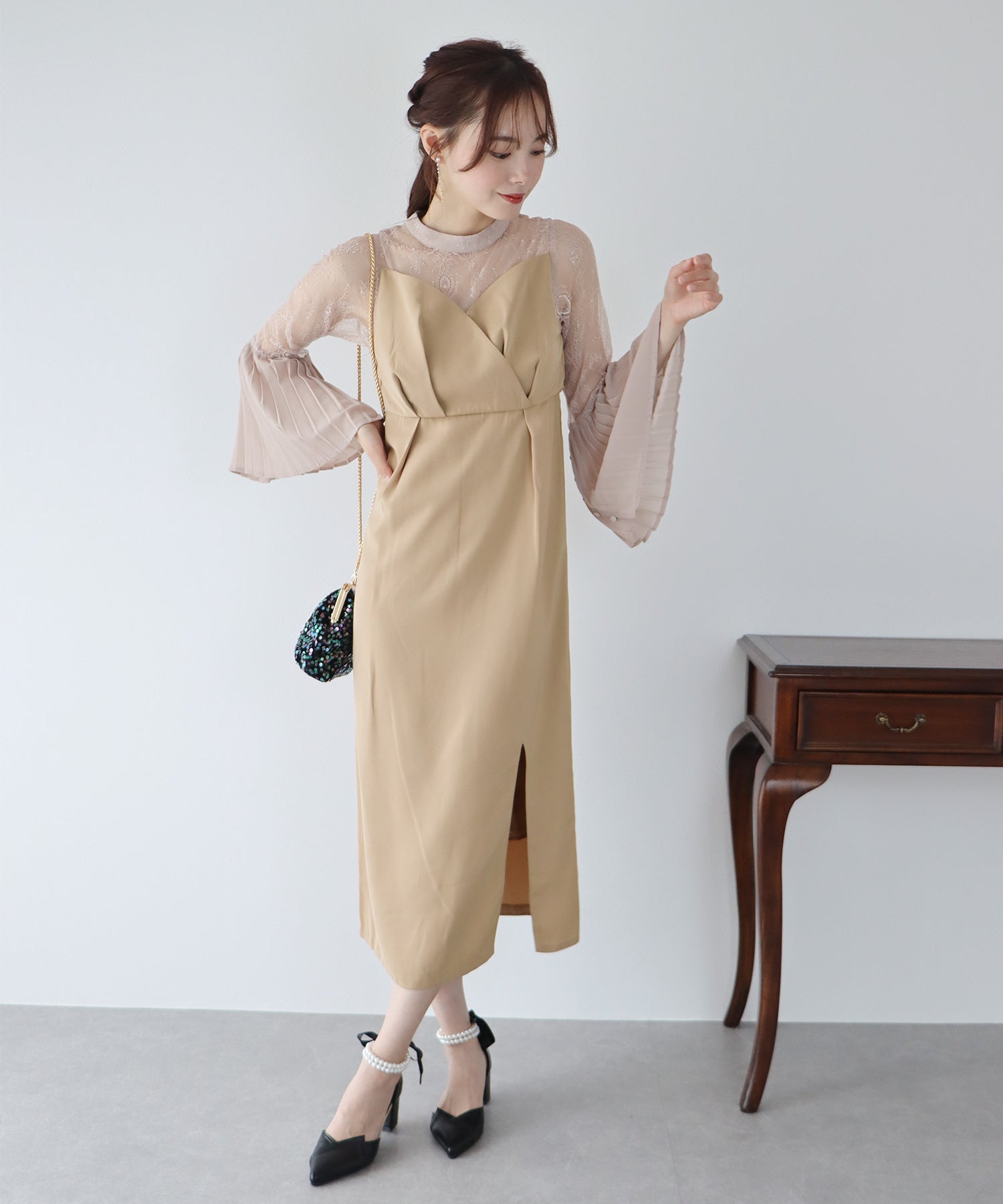 - 【SALE】プリーツスリーブIラインパーティードレス