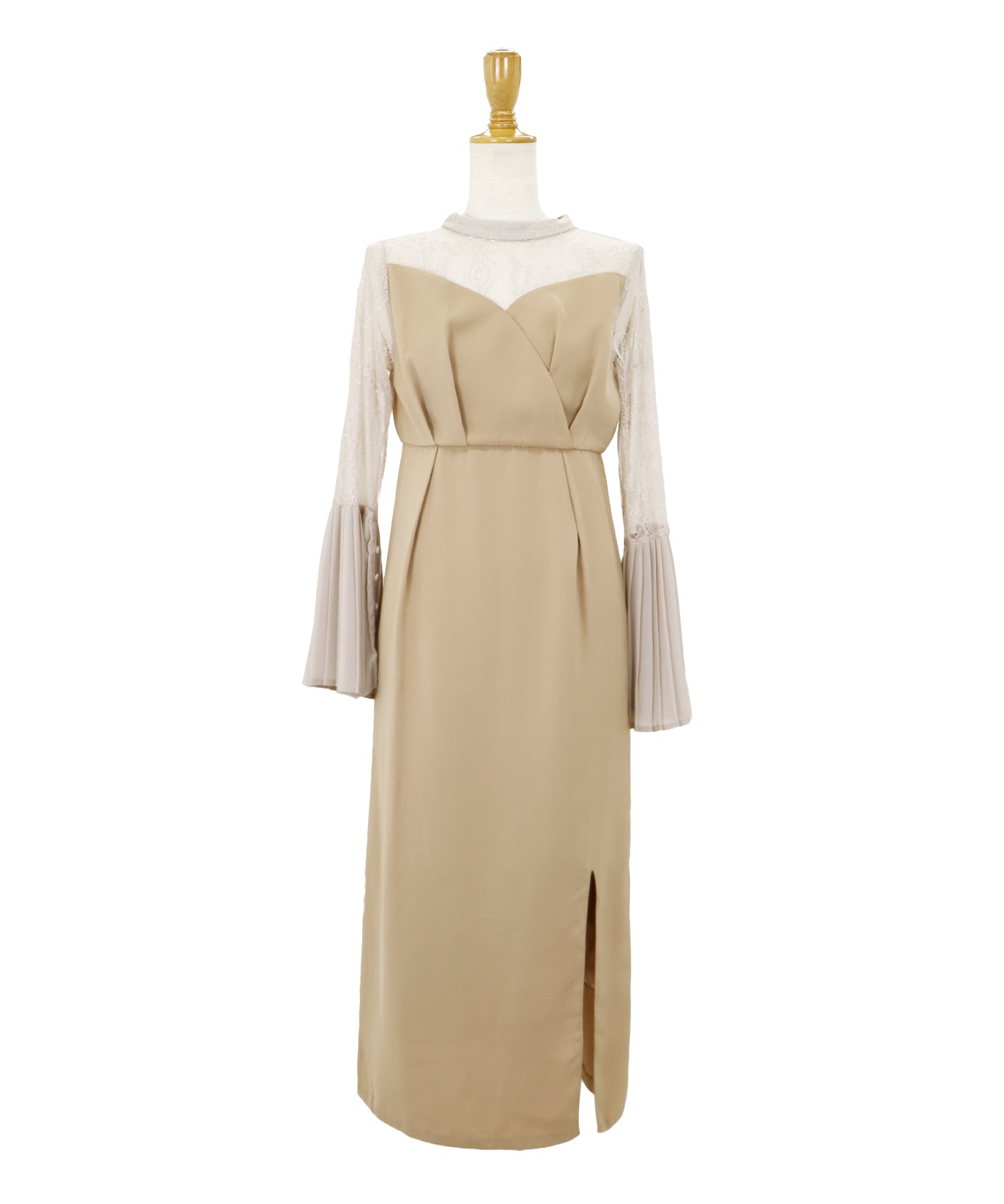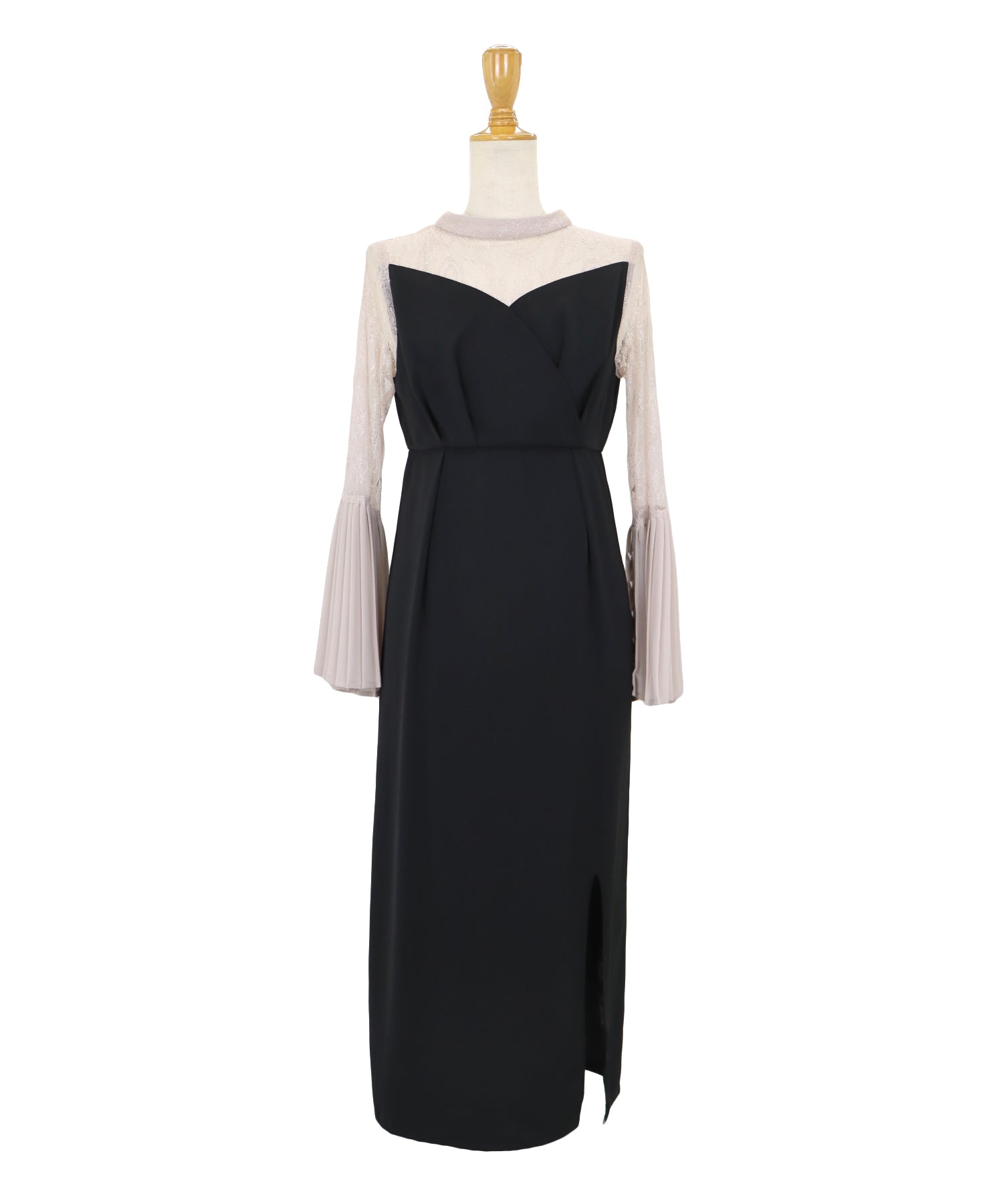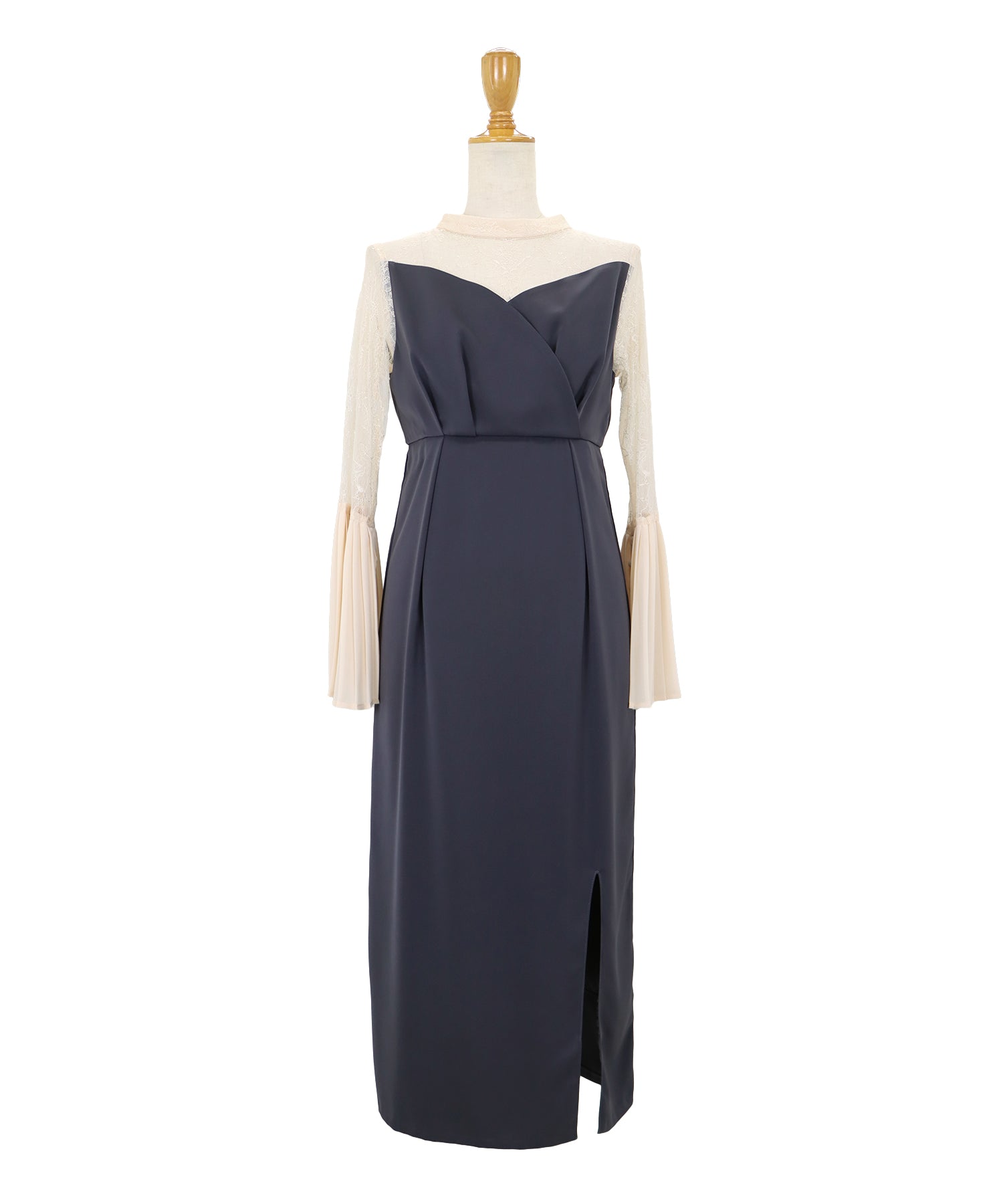 - 【SALE】レーススリットスリーブロング丈パーティードレス
