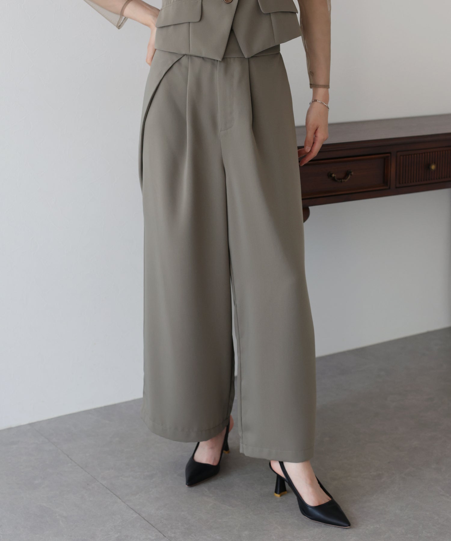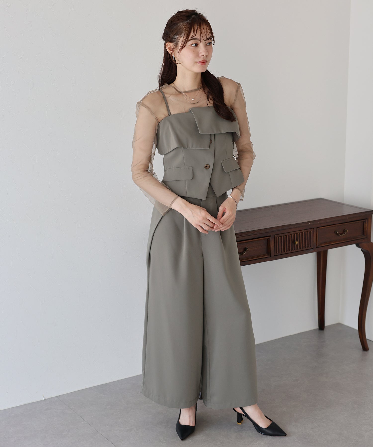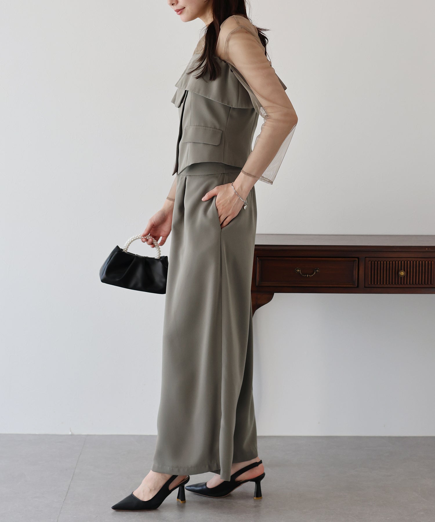 マルチウェイなトップスがポイントの都会的モードな3点セットアイテム。