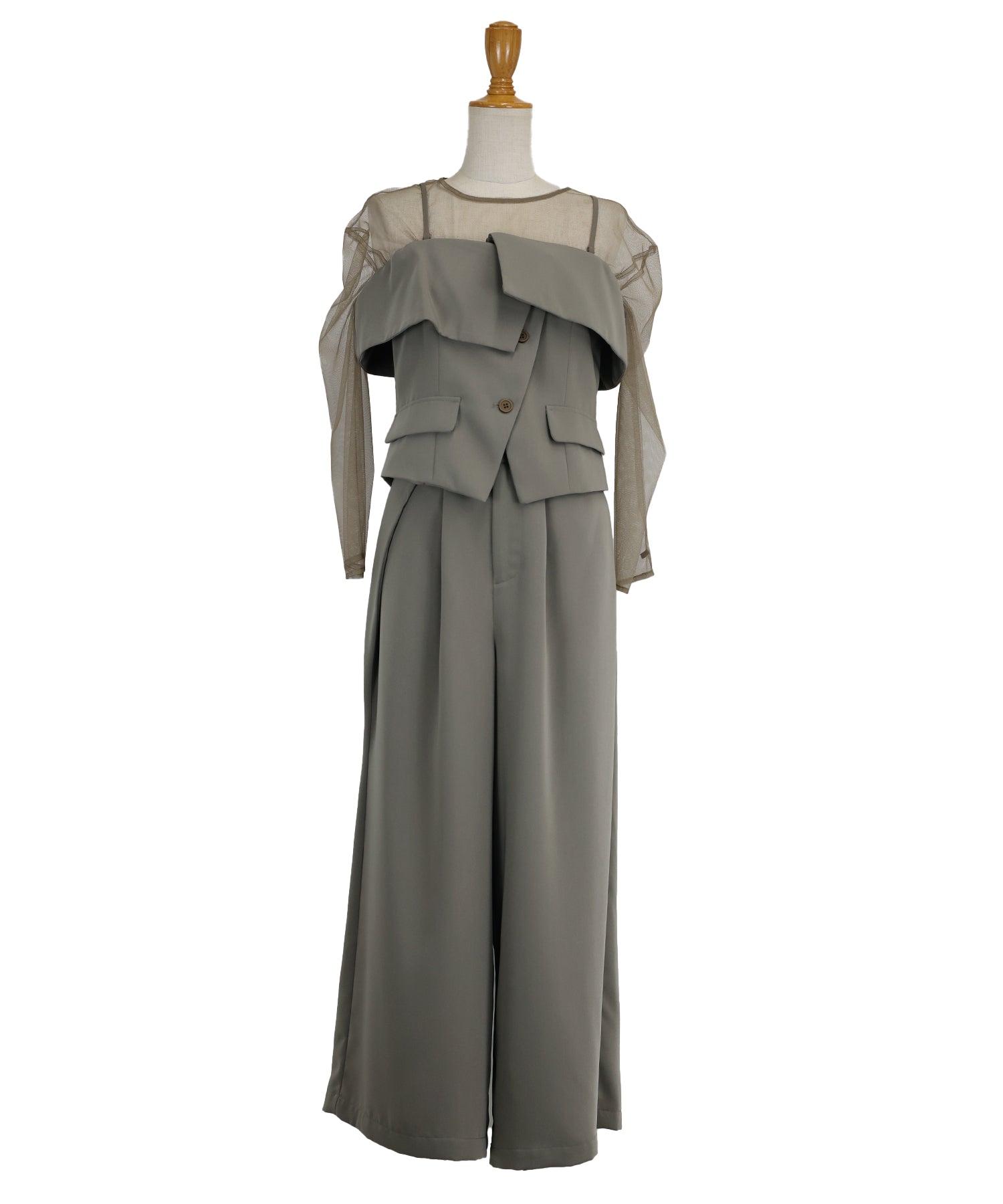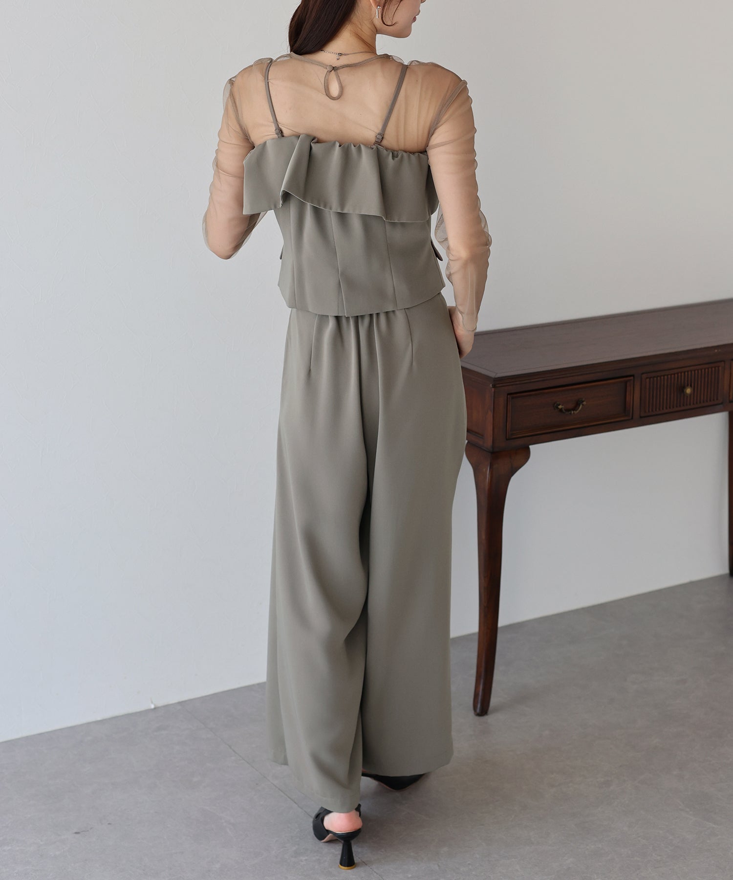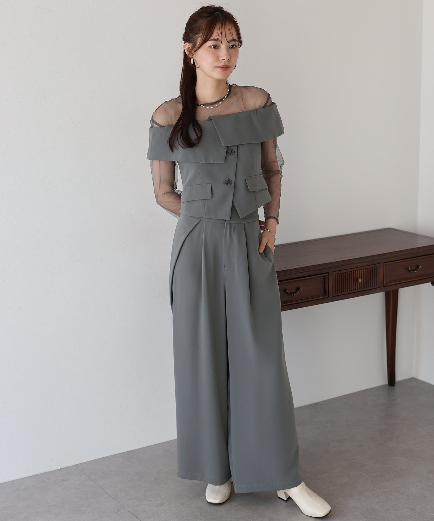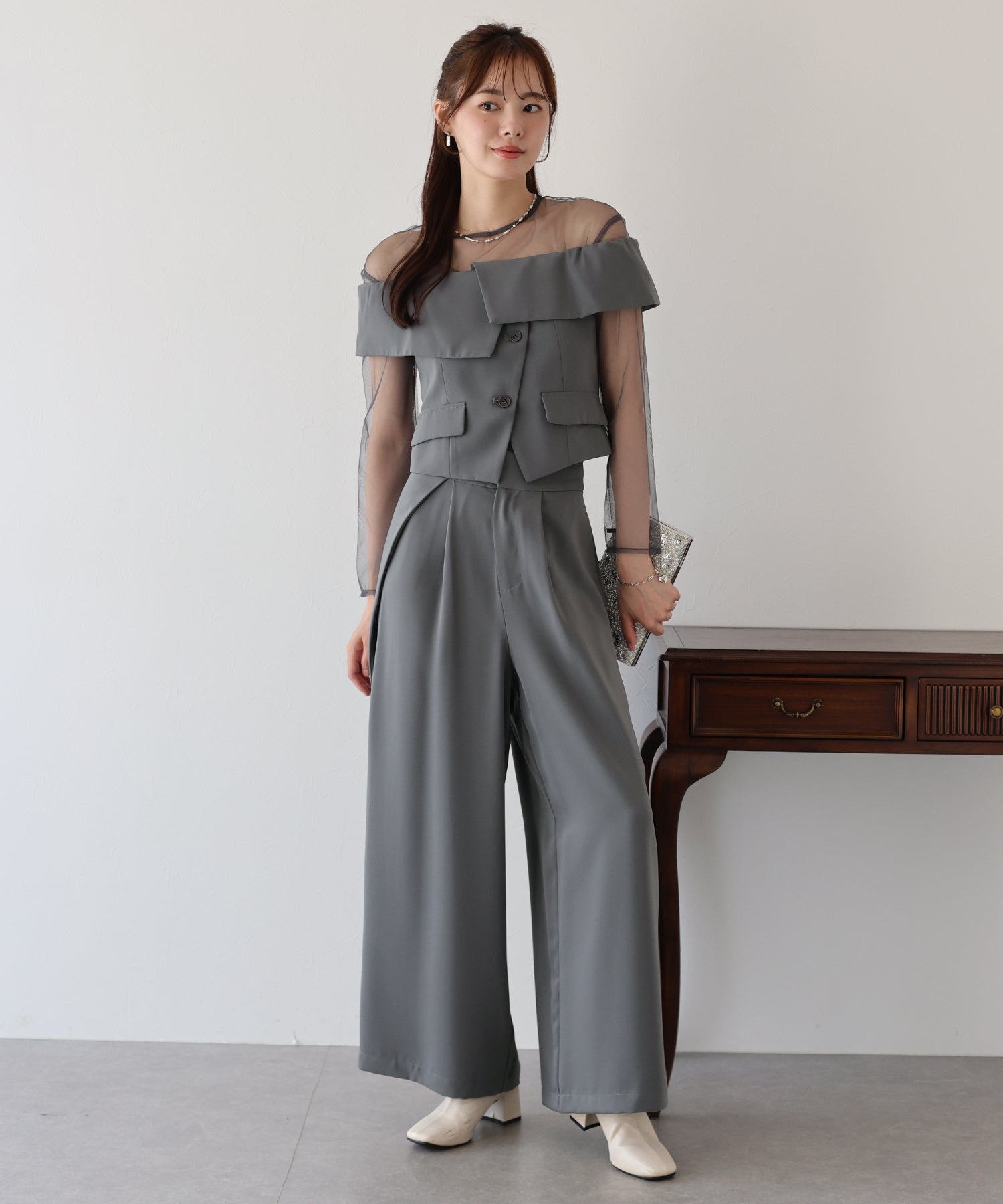 マルチウェイなトップスがポイントの都会的モードな3点セットアイテム。