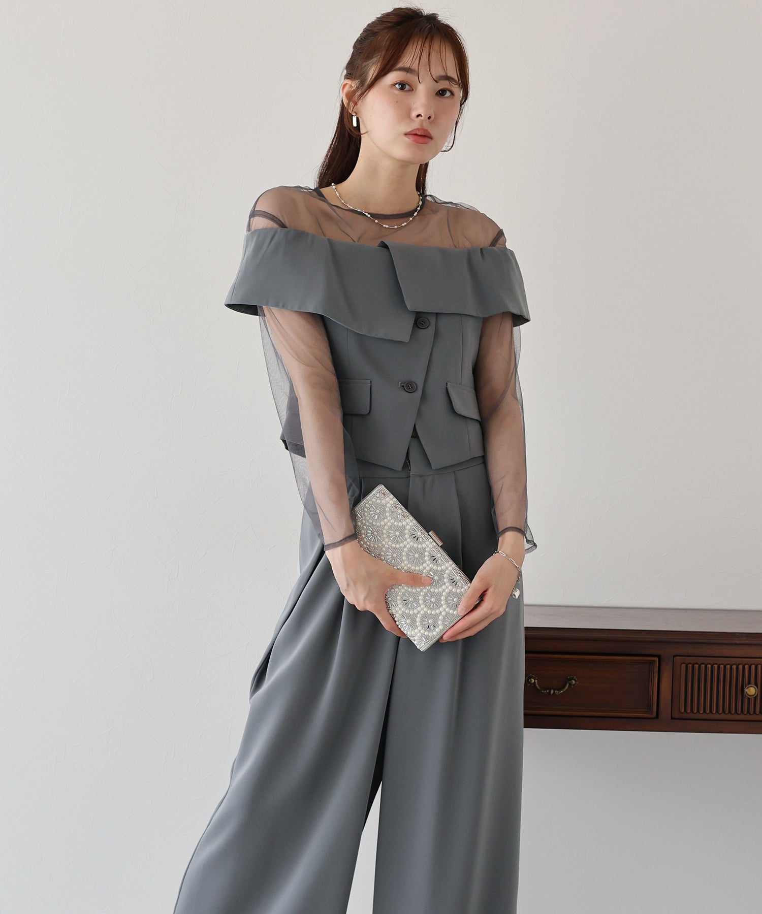 セットで着用すれば華やかな印象に、単品使いでカジュアルやオフィススタイルにも対応◎