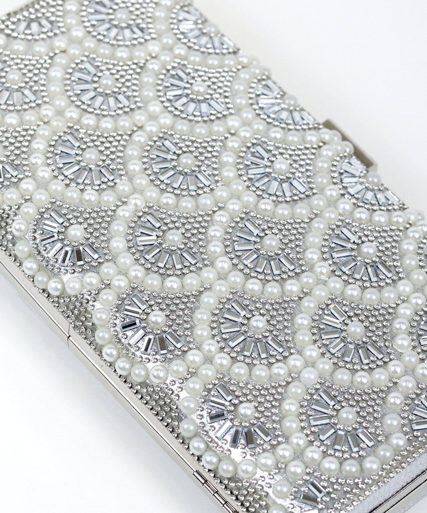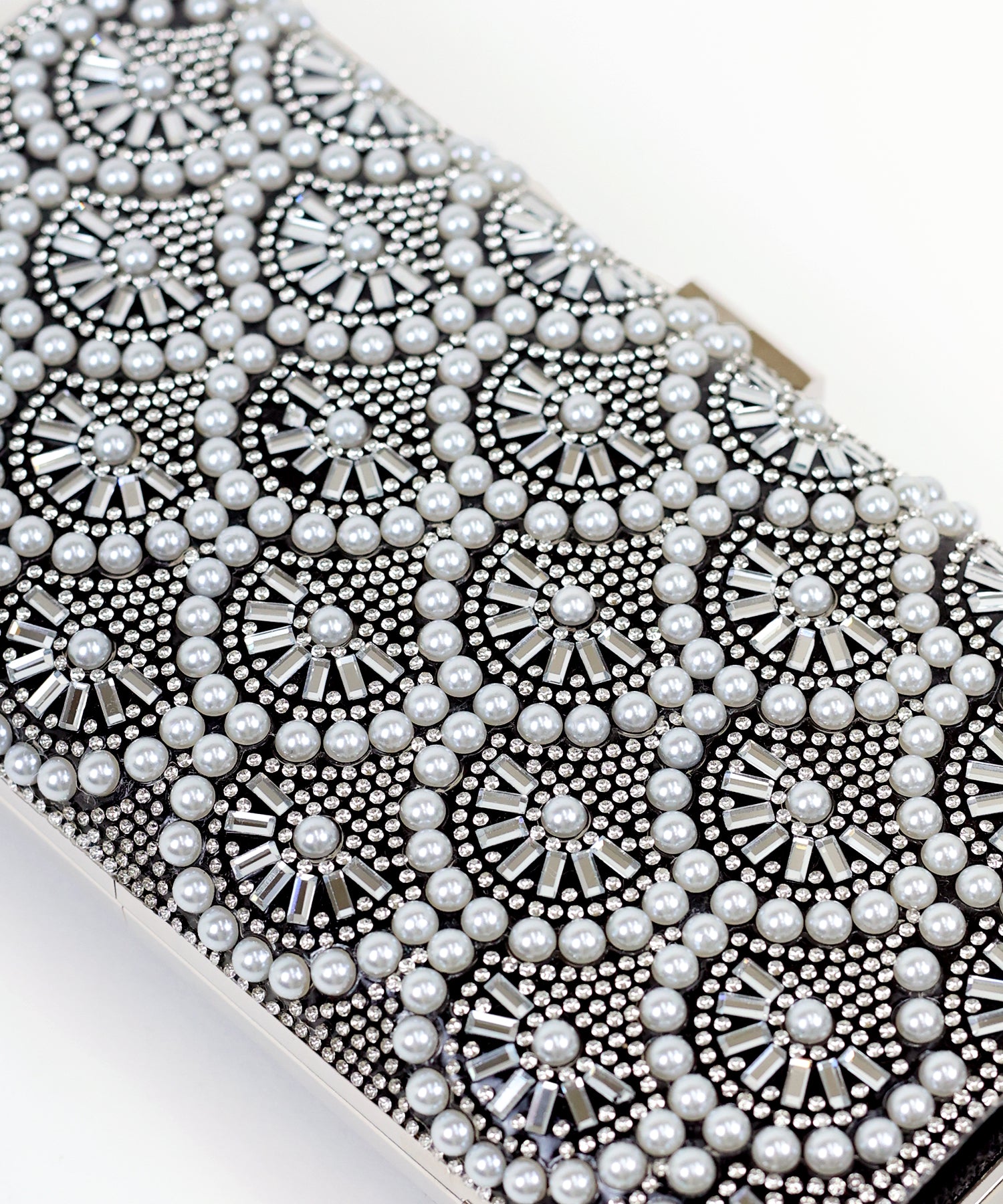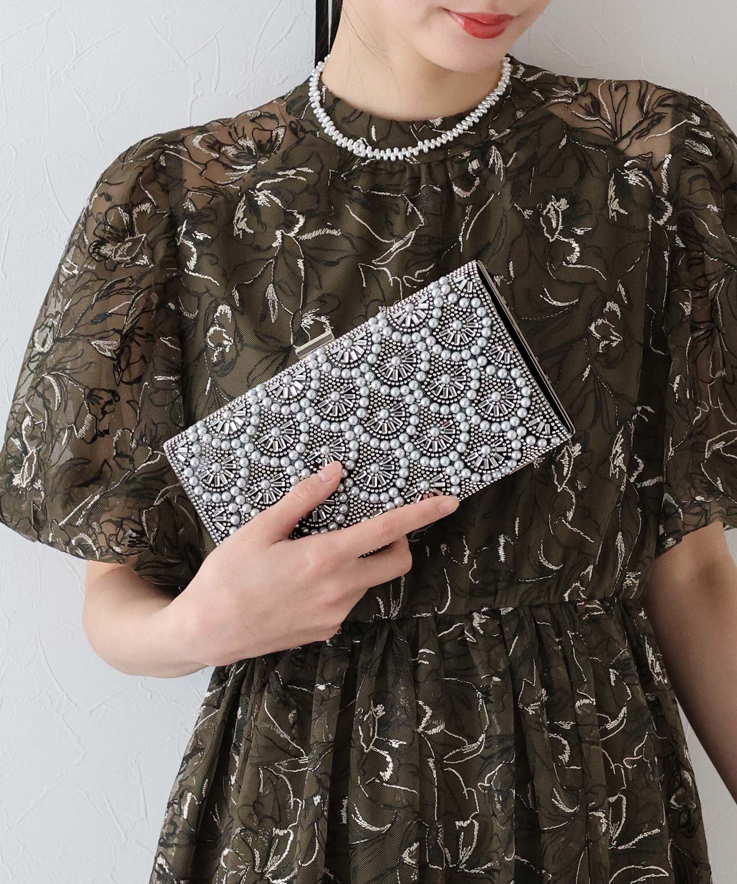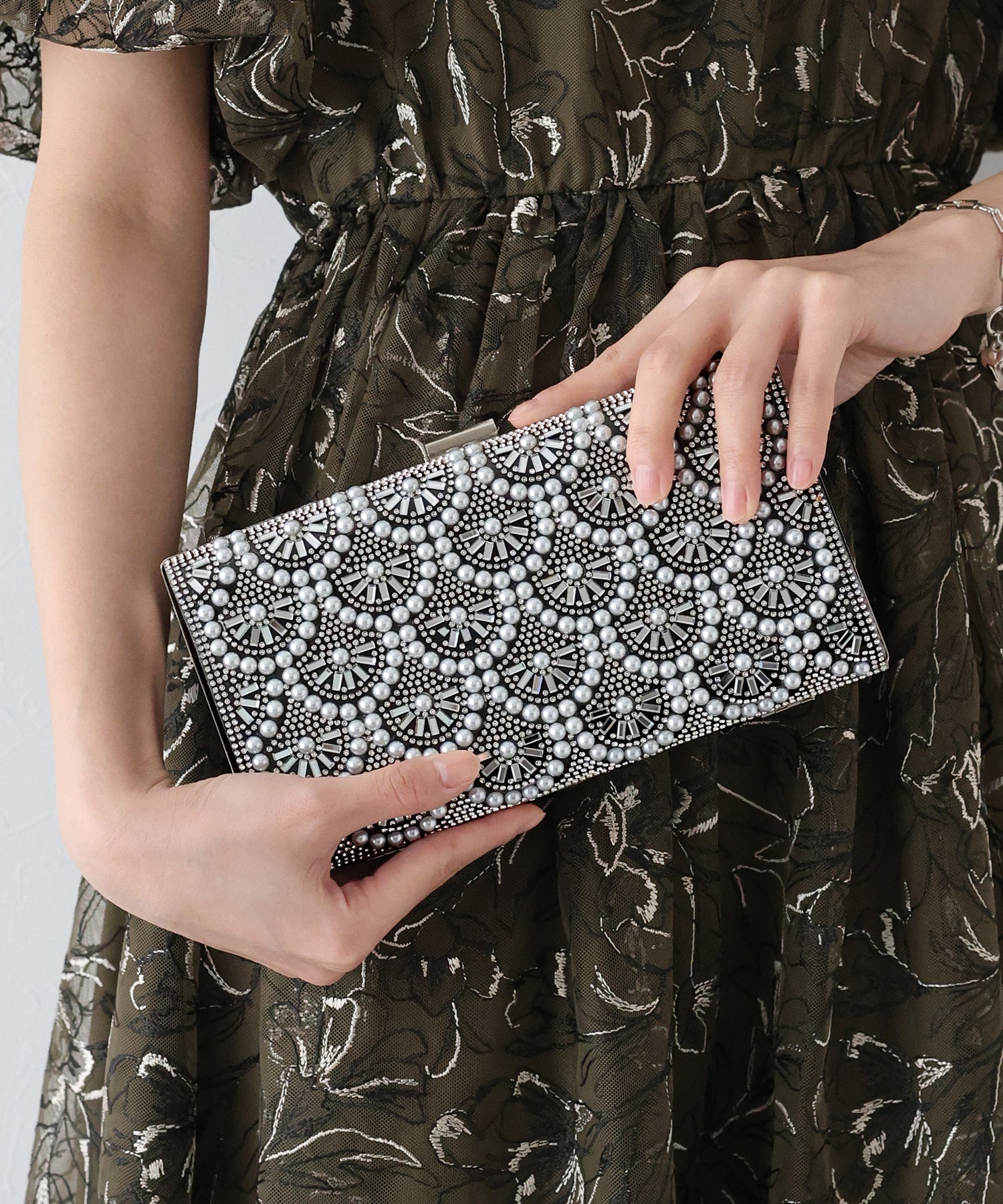 キラキラと輝くビジュー&パールが目を惹くクラッチバッグ