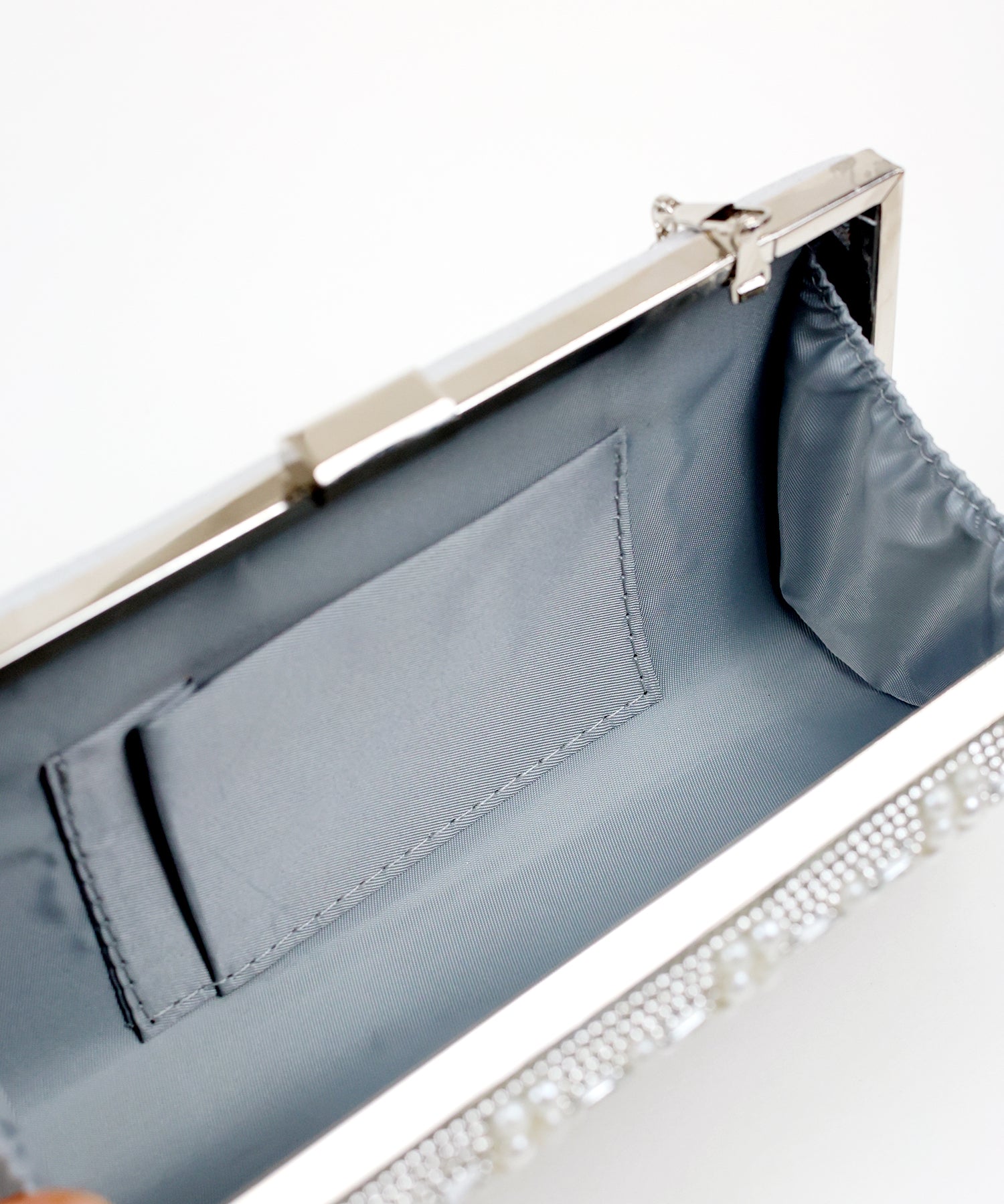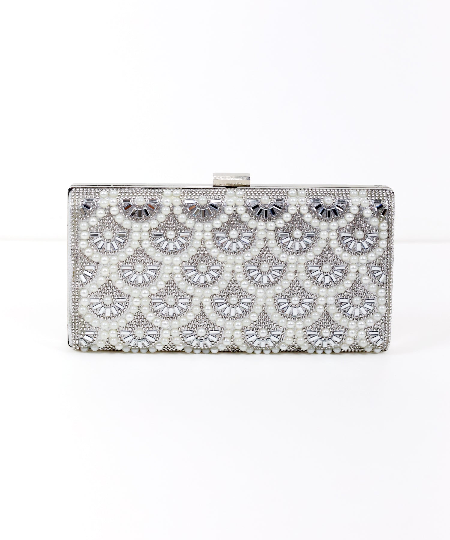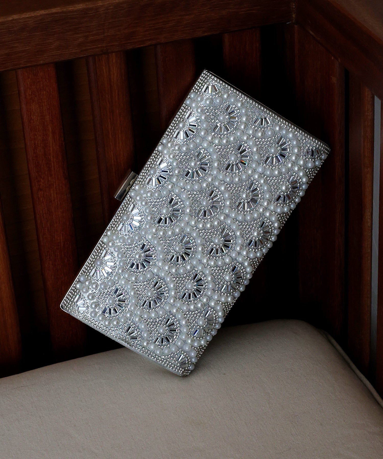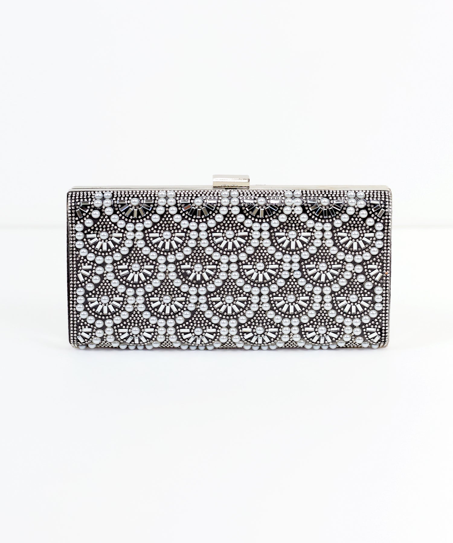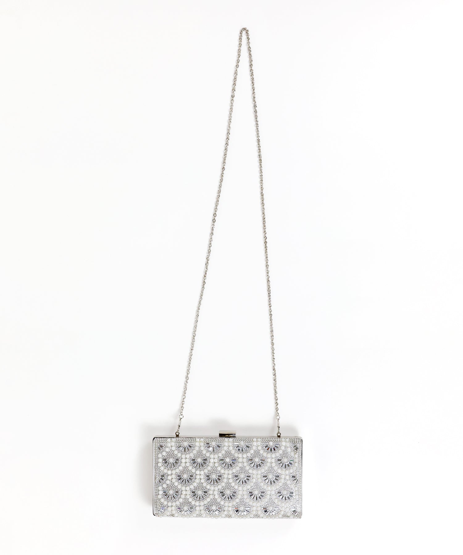 キラキラと輝くビジュー&パールが目を惹くクラッチバッグ