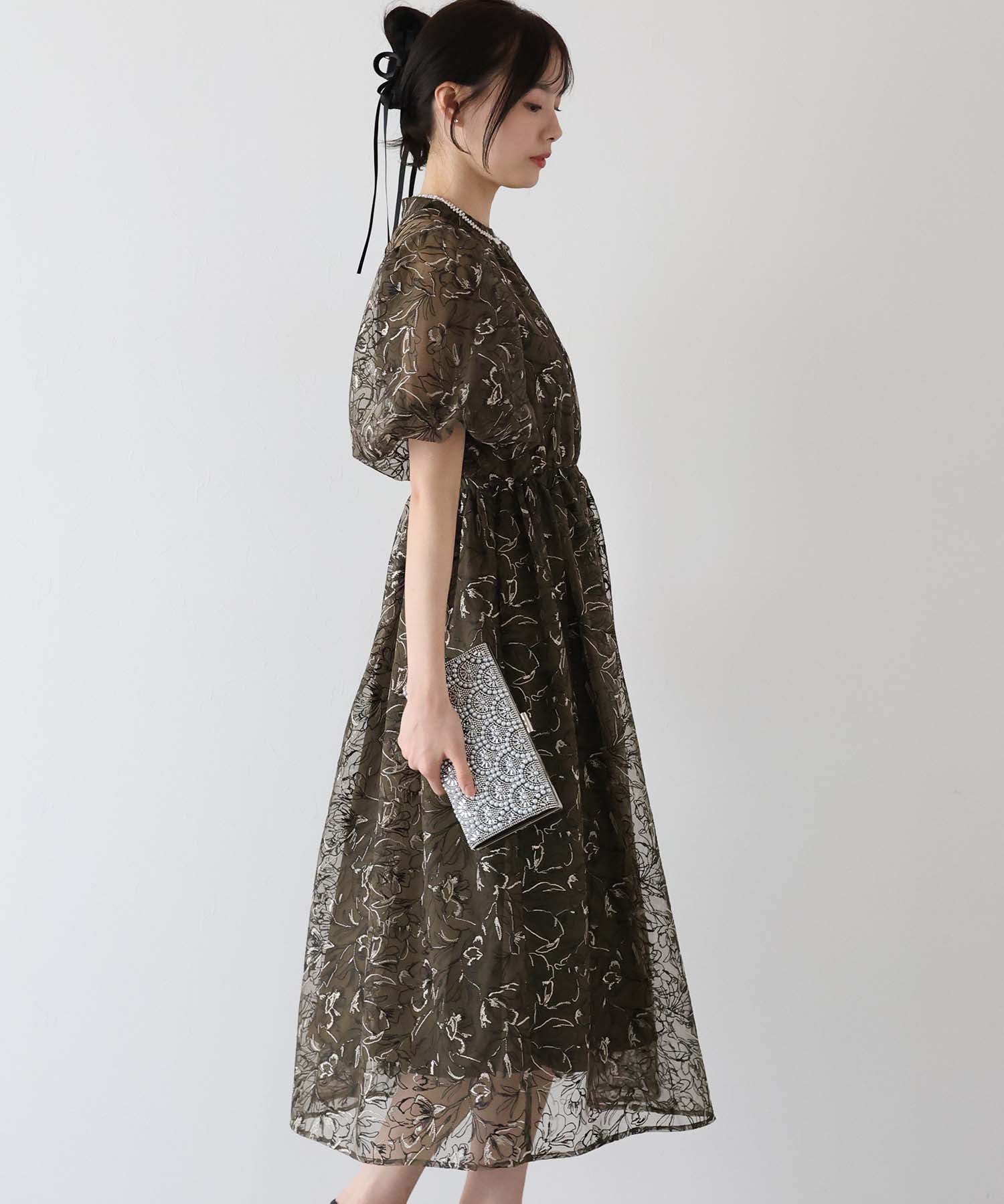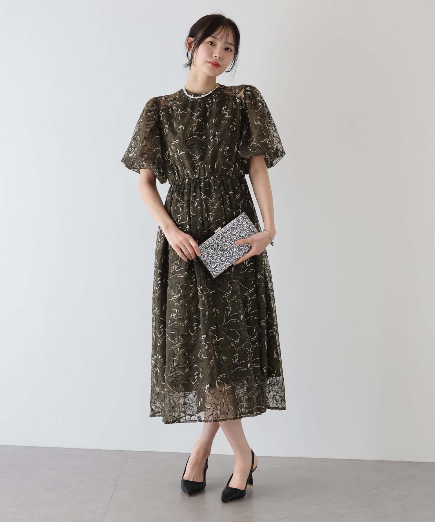 ?STYLING シンプルなワンピースにもキラキラなビジュー&パールで華やかに。 結婚式やパーティー、入学式や卒業式などのオケージョンシーンで活躍するアイテムです。