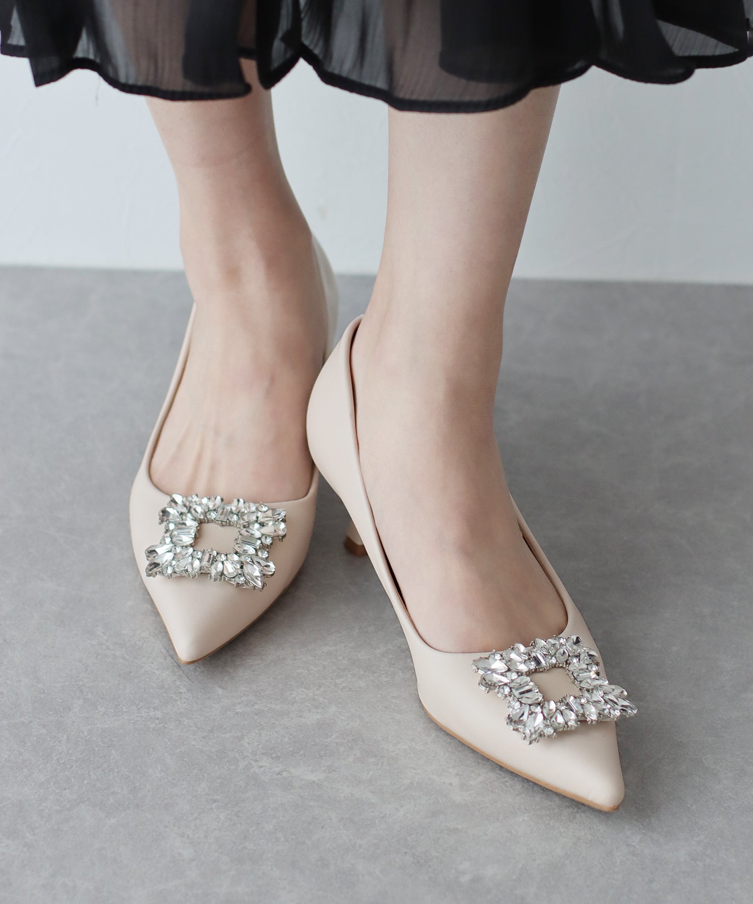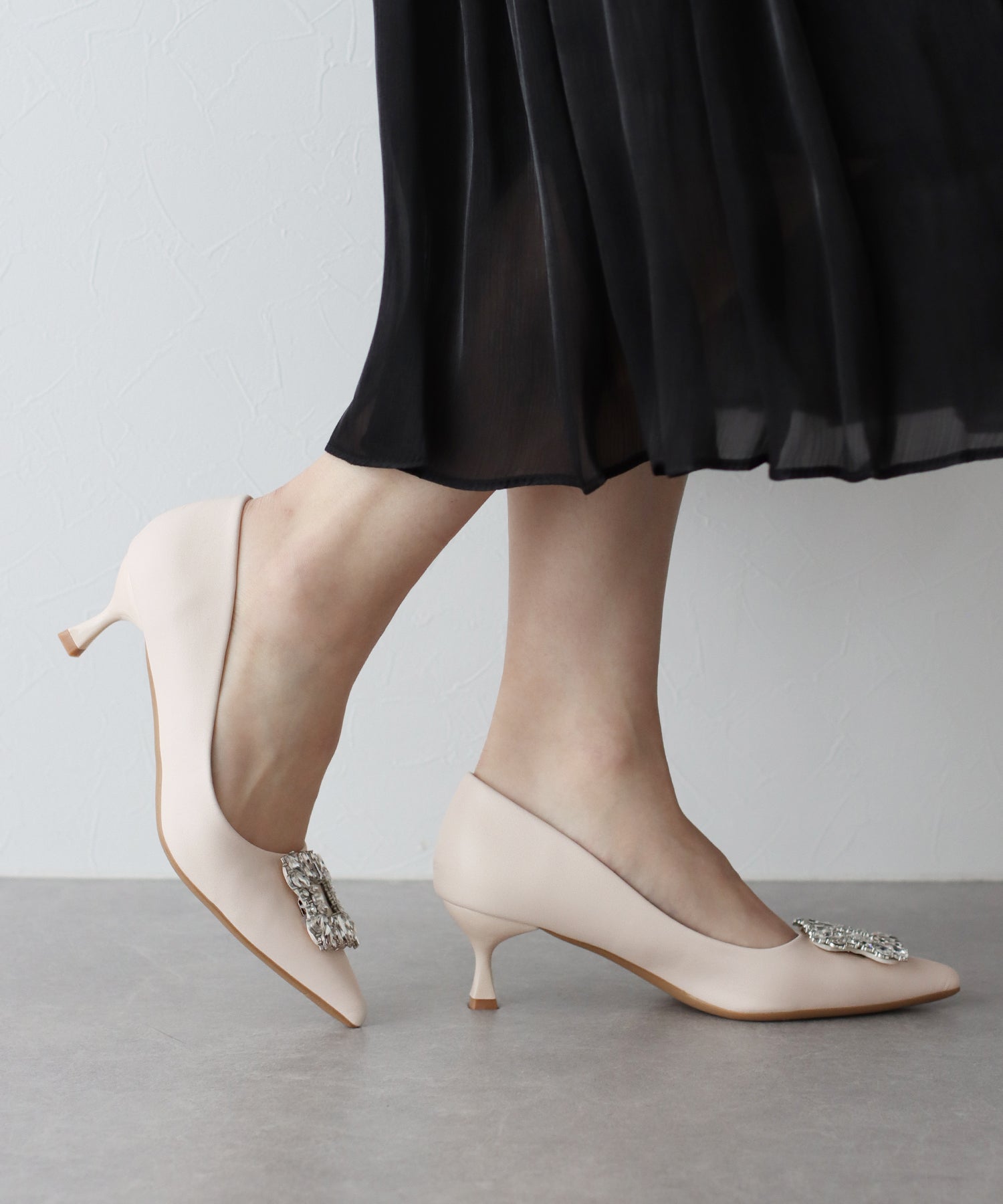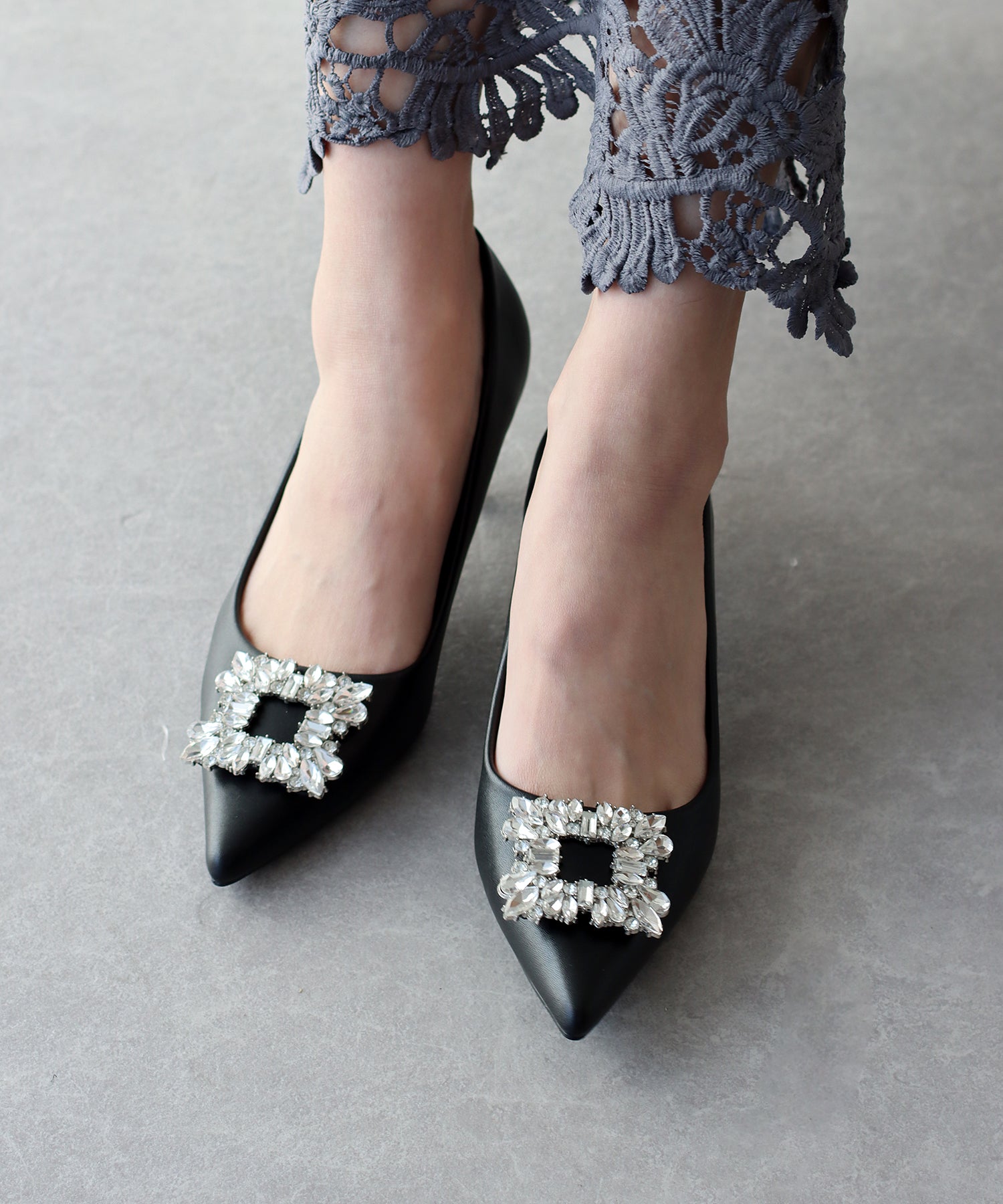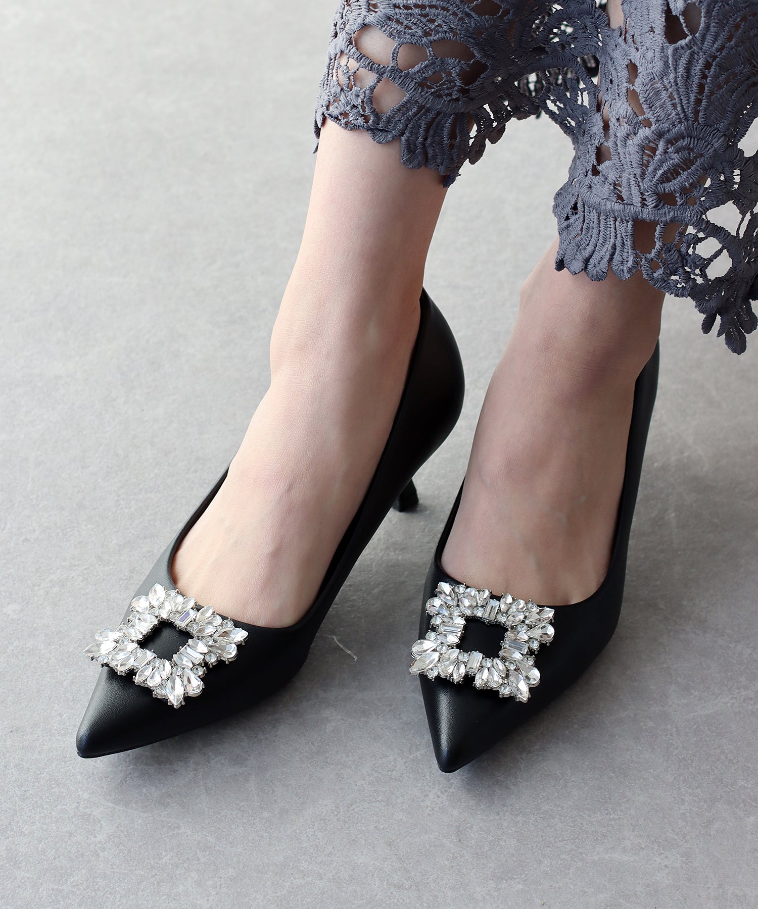 - ビジューモチーフパンプス
