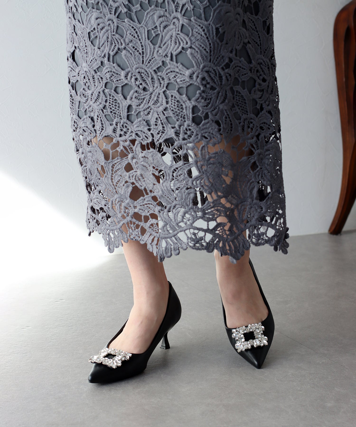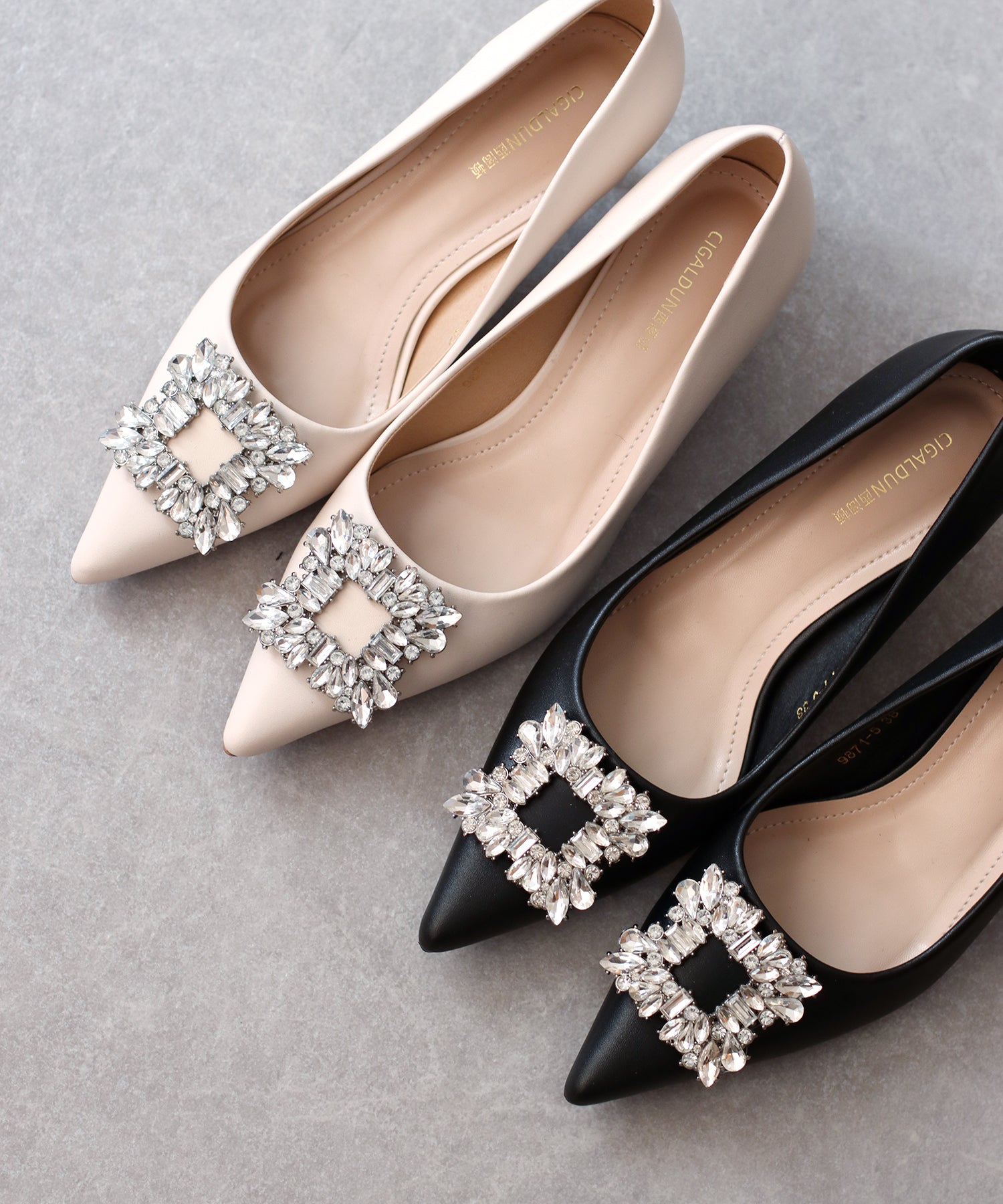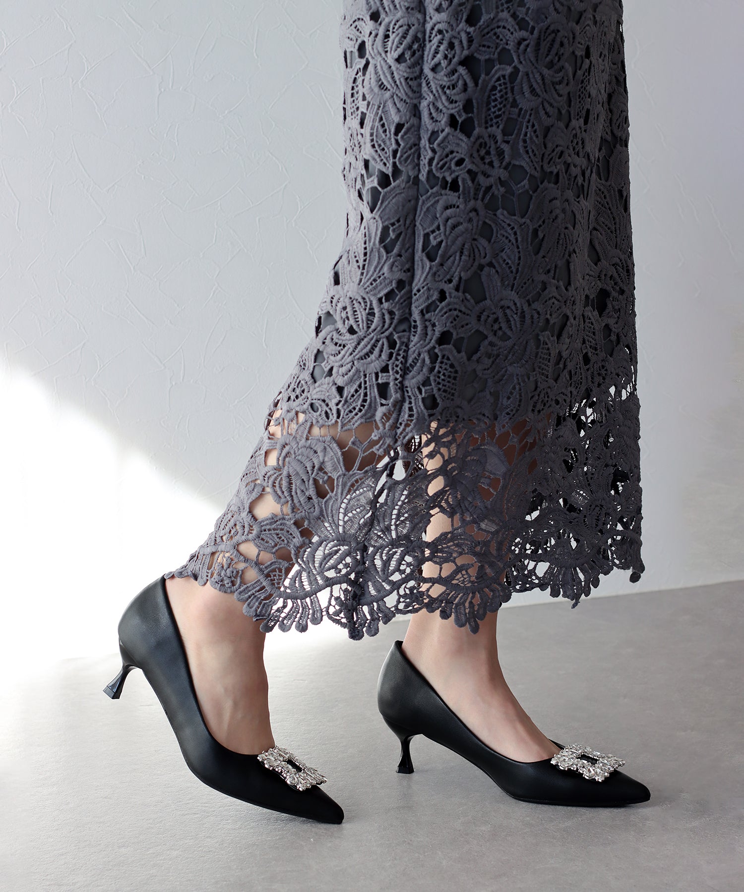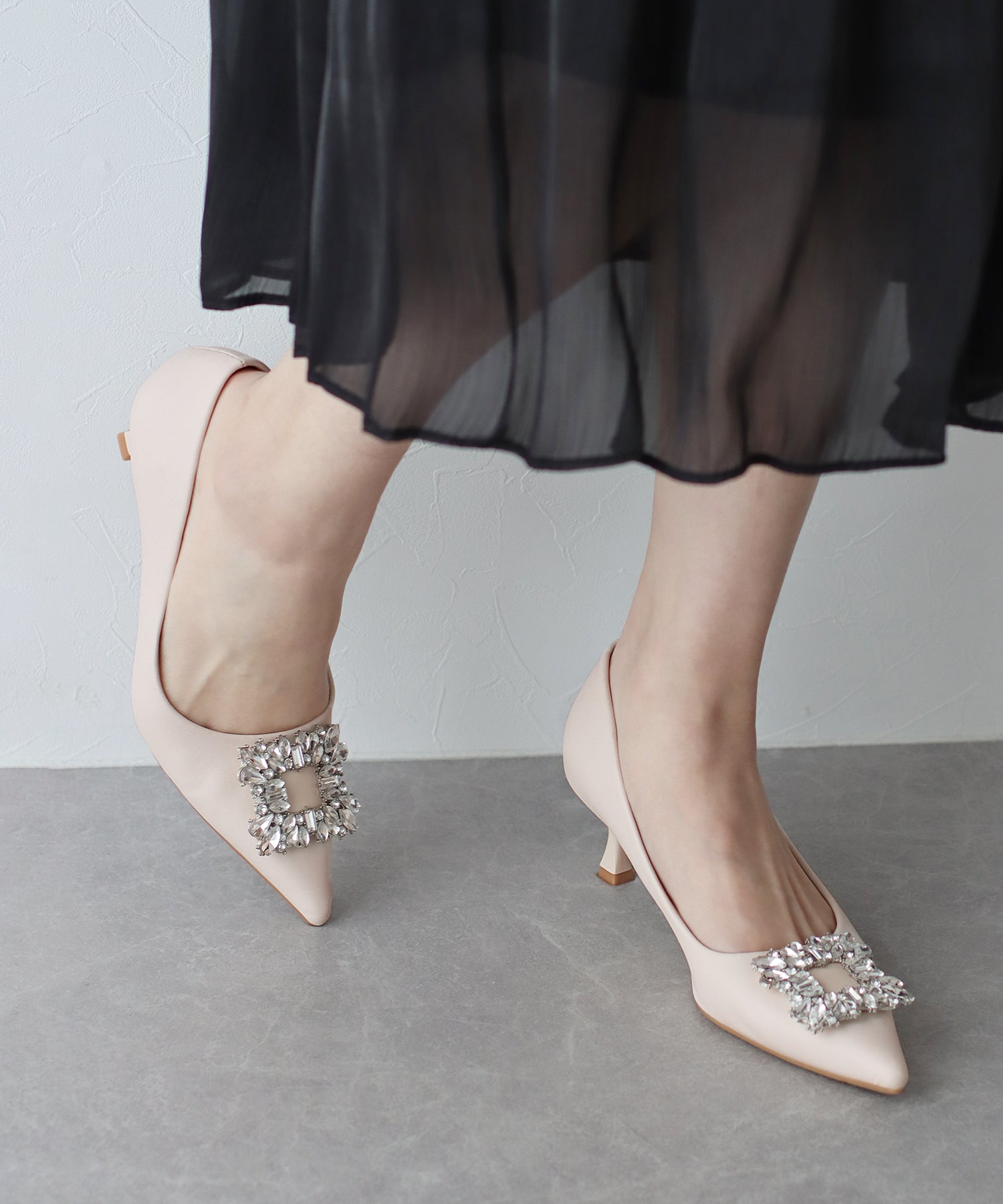 - ビジューモチーフパンプス