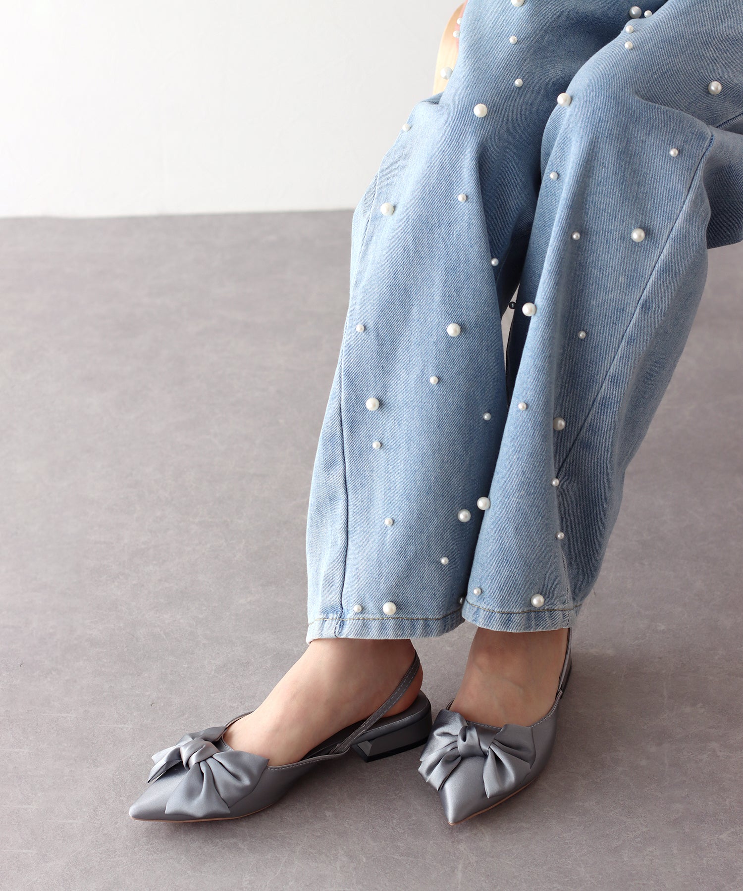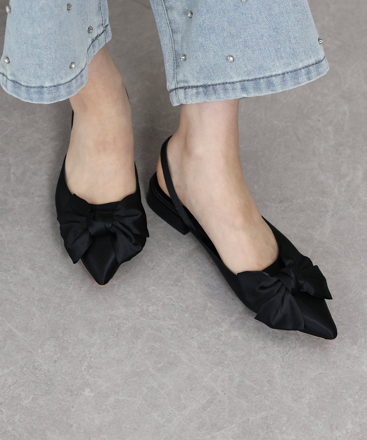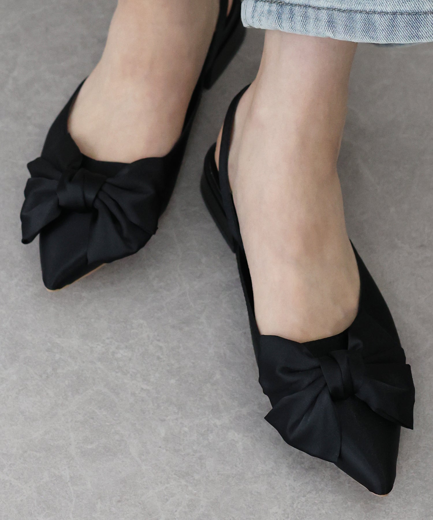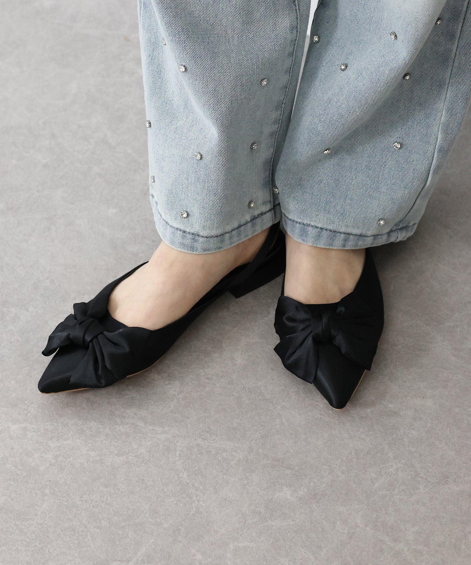 ?DETAIL リボンデザイン ポインテッドトゥ バックストラップ クッション付き フラット