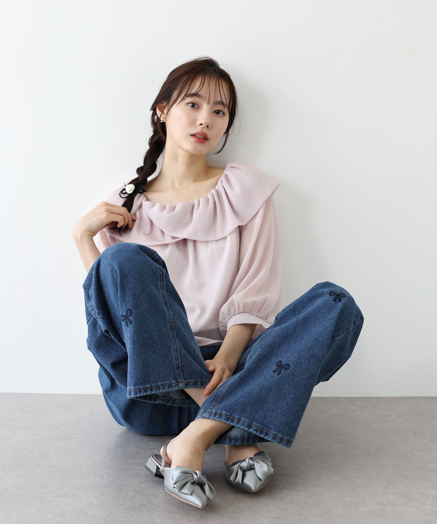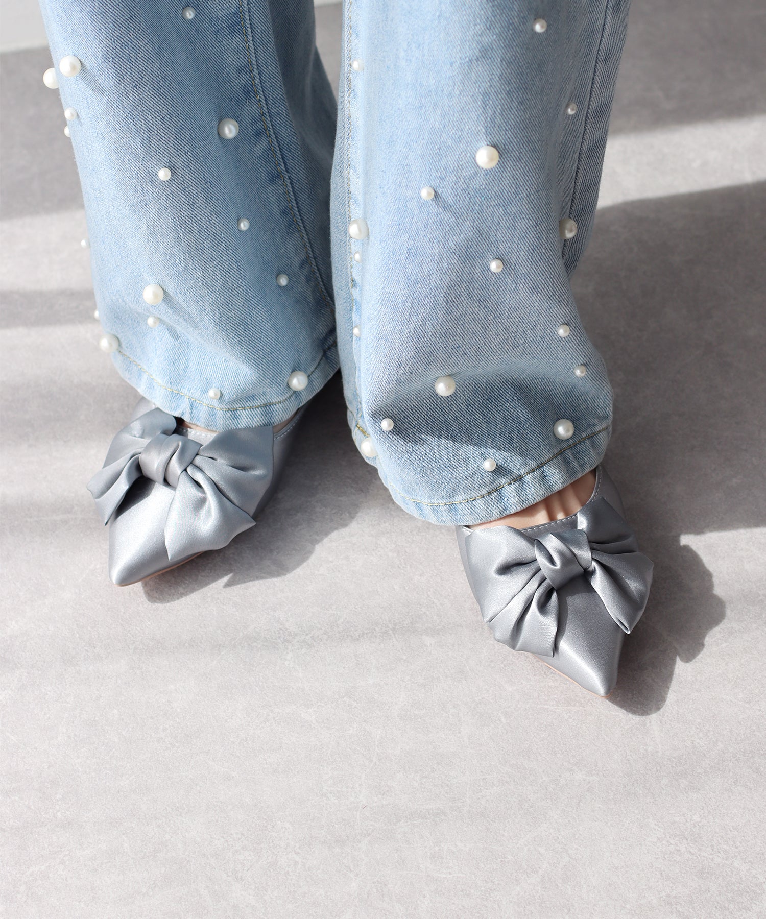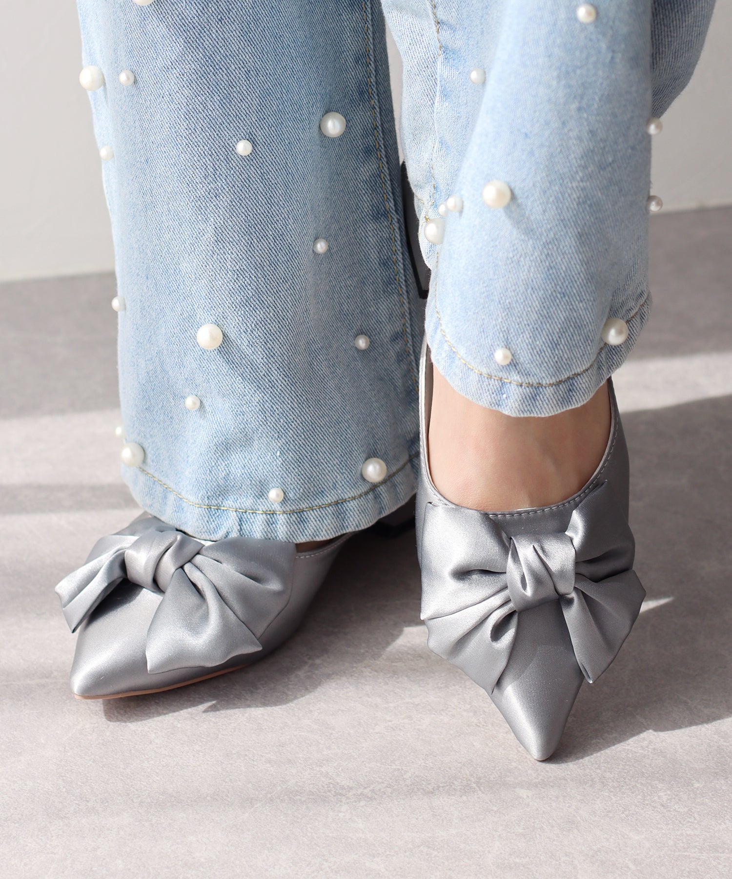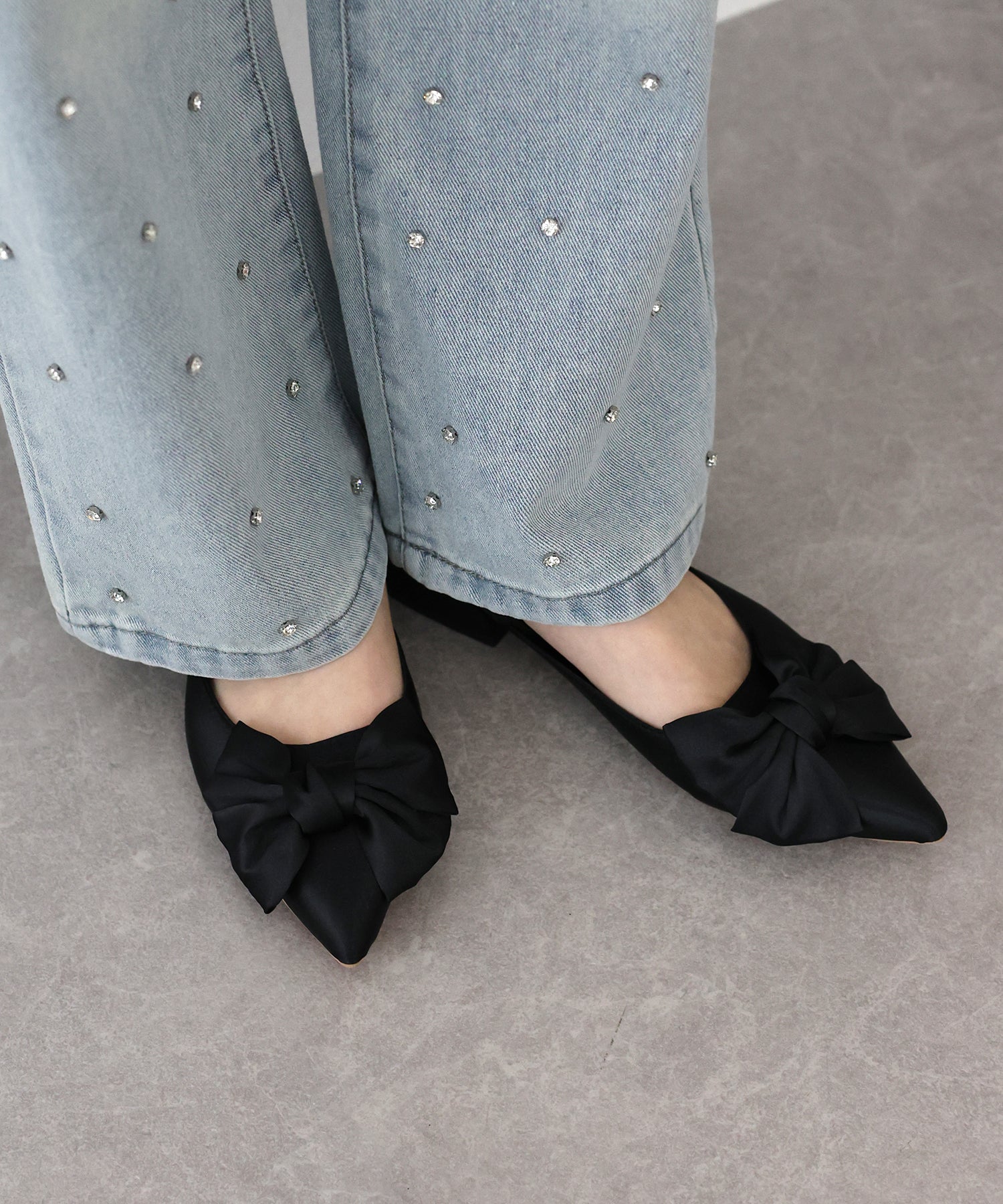 ?DETAIL リボンデザイン ポインテッドトゥ バックストラップ クッション付き フラット