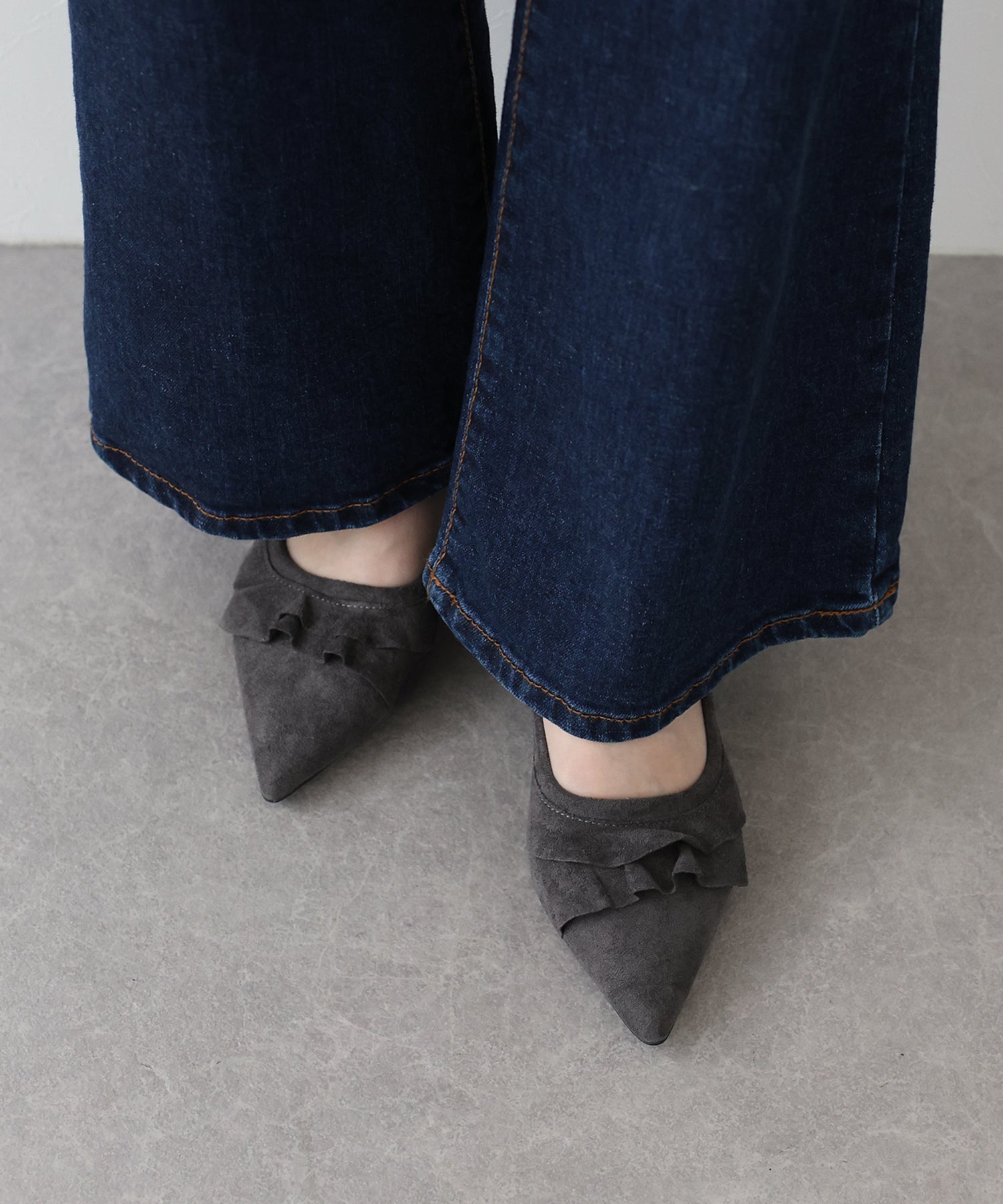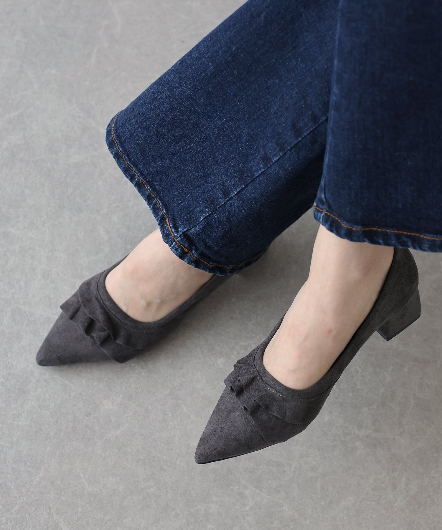 ?DETAIL レース付き ポインテッドトゥ クッション有り 4.5cmヒール