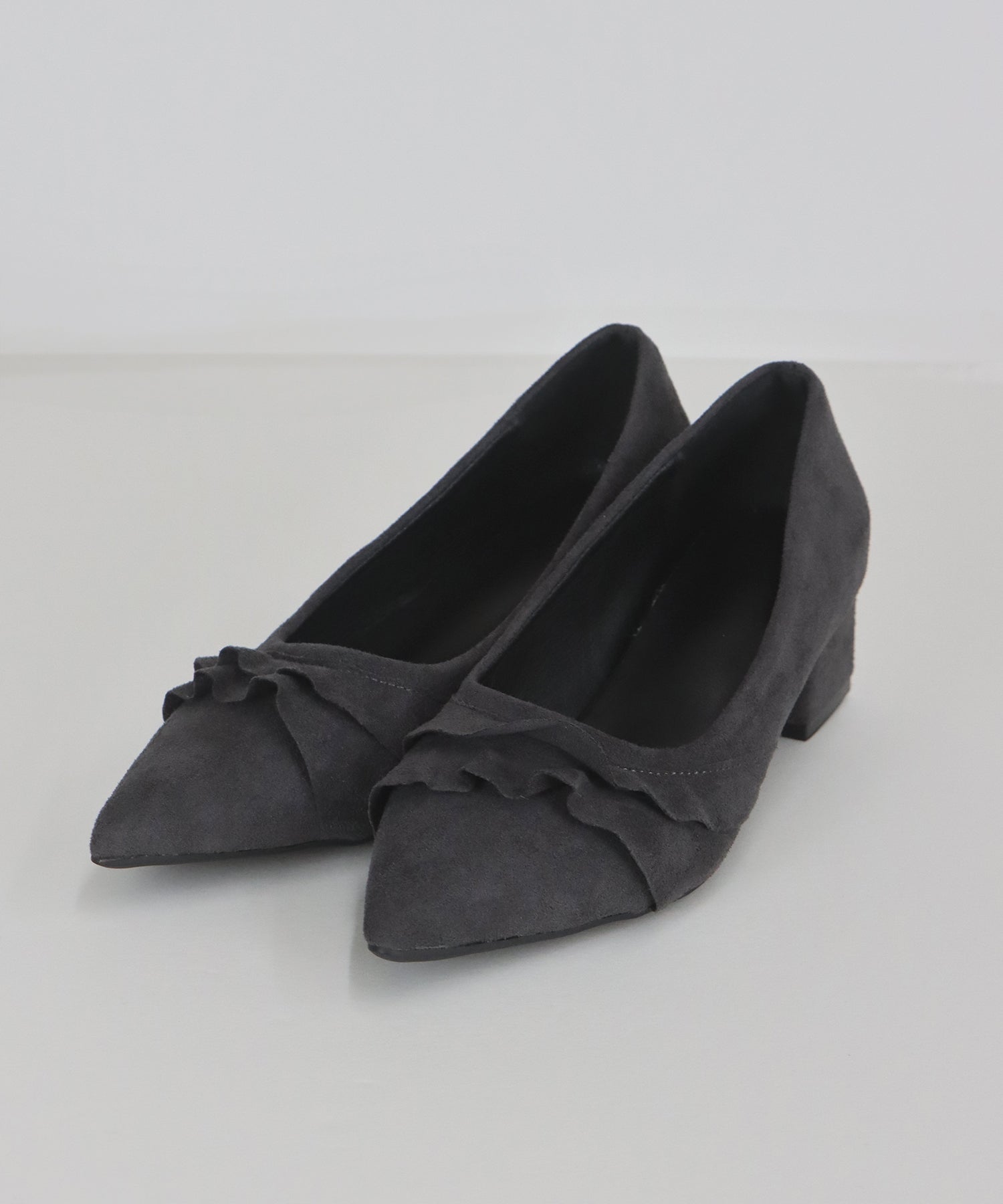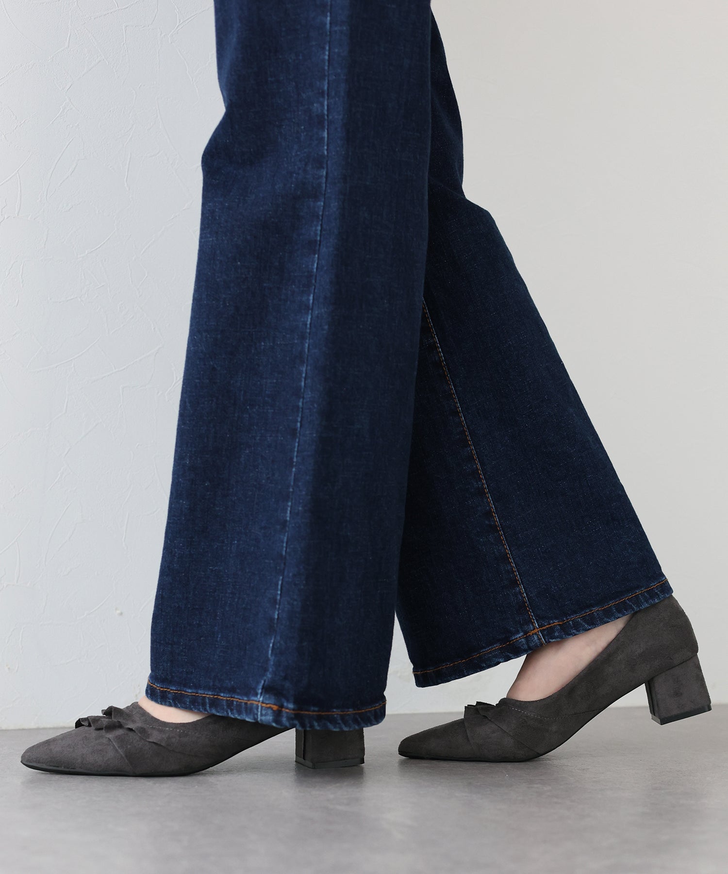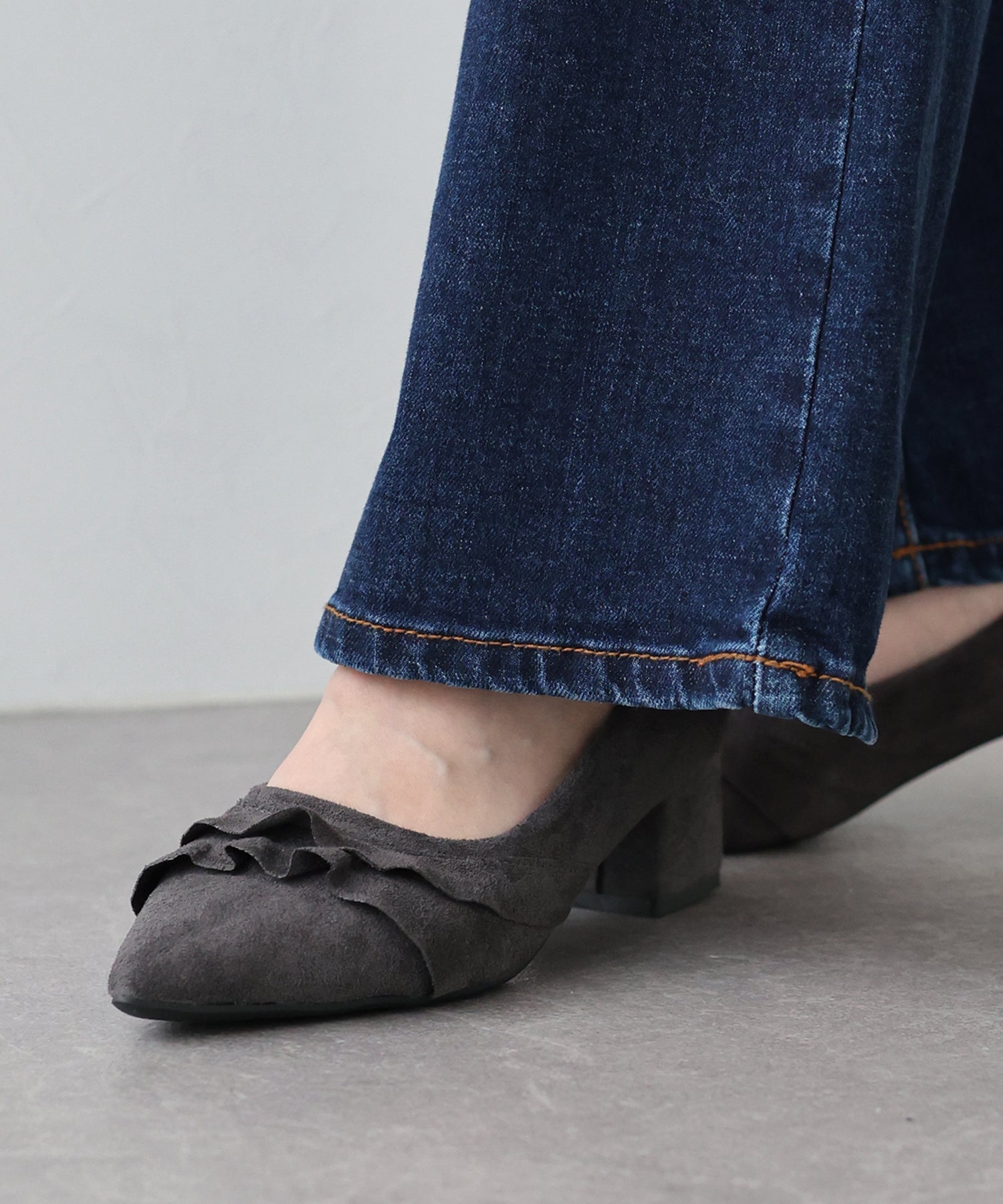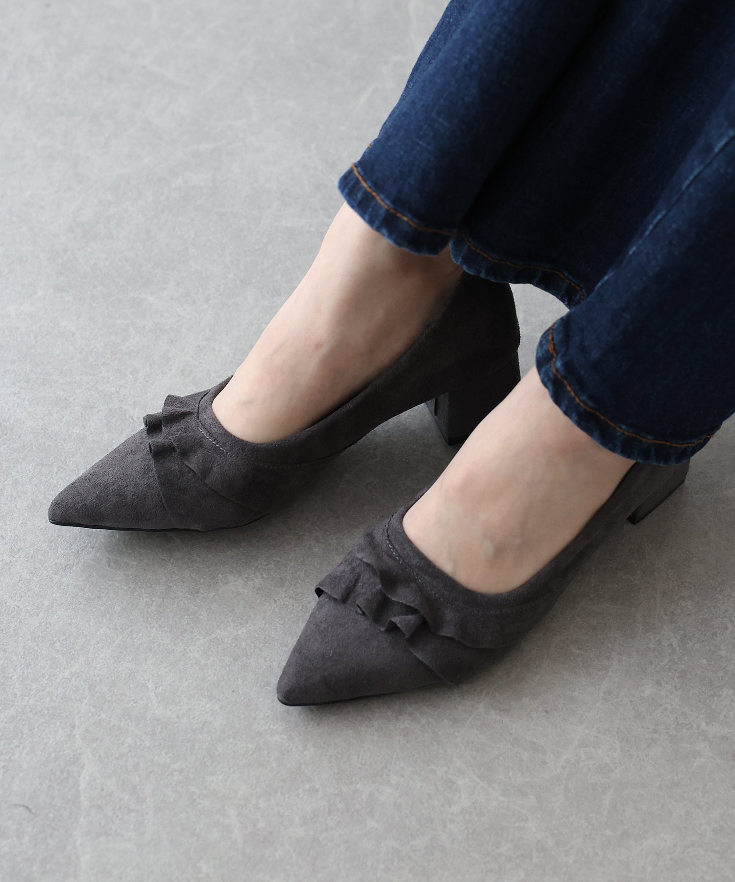 レースデザインがコーデのポイントになるパンプス ?POINT 立体感のあるレースがキュートでコーディネートにこなれ感を出してくれるパンプス。 すっきりとしたシルエットのポインテッドトゥで脚をより綺麗に見せます。 スウェード調素材が履くだけで秋冬のムードを高めてくれるシーズンライクなアイテムです。 クッション入りで、ボックスヒールなので安定感があり歩きやすいのもうれしいポイント◎ きれいめなデザインなので、デイリー使いだけでなく 通勤シューズとしてやオケージョンシーンにもぴったりです。