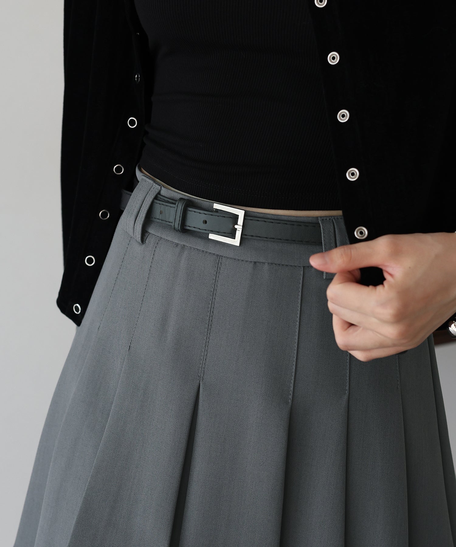 ?DETAIL バックファスナー有り ベルトループ有り 合皮ベルト付き