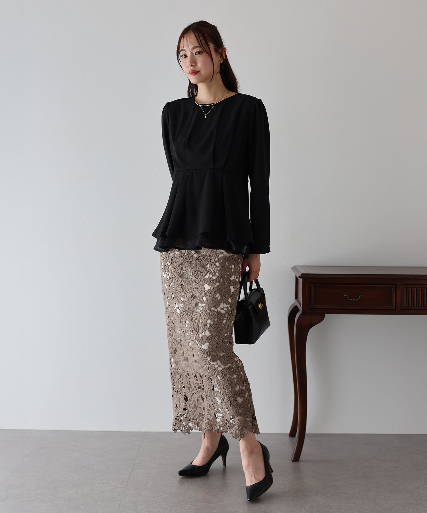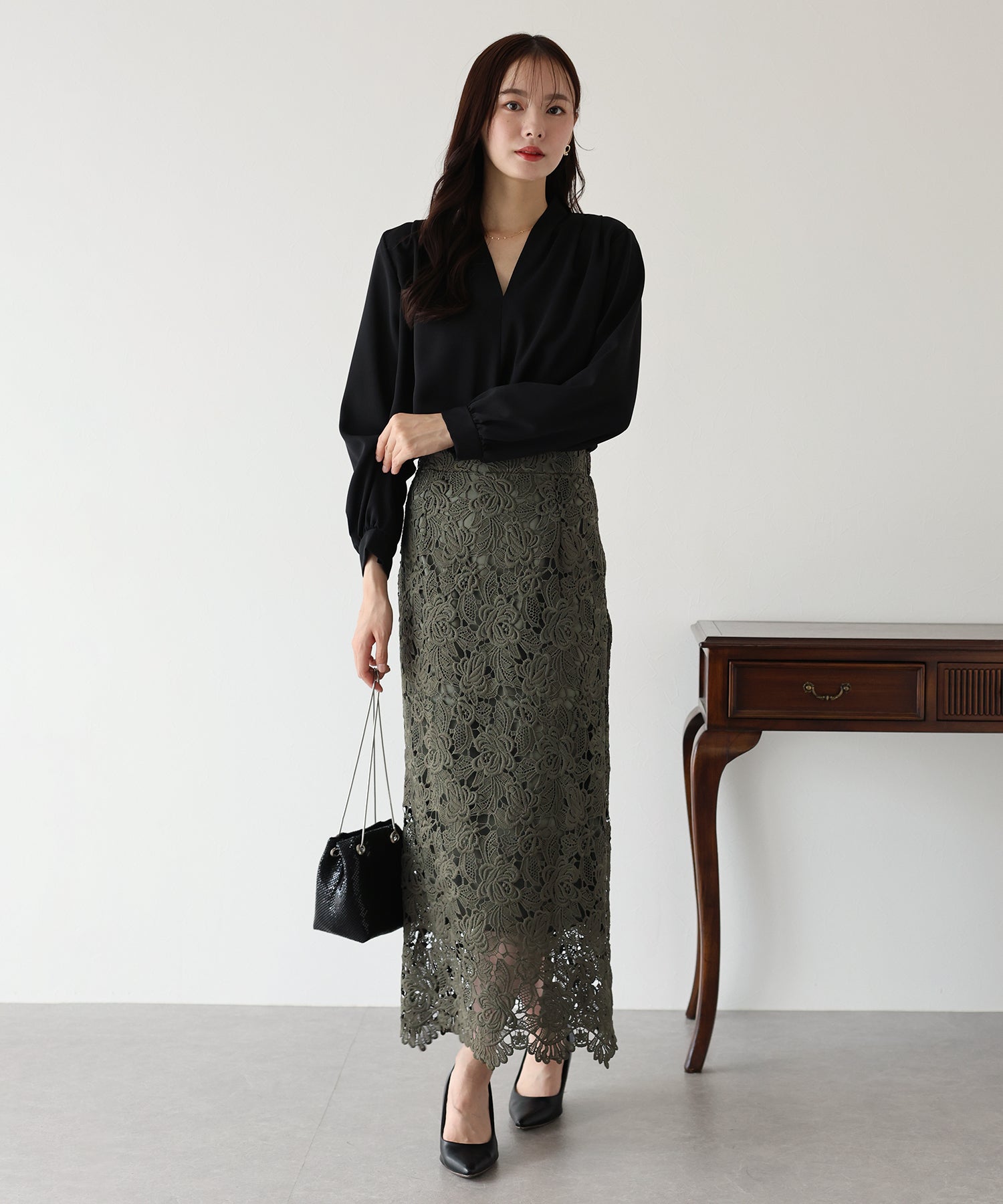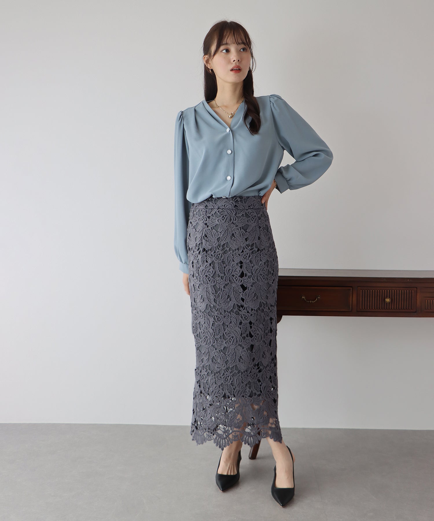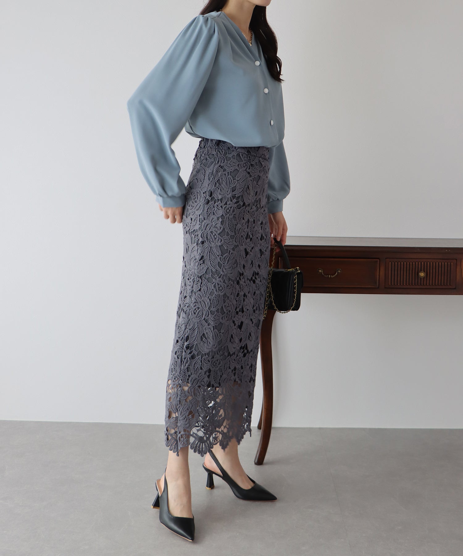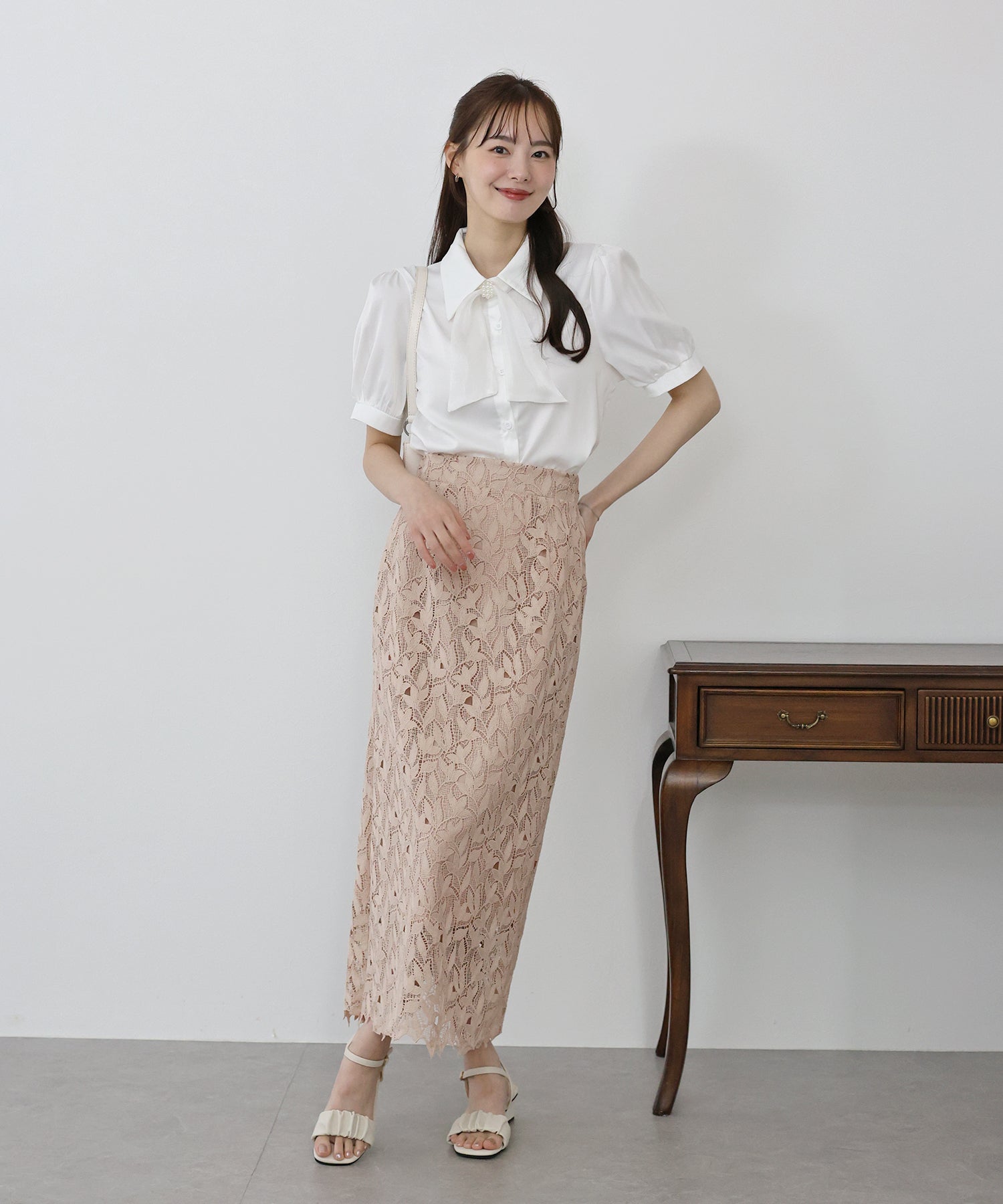 ?POINT 大人っぽく着こなせるタイトラインの総レーススカート。 ウエストはゴムが入っているので着心地も良く、 すっきりとしたIライン&ハイウエストで美脚効果&腰回りのラインもカバーしてくれます。 裾はレースの雰囲気を活かした透け感のあるスカラップで軽やかな足元に。ON/OFF問わず着まわせる万能アイテムです。
