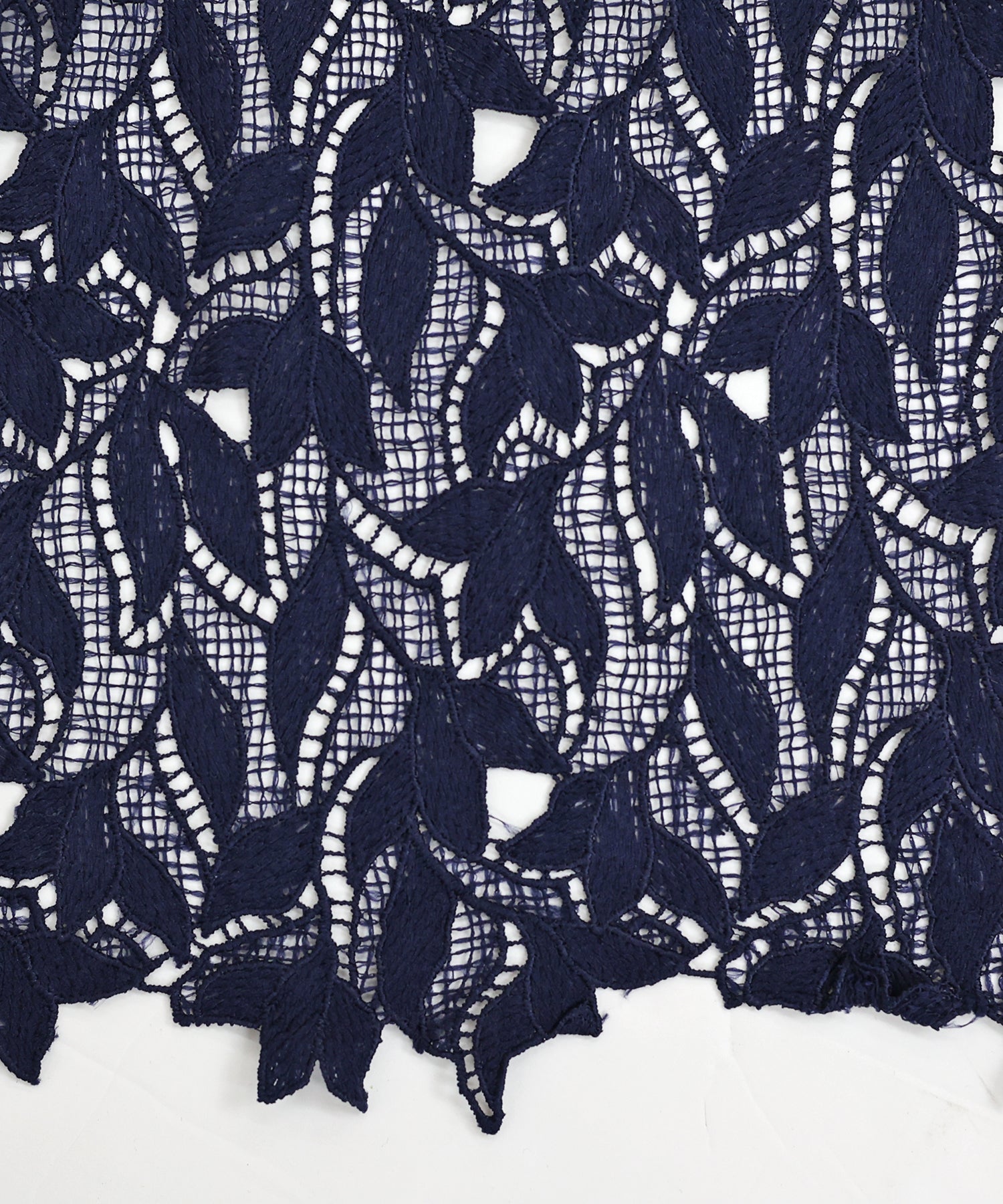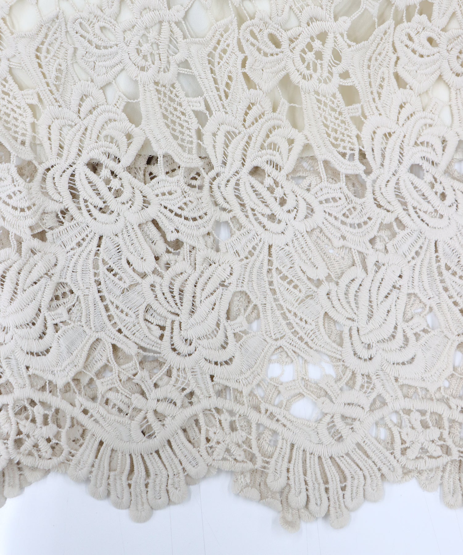 裾がスカラップ仕様で厚みがあり高級感のある花柄レース素材 さらっとしたポリエステル素材の裏地付