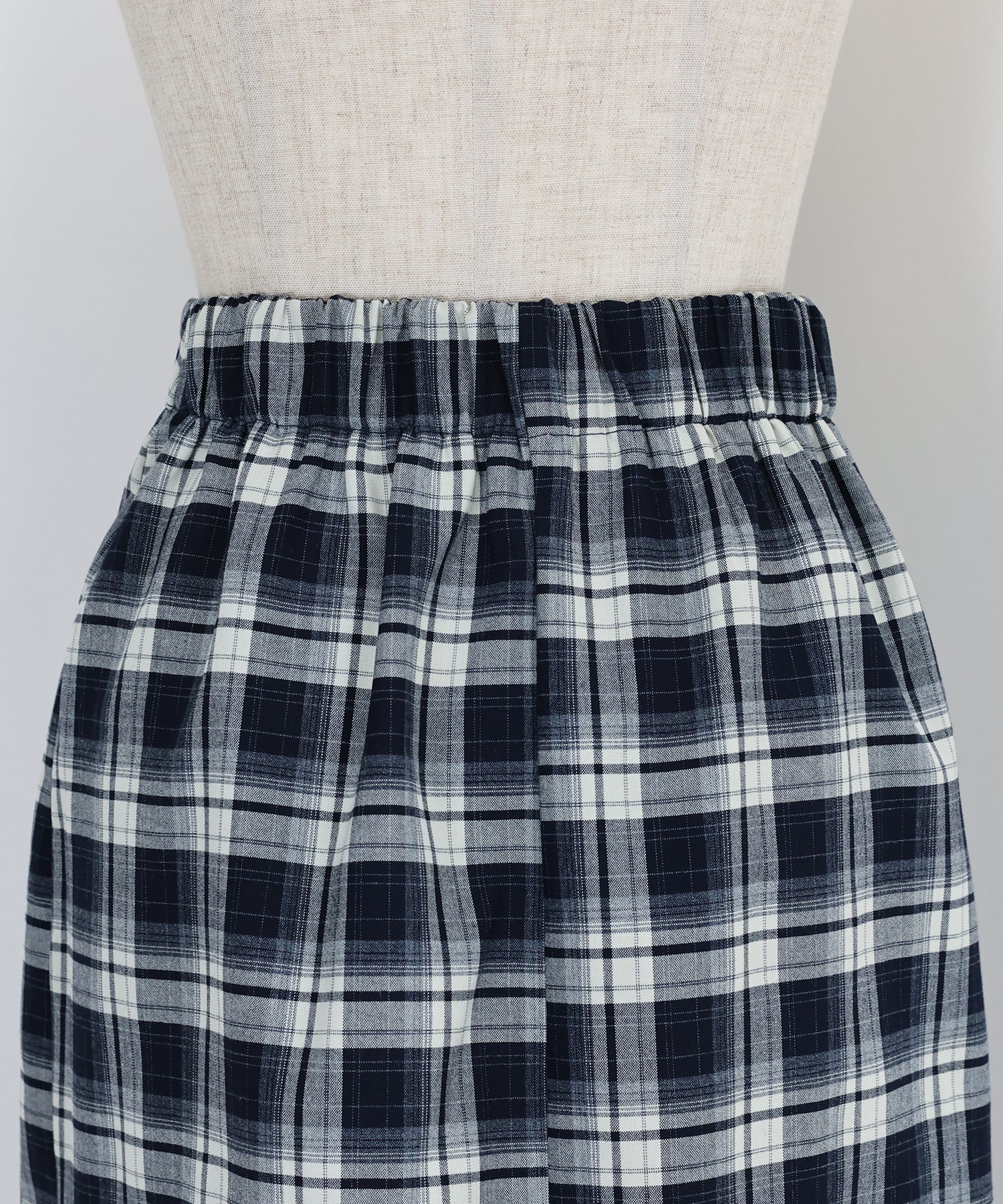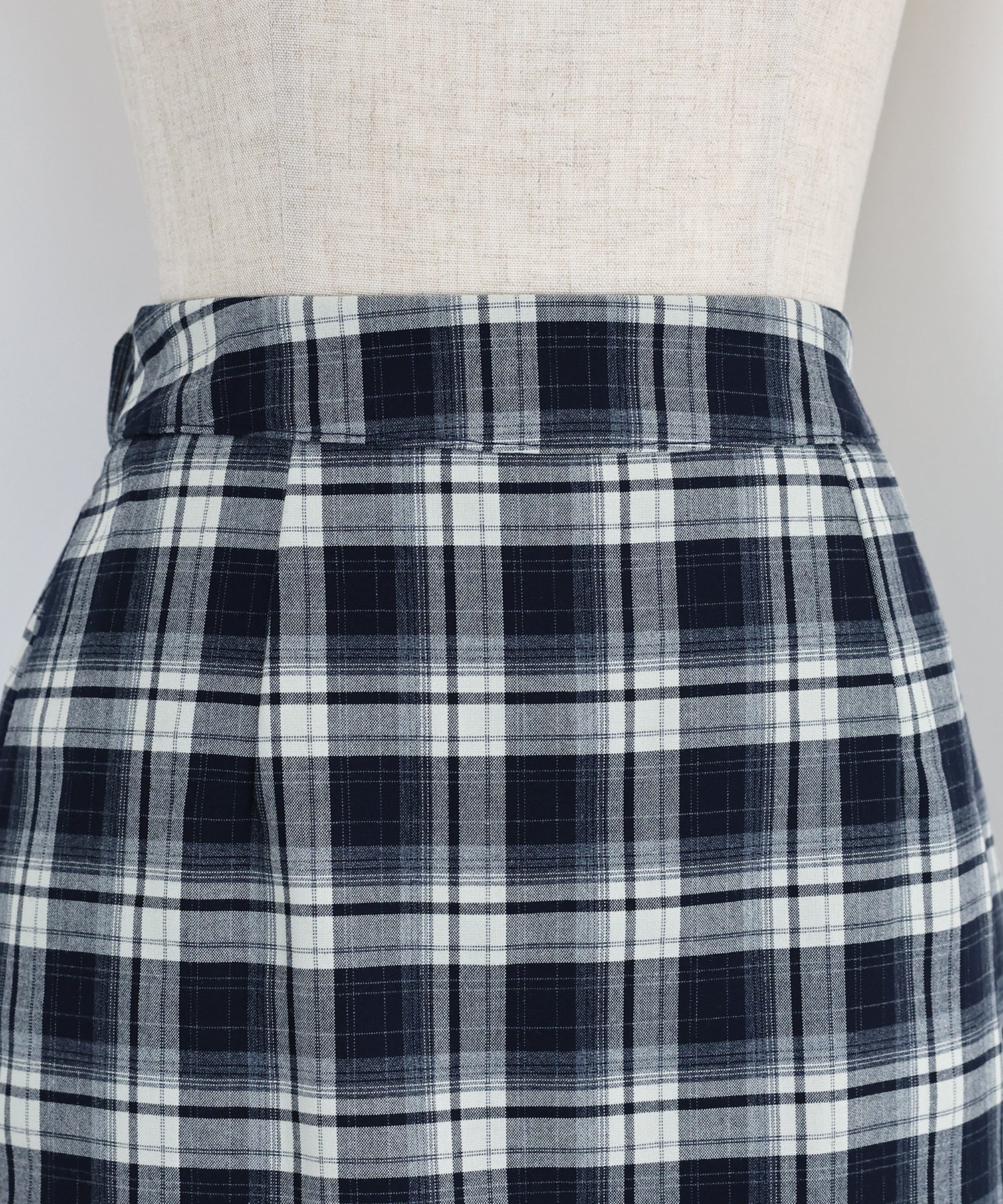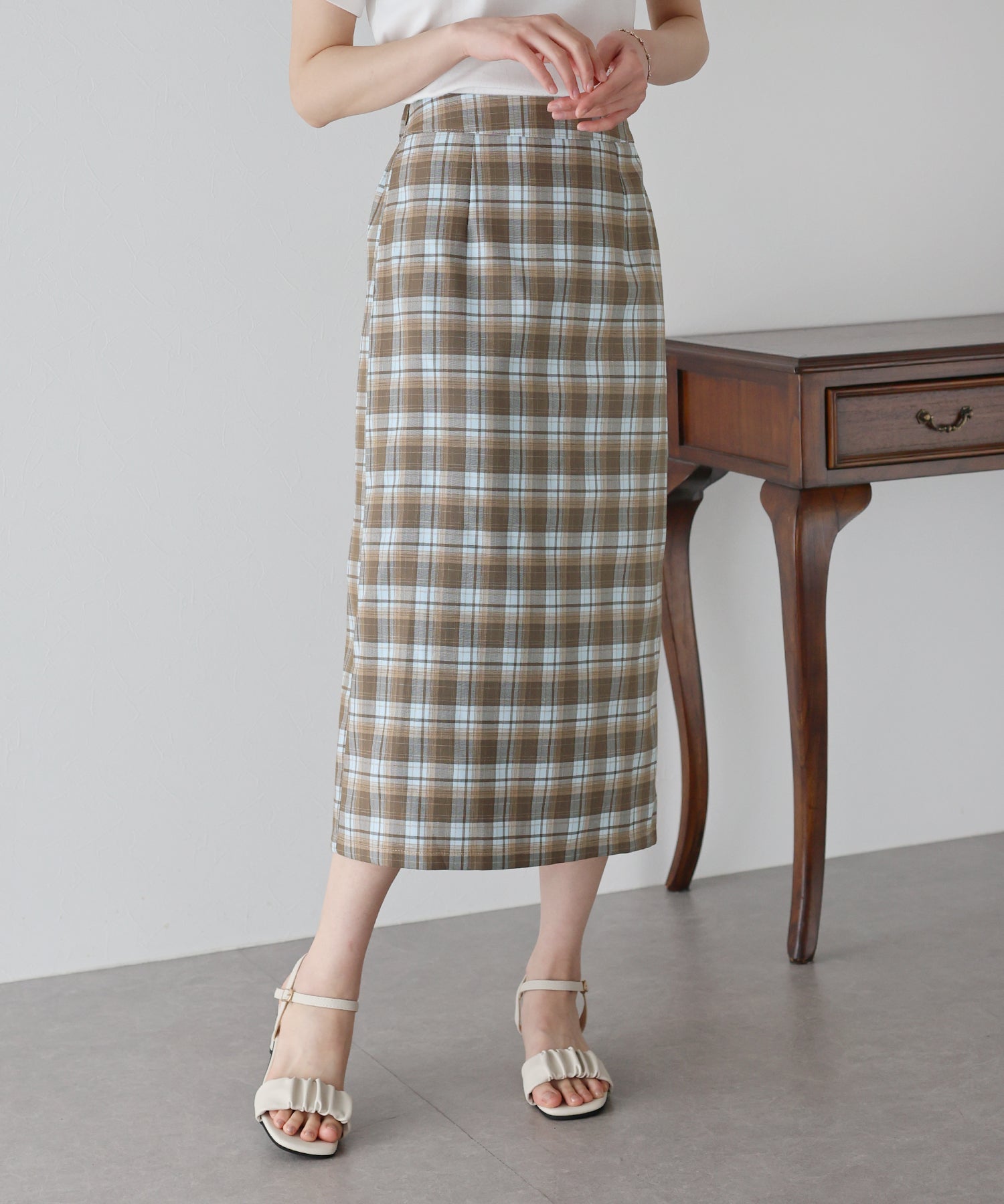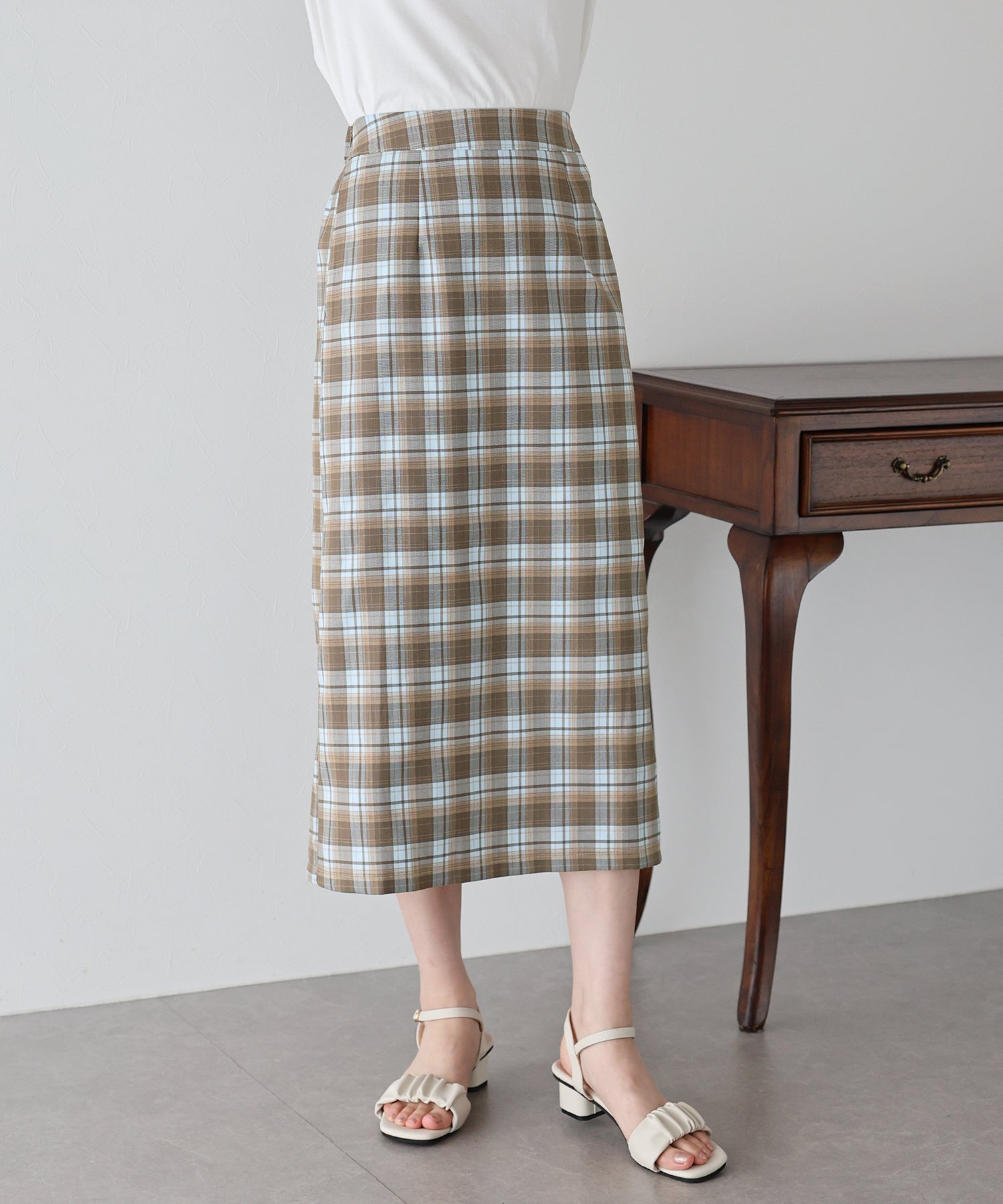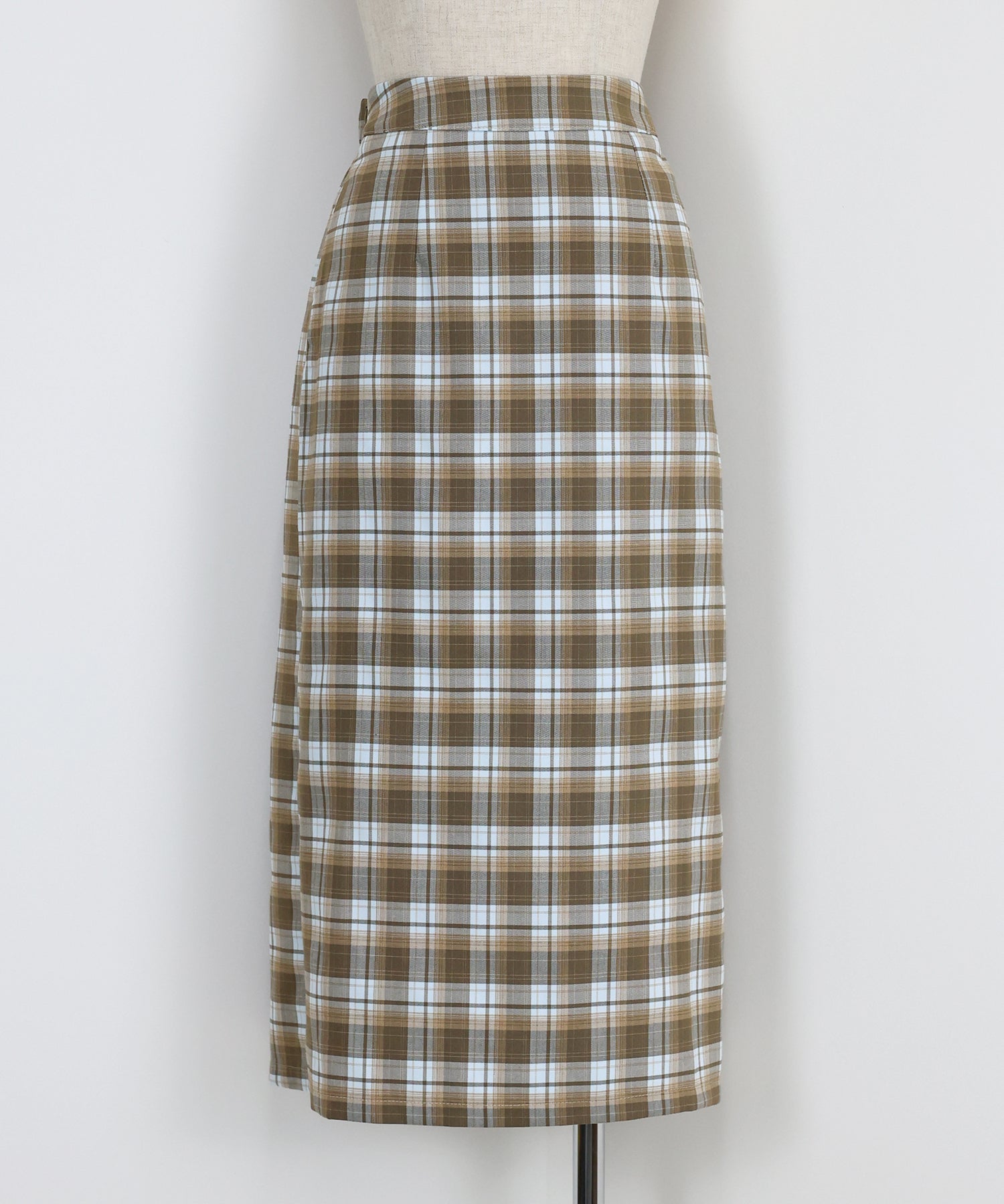 すっきりとしたIラインのチェック柄スカート