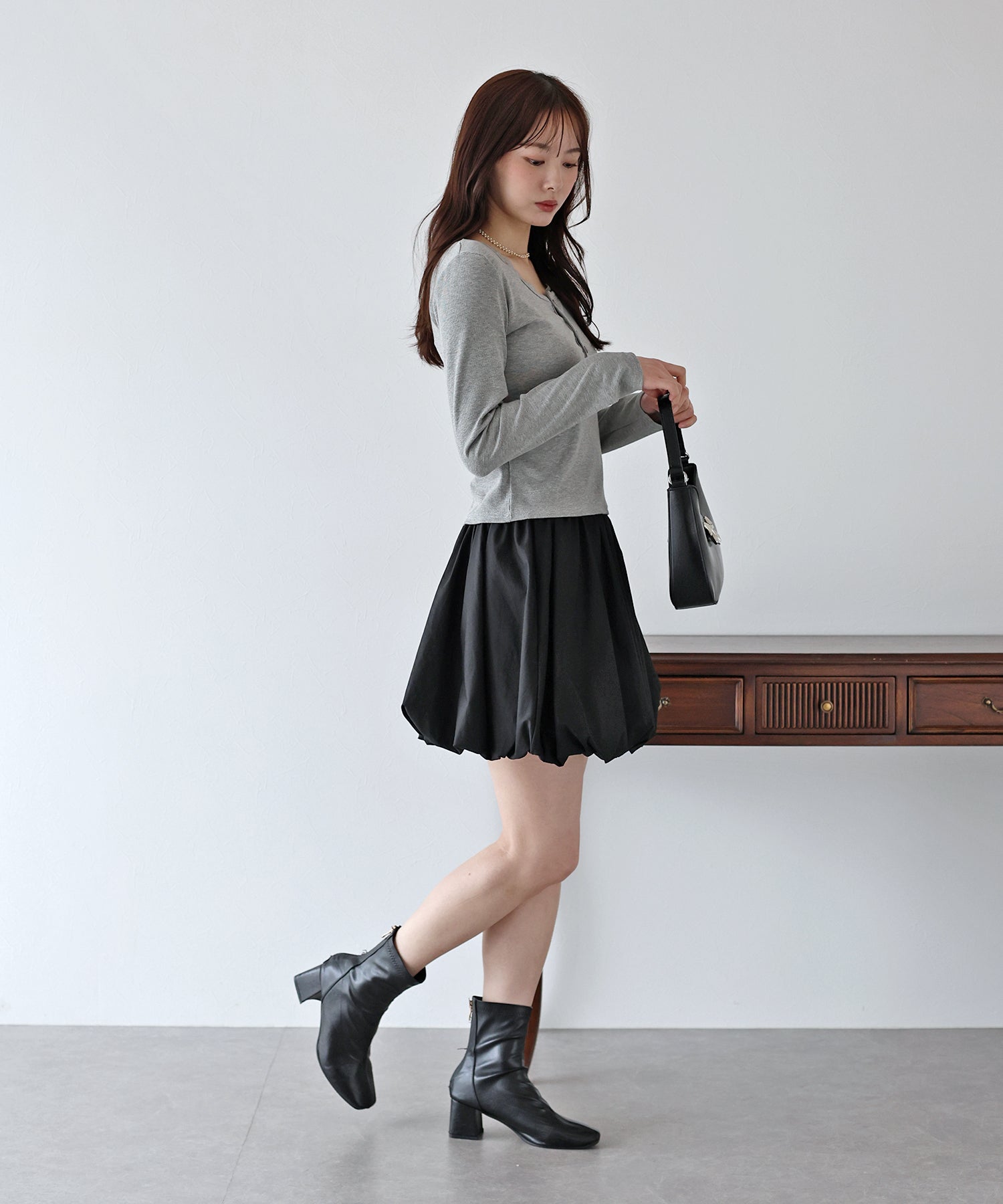 ?STYLING シンプルな色味なので幅広いトップスとも相性抜群。 スニーカーやロングブーツと合わせて、バレエコアルック風に演出するのも◎ パンツを合わせて、トップスの裾からちらっと見せるレイヤードアイテムとしても使えます。 オーバーサイズのスウェットやクロップド丈のトップスと合わせるだけで韓国コーデが完成します。