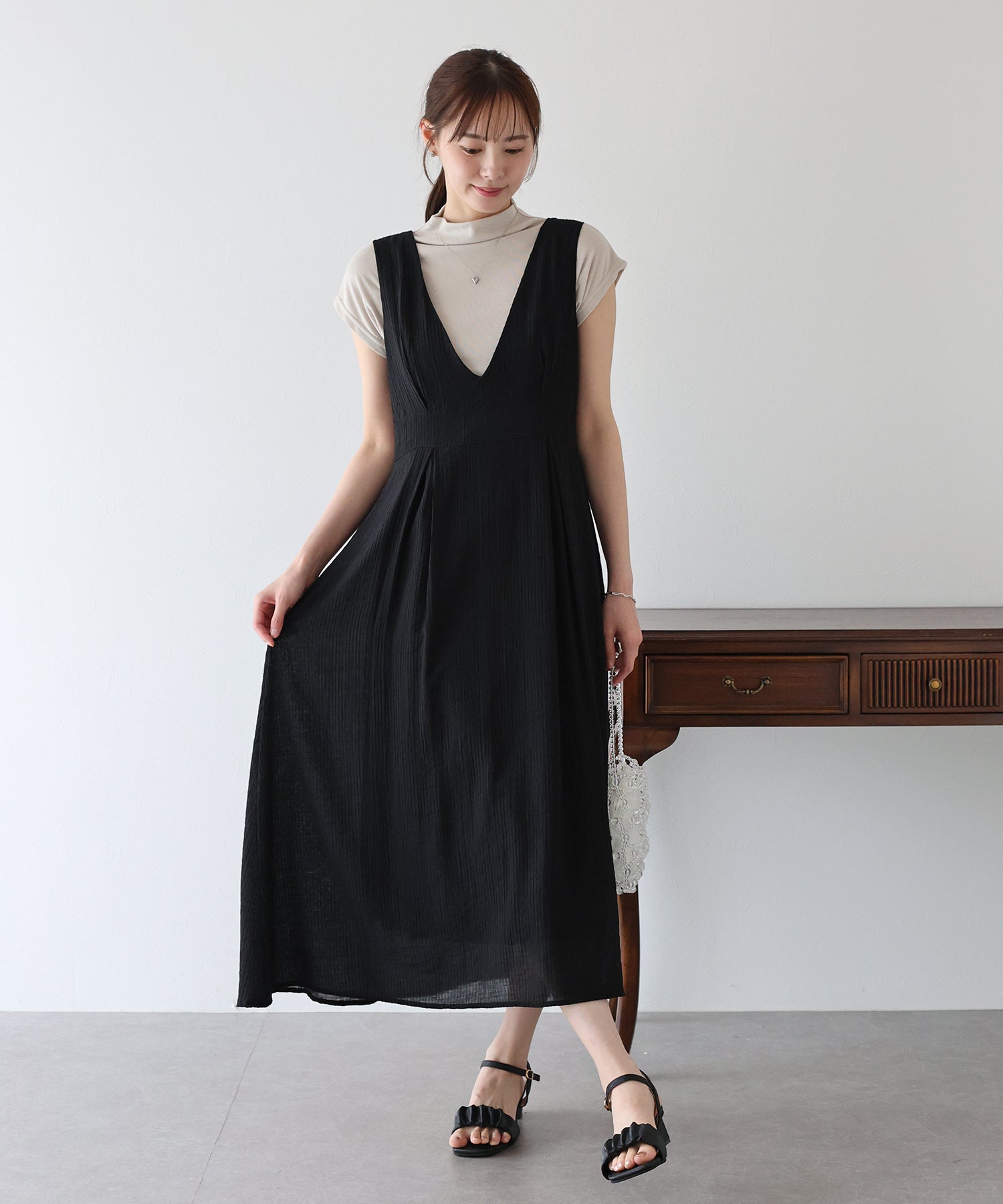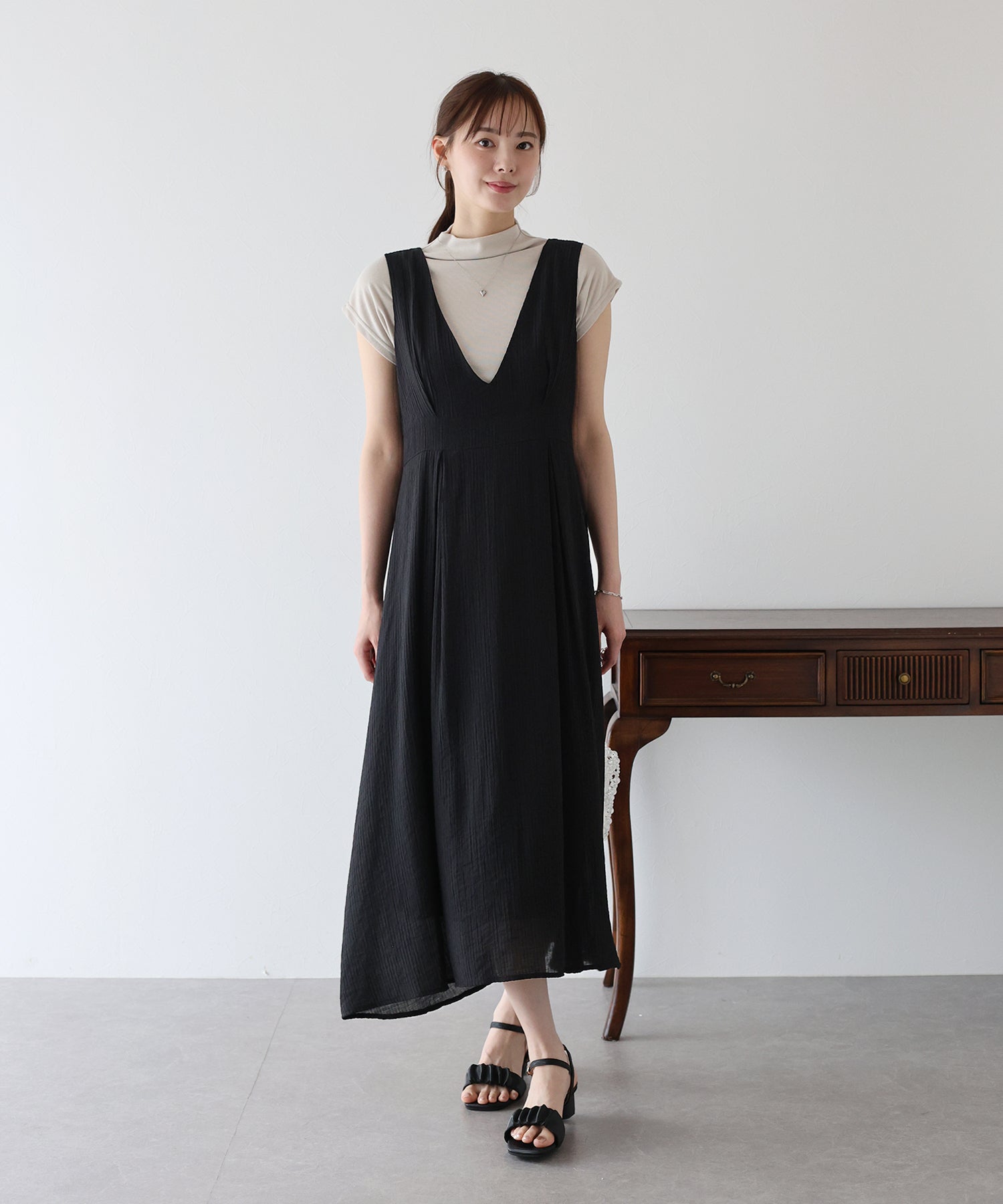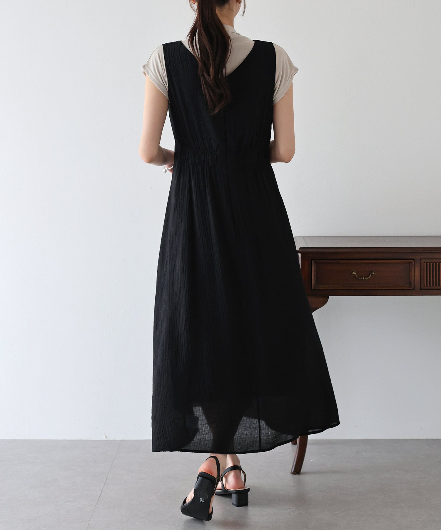 - 【SALE】異素材切替ティアードワンピース