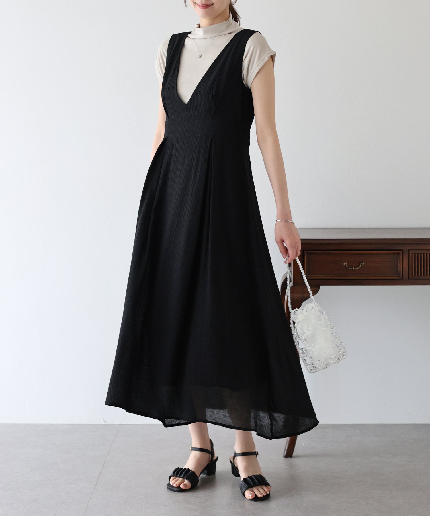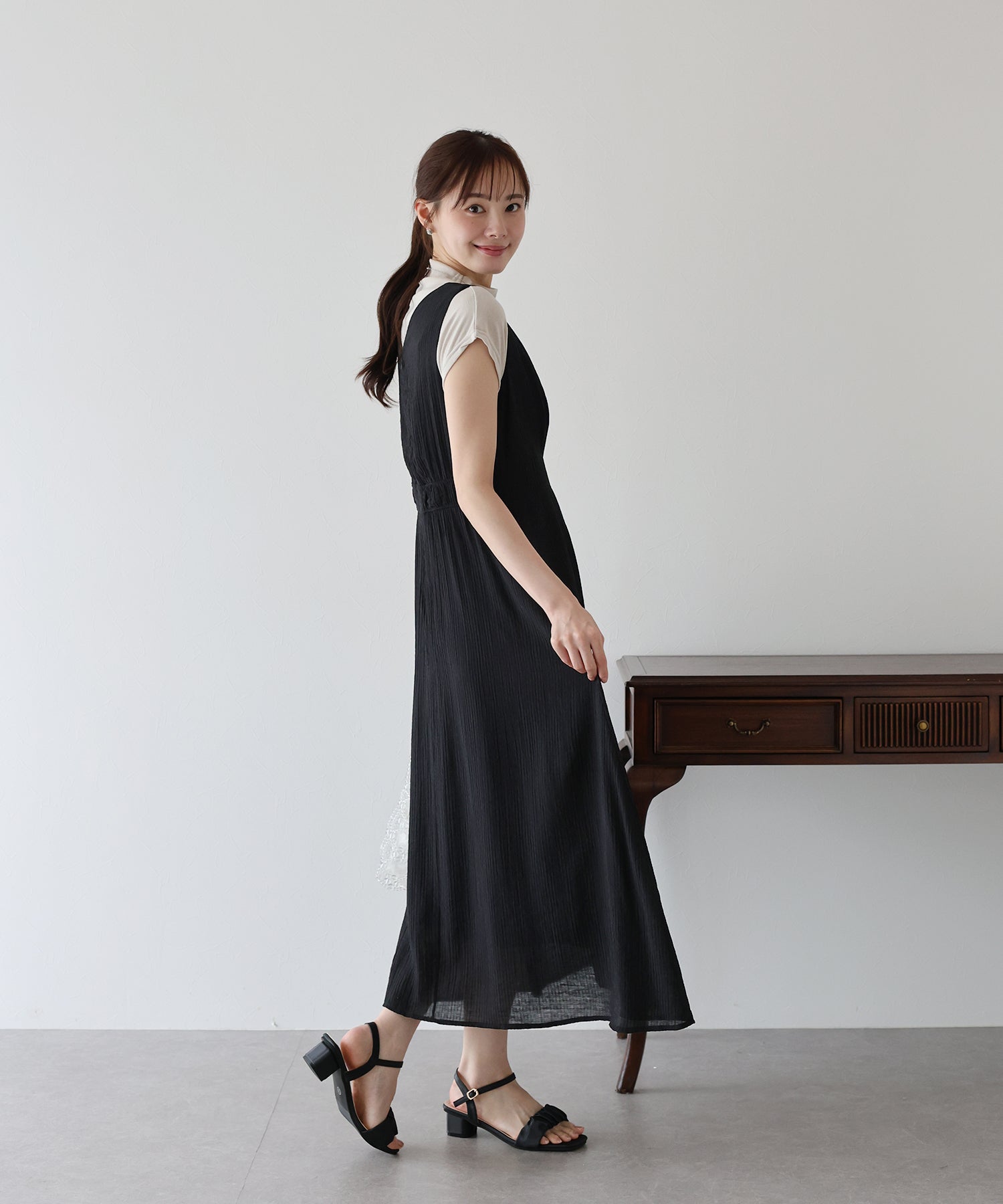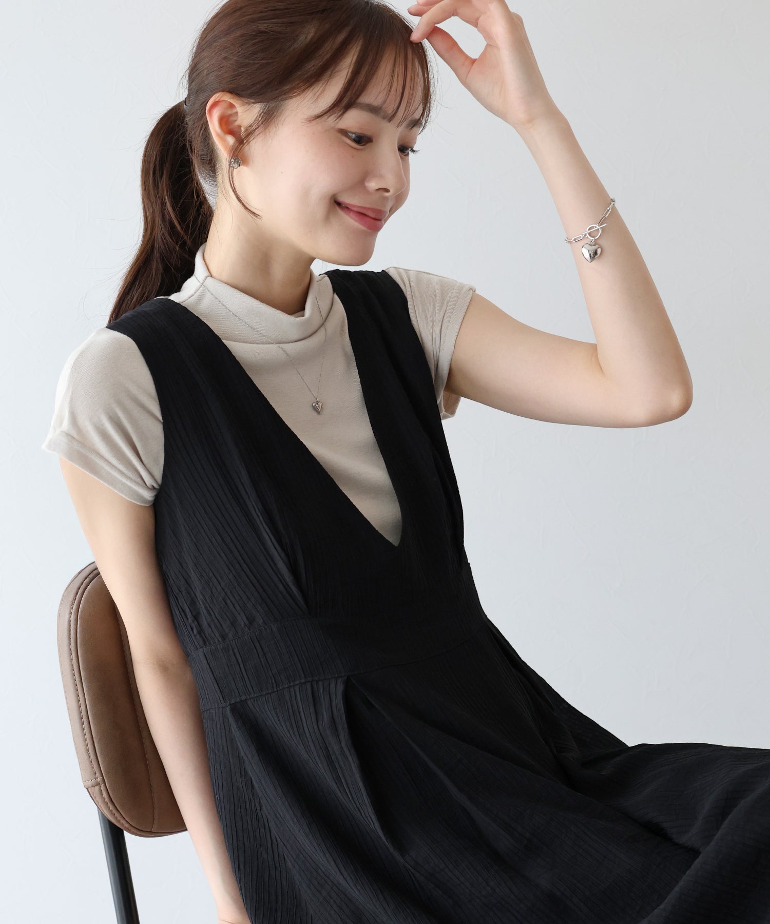 - 【SALE】異素材切替ティアードワンピース