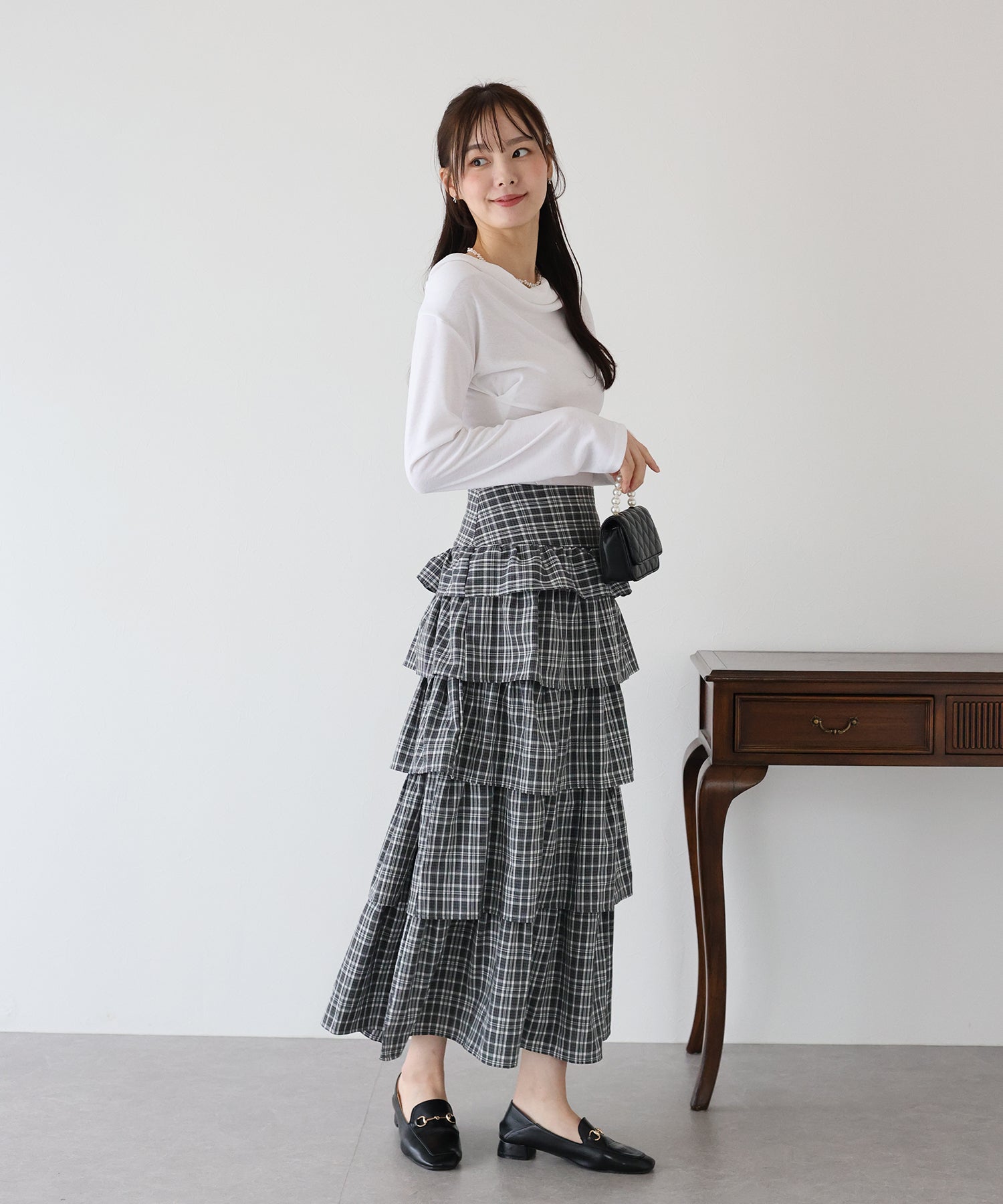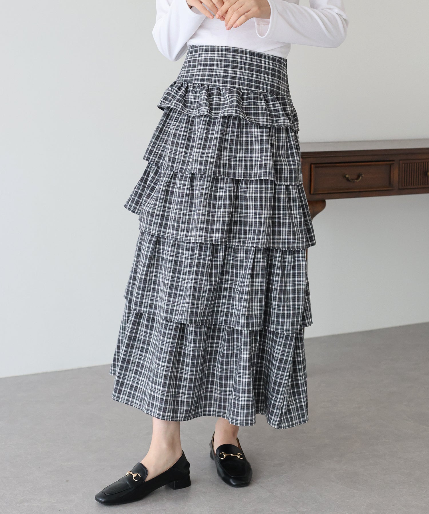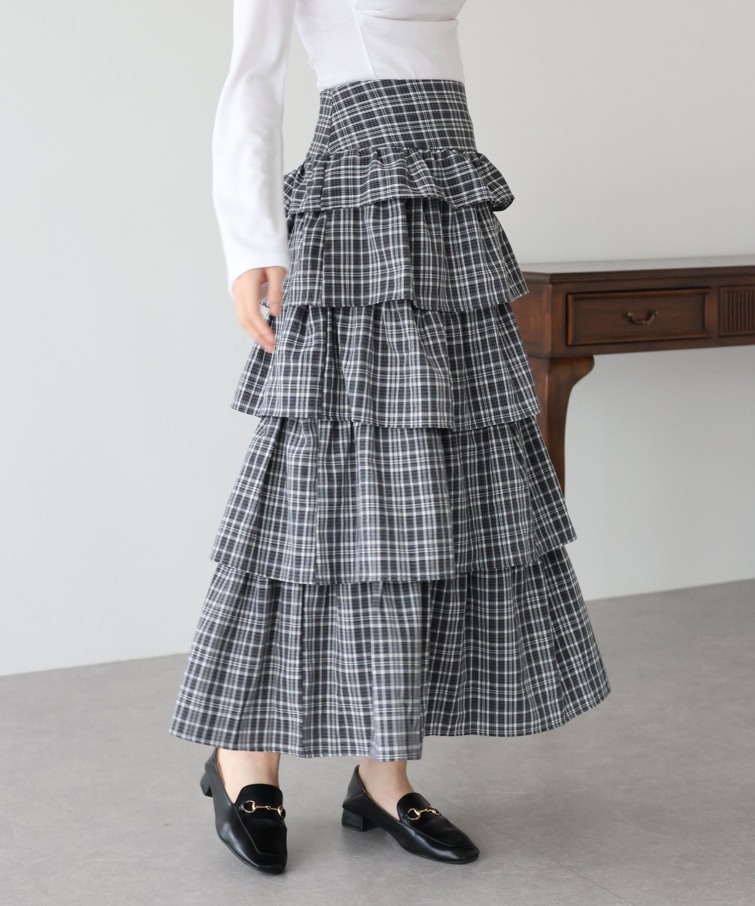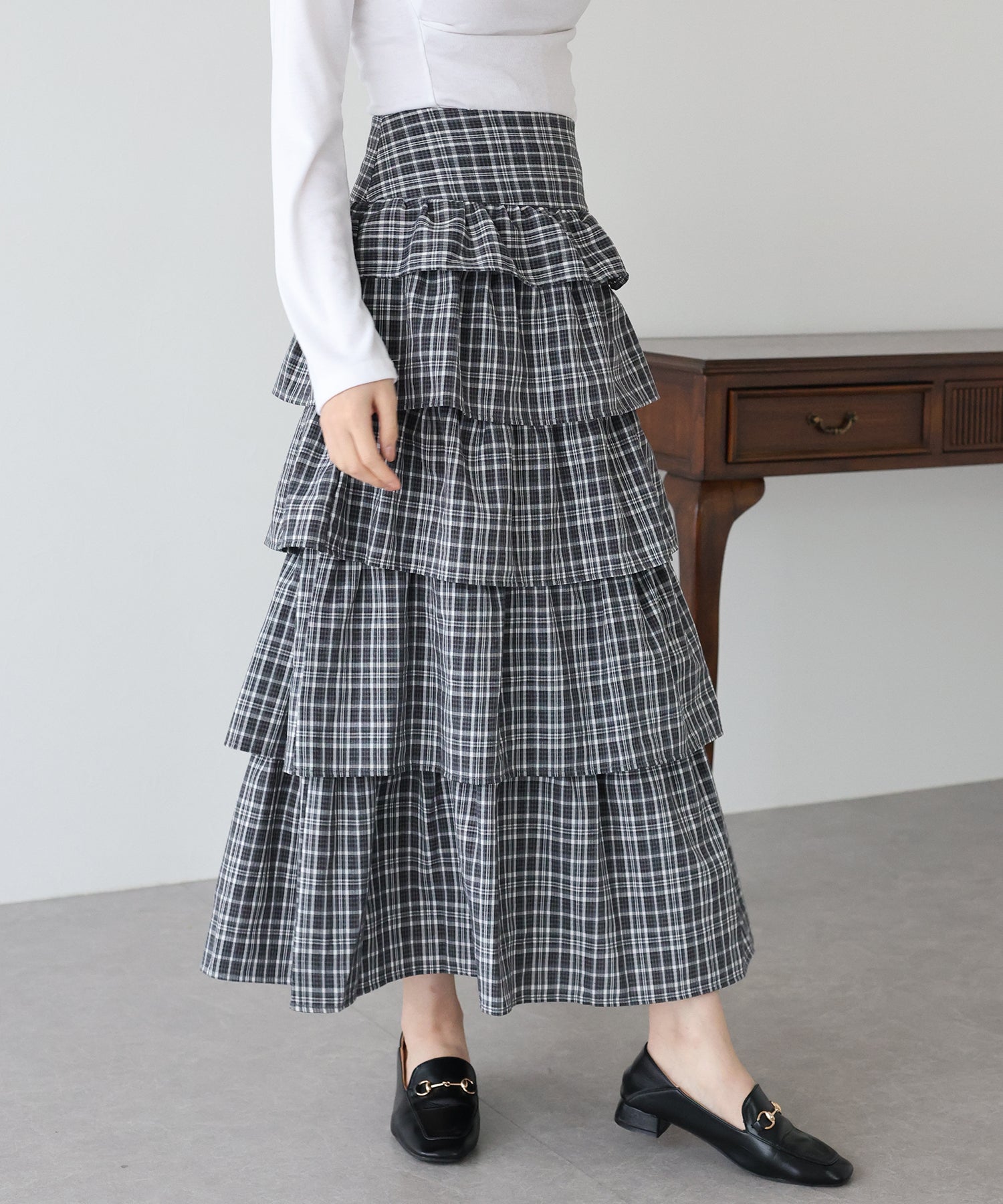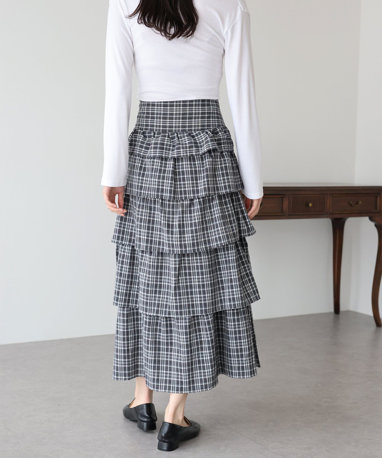 ふんわりと広がるボリューム感が特徴のチェックティアードスカート