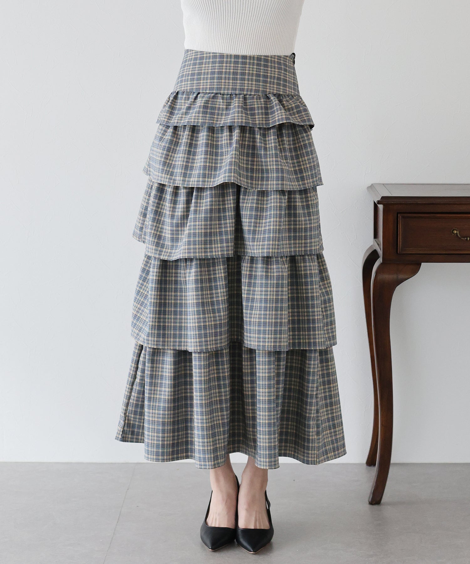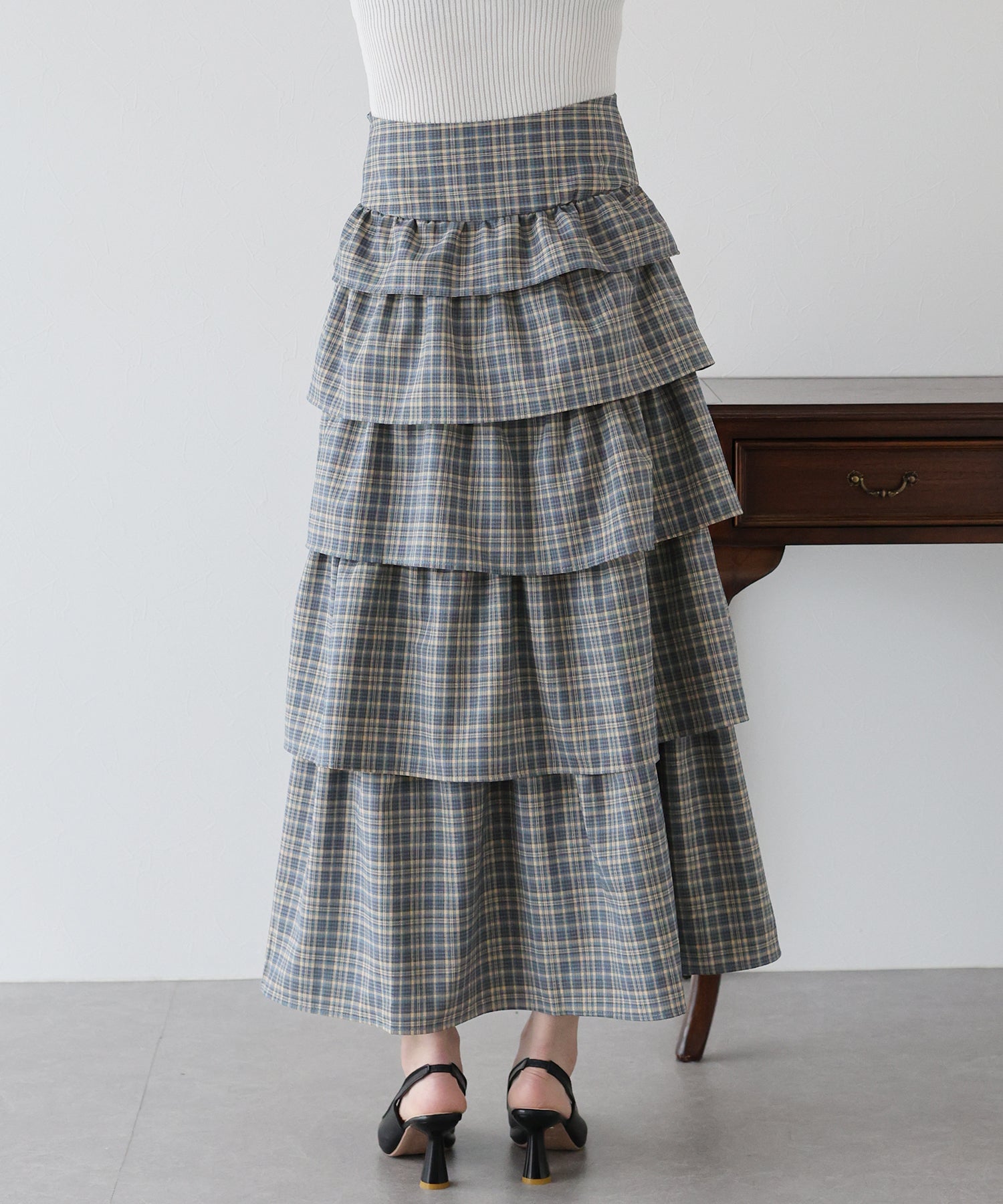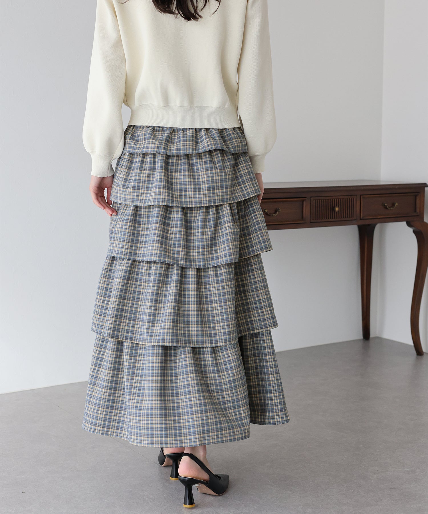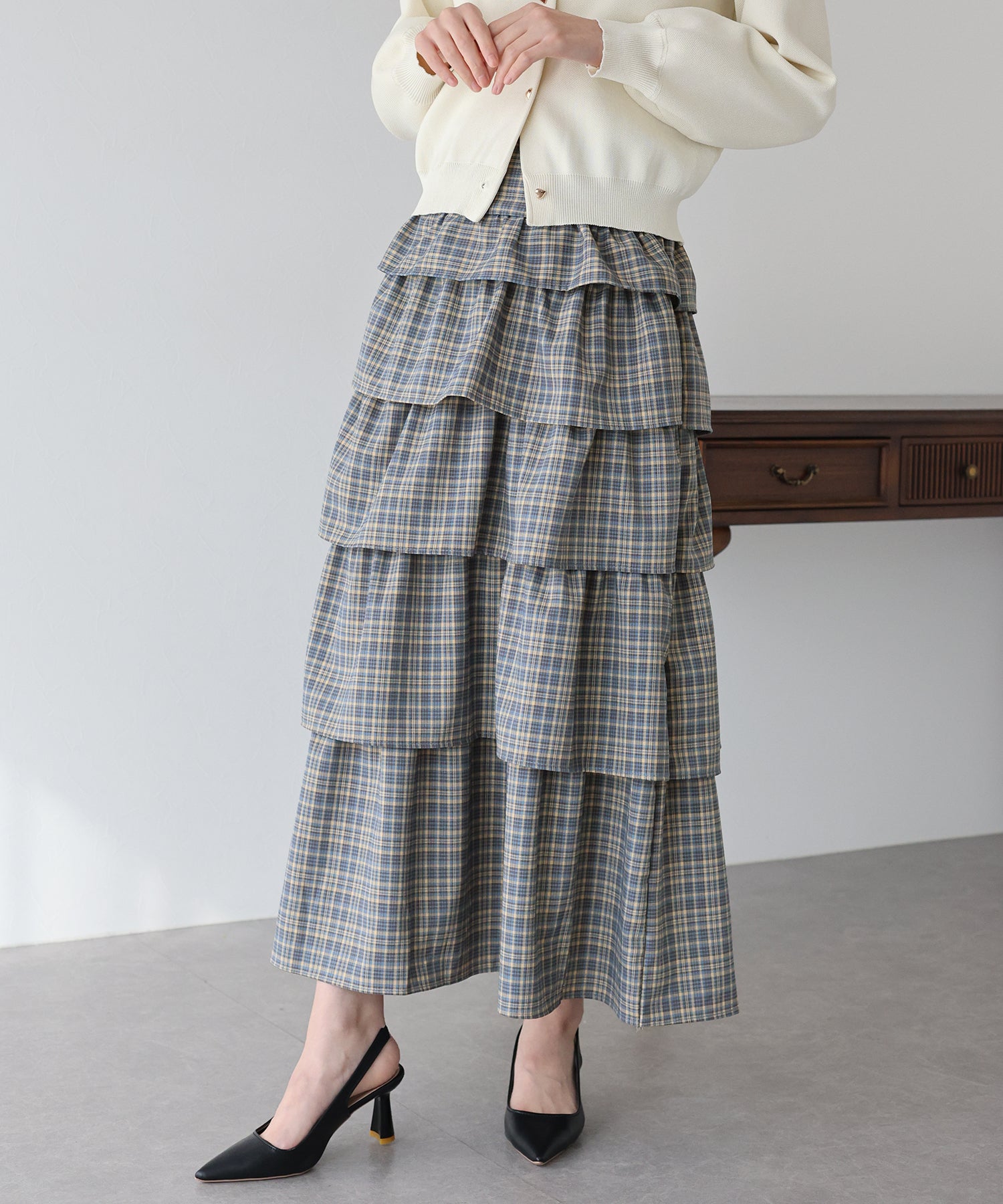 ふんわりと広がるボリューム感が特徴のチェックティアードスカート