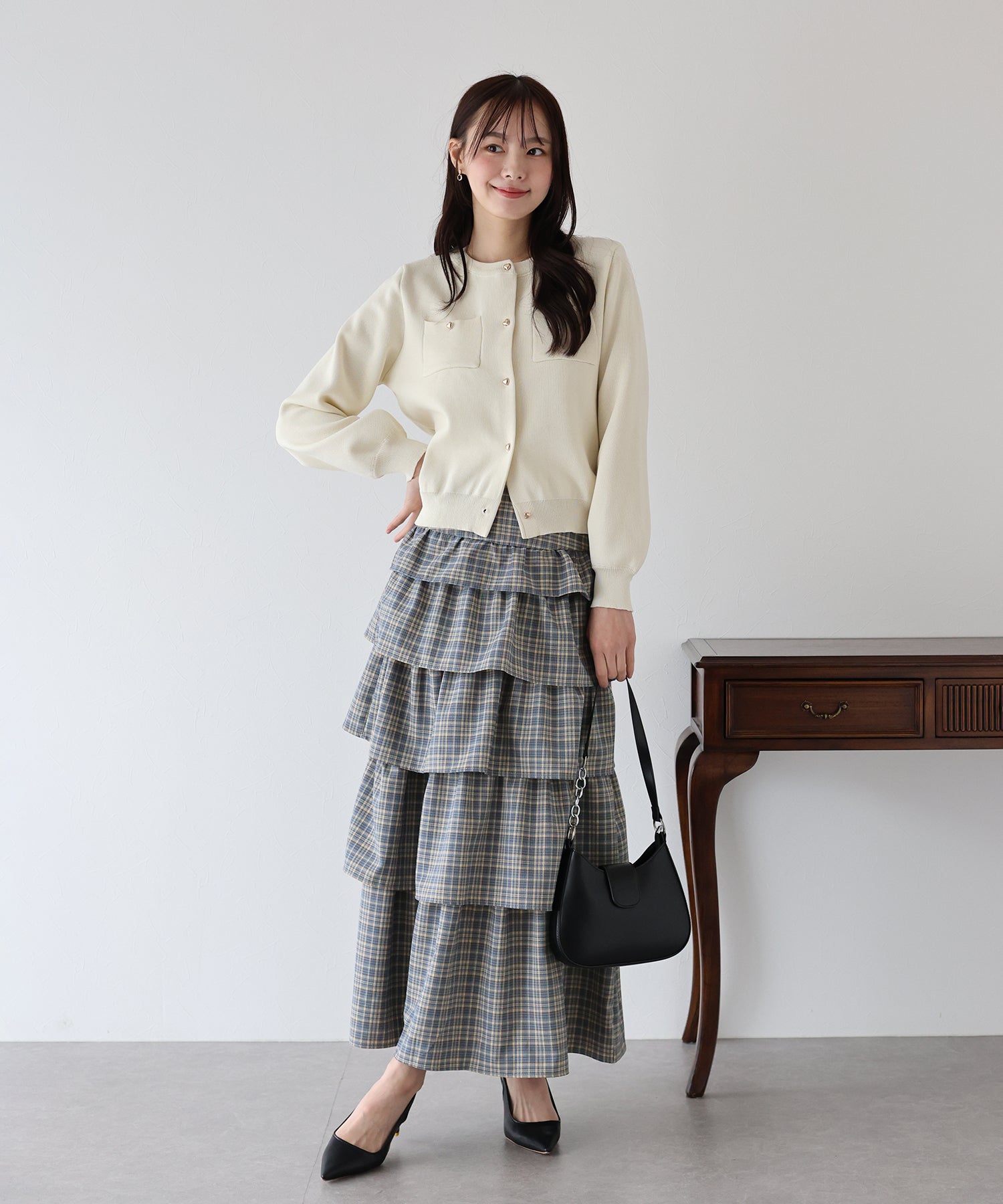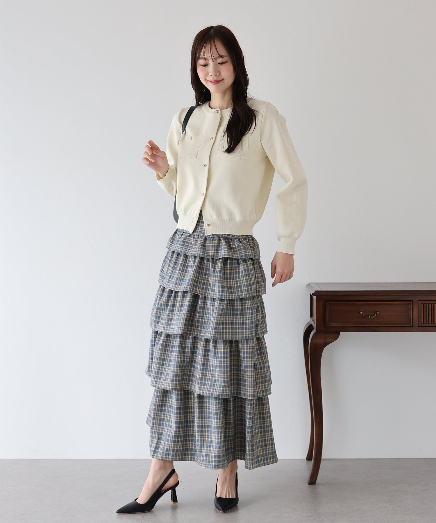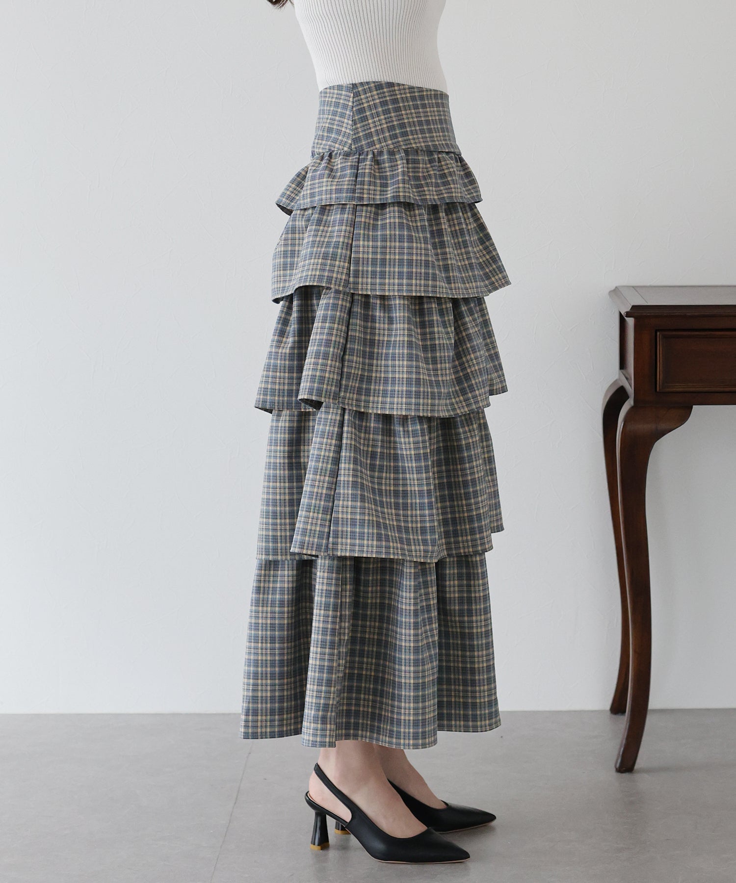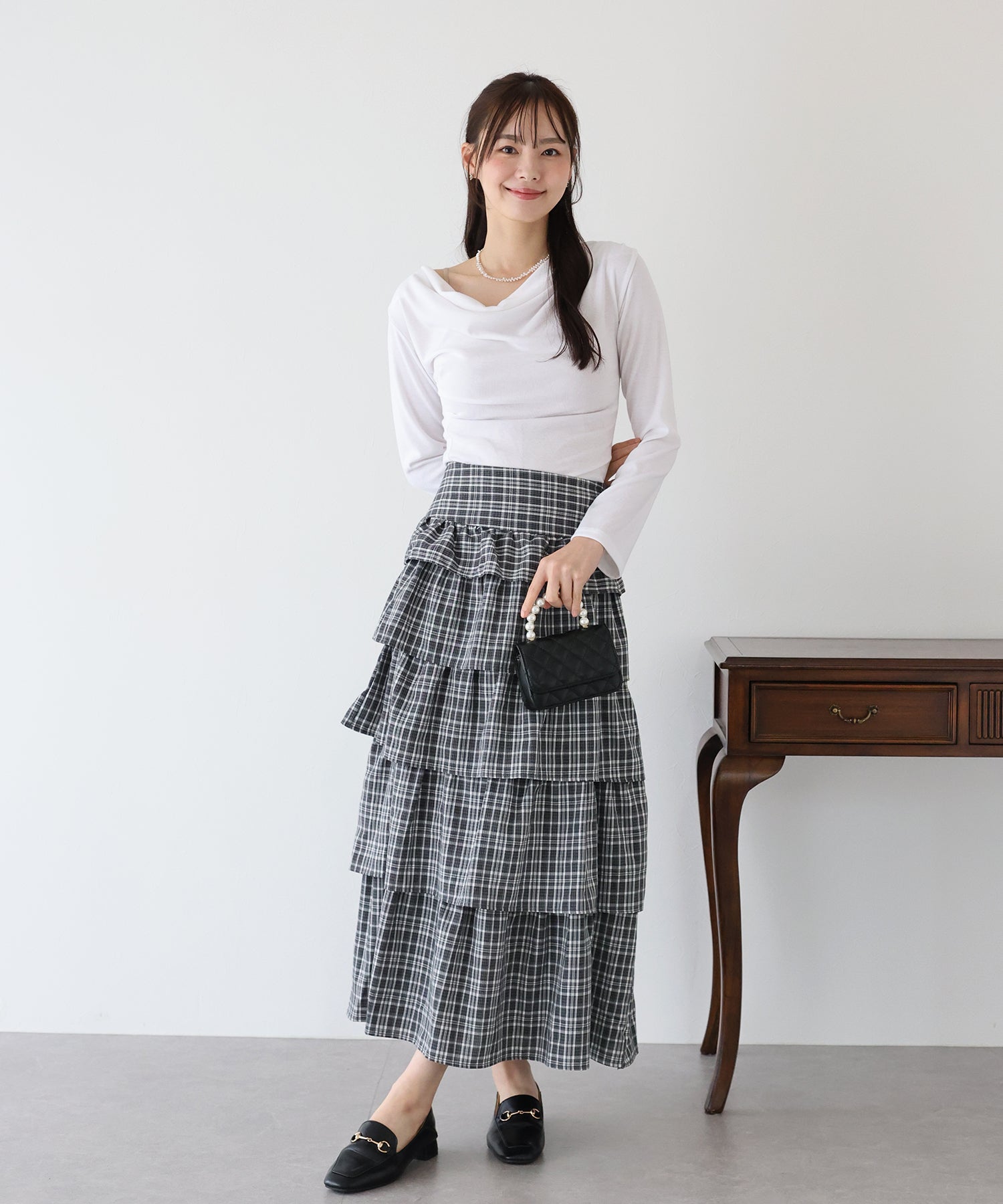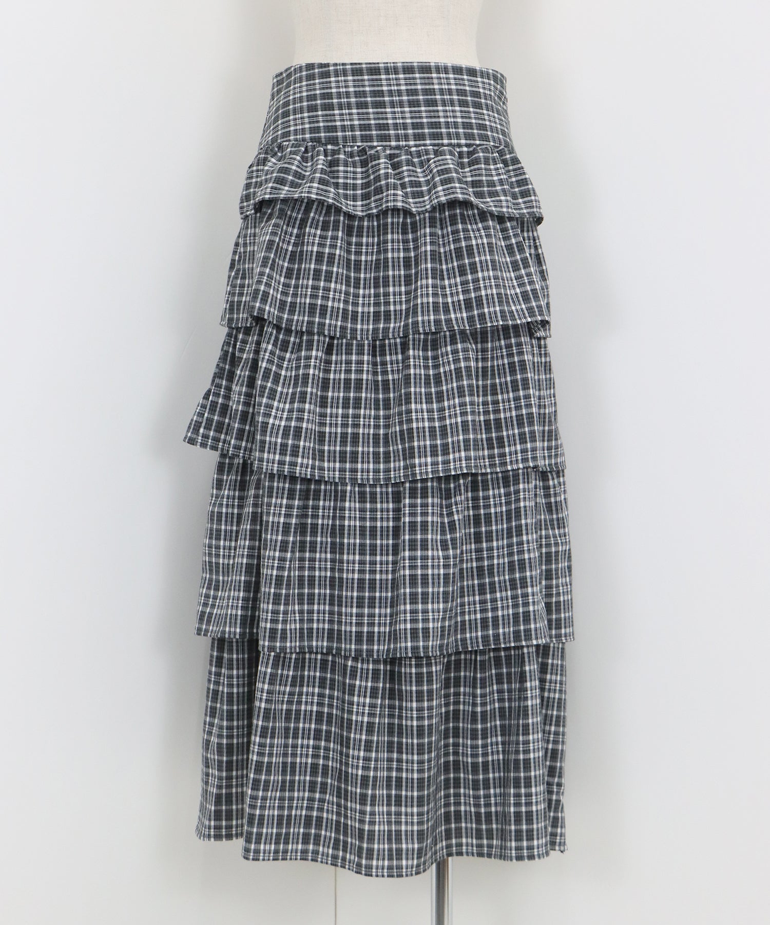 ふんわりと広がるボリューム感が特徴のチェックティアードスカート