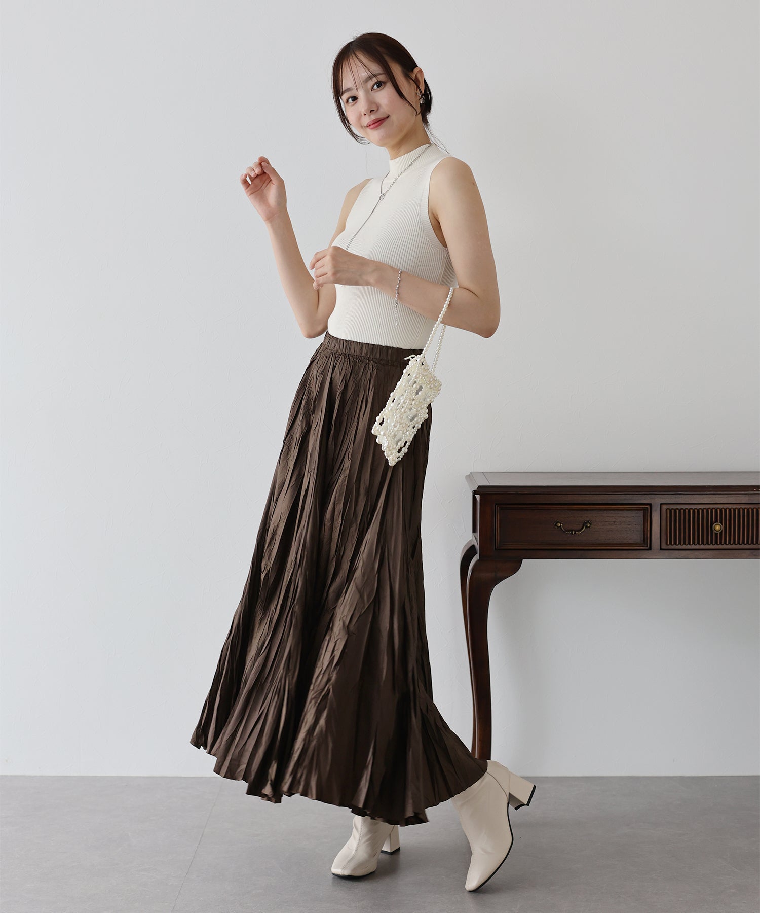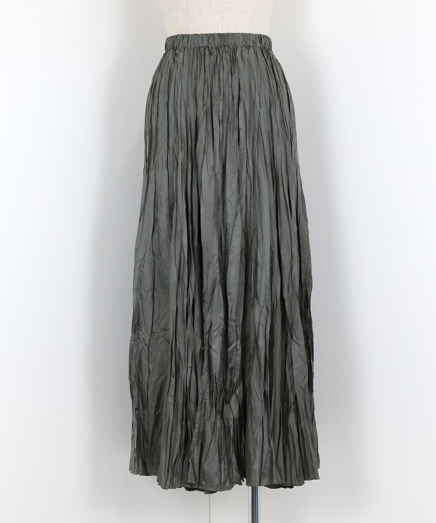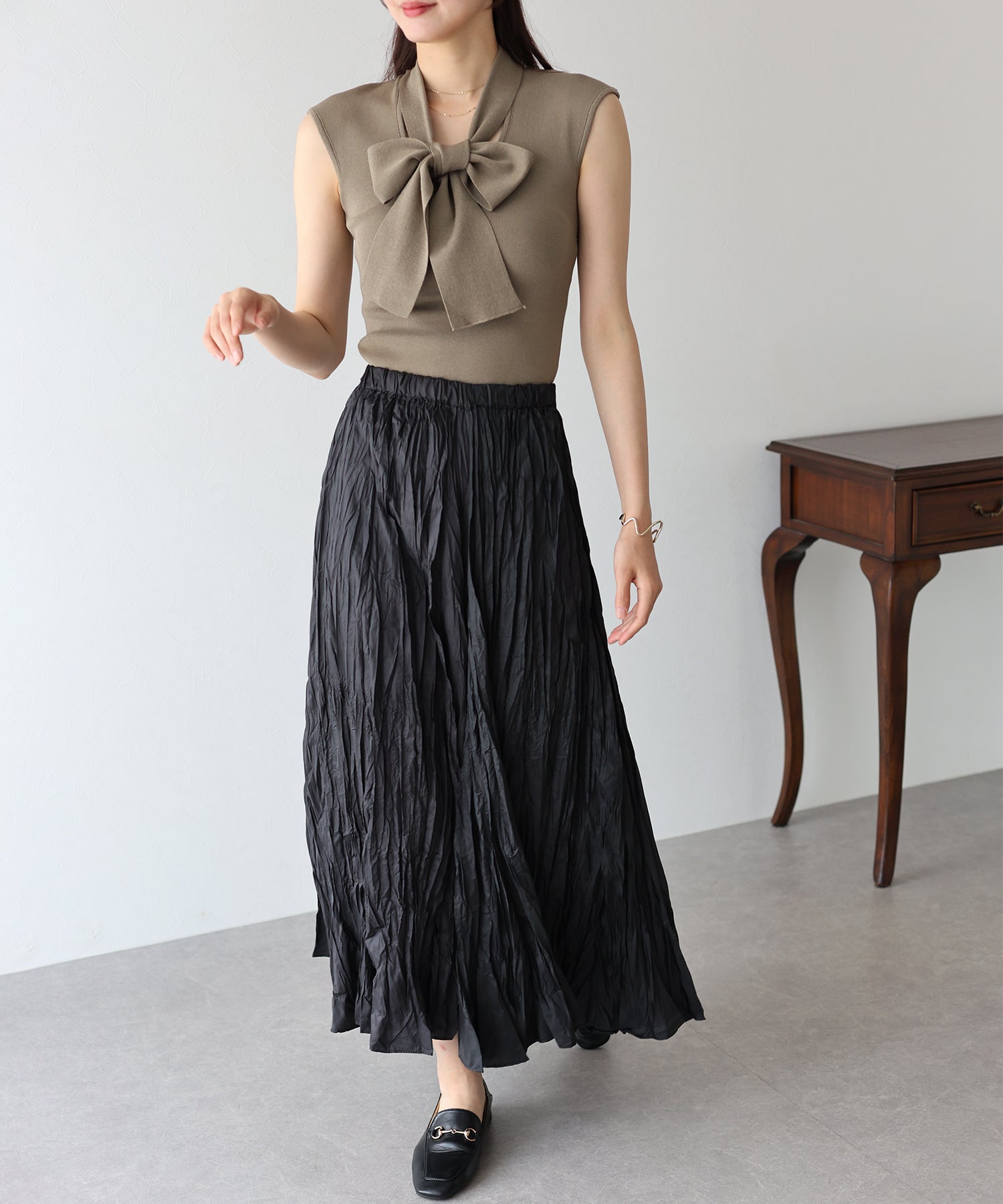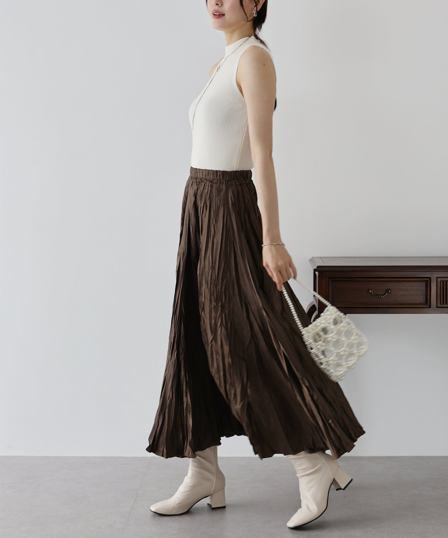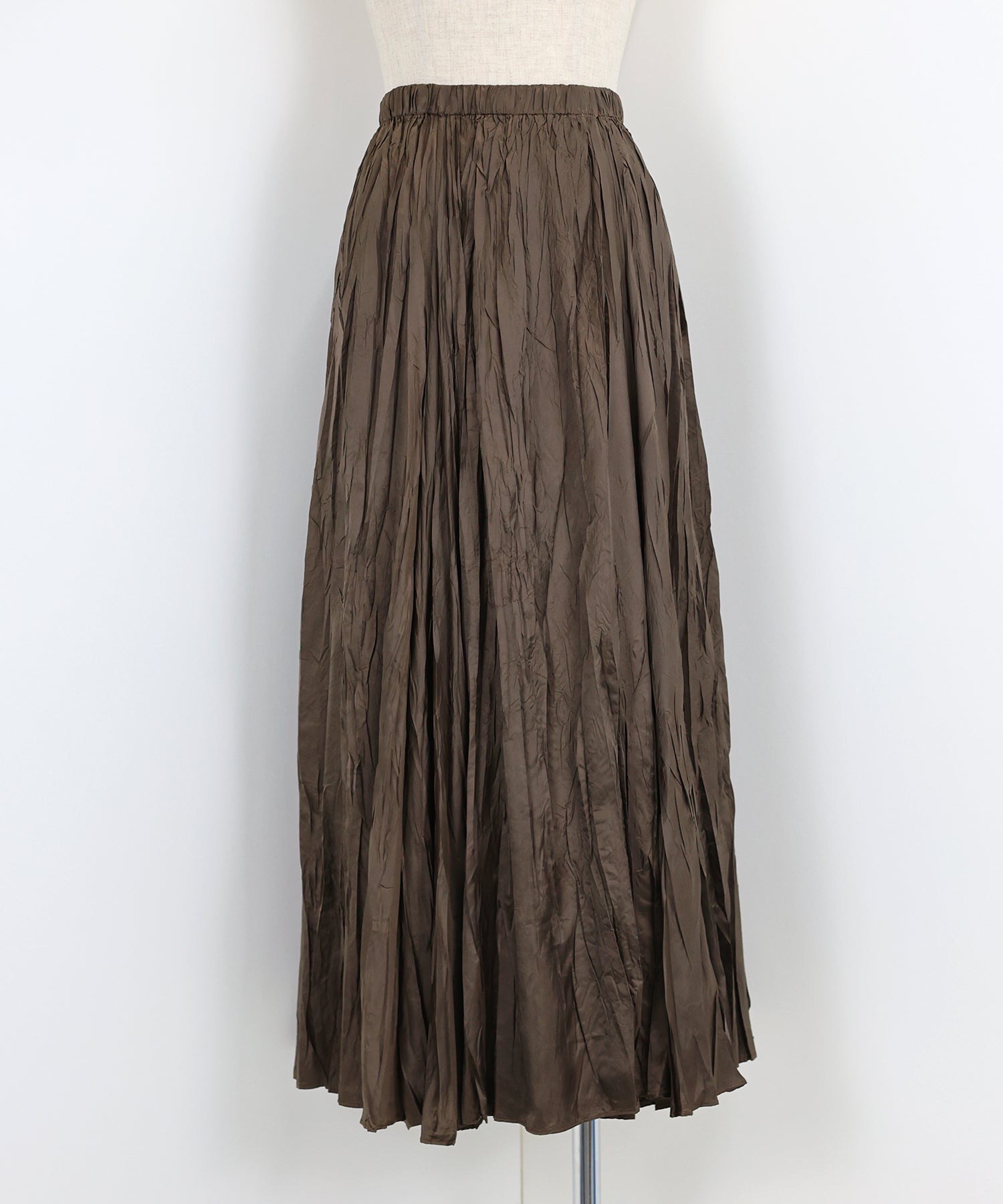 ふんわりと揺れるシワ加工されたプリーツで女性らしい雰囲気とこなれ感を演出し、着るだけでオシャレなコーデが完成します。
