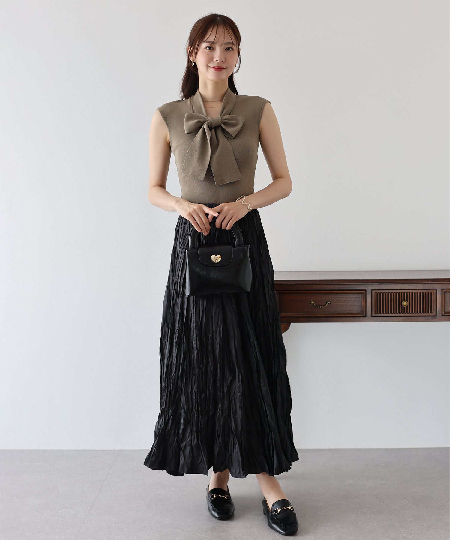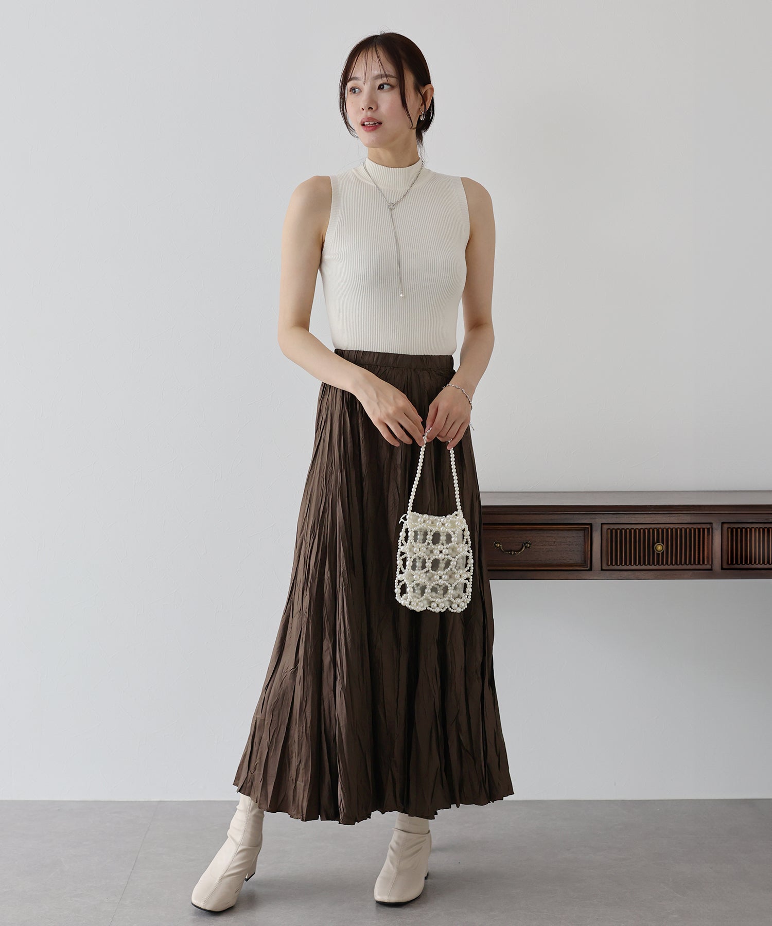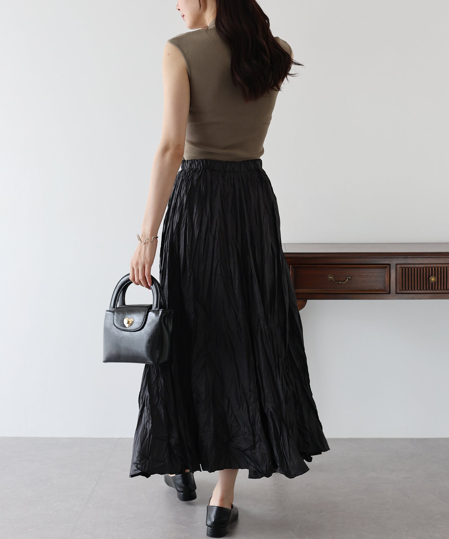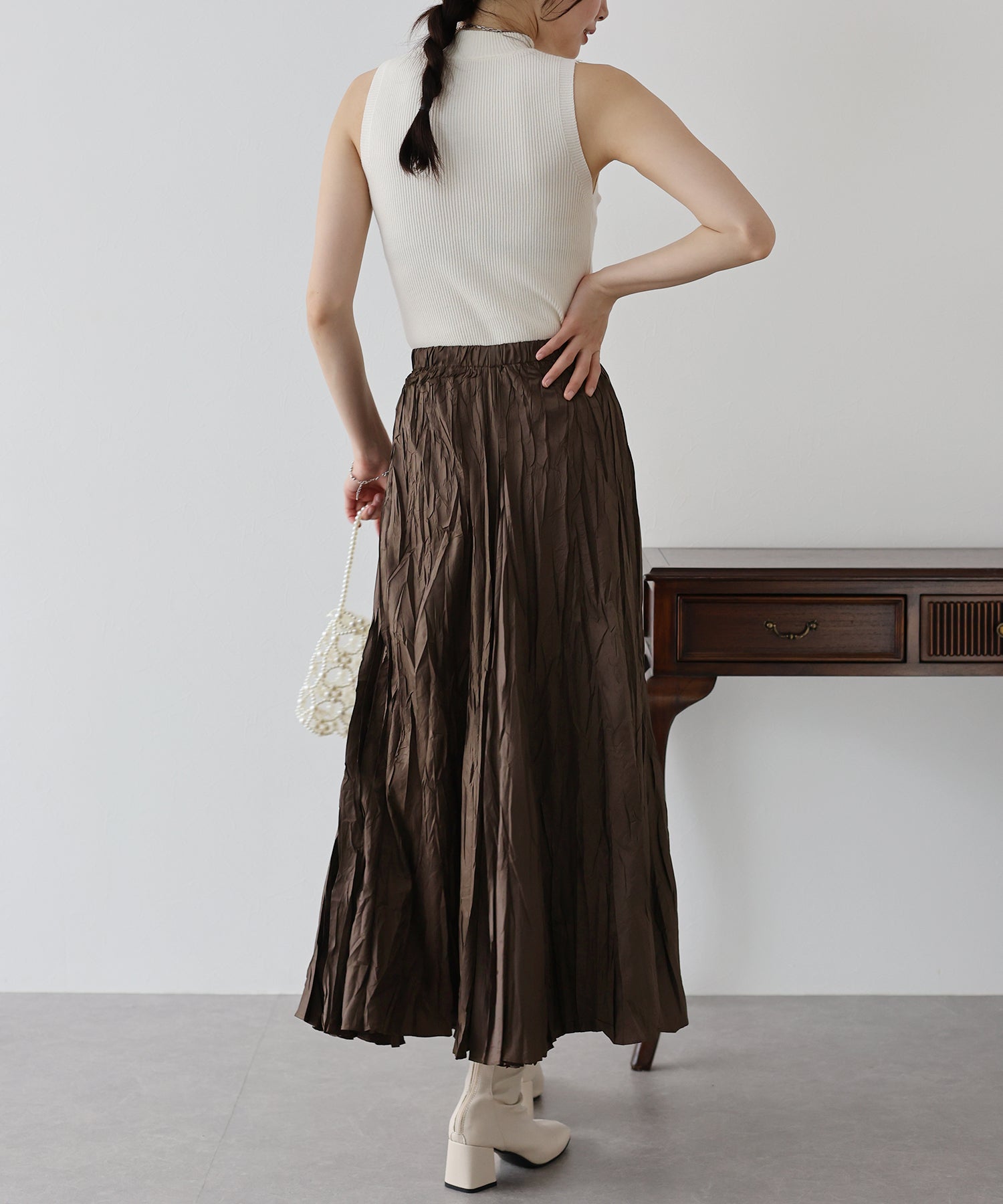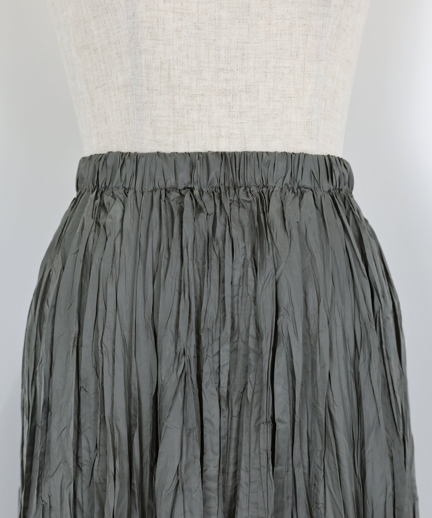 ふんわりと揺れるシワ加工されたプリーツで女性らしい雰囲気とこなれ感を演出し、着るだけでオシャレなコーデが完成します。