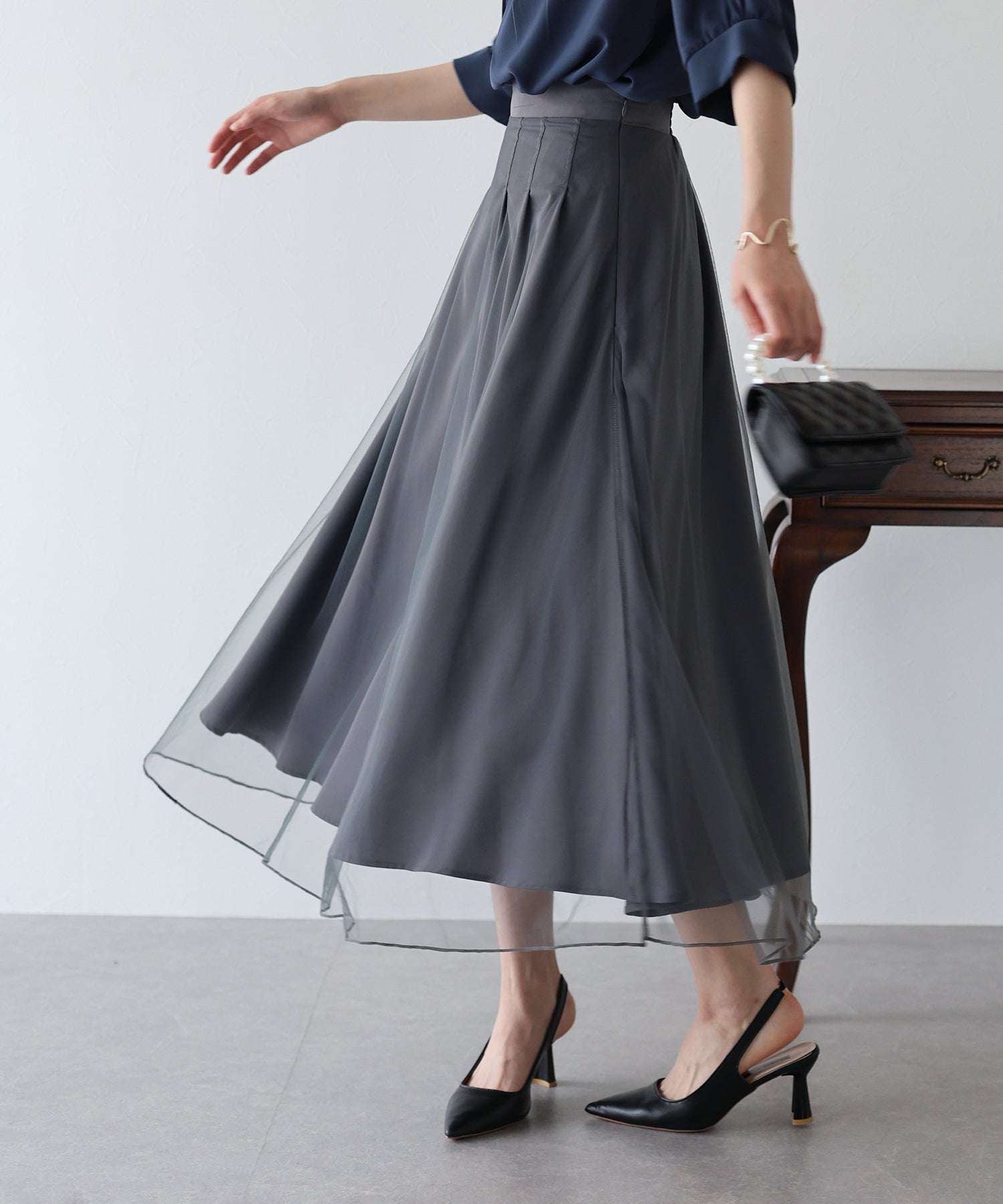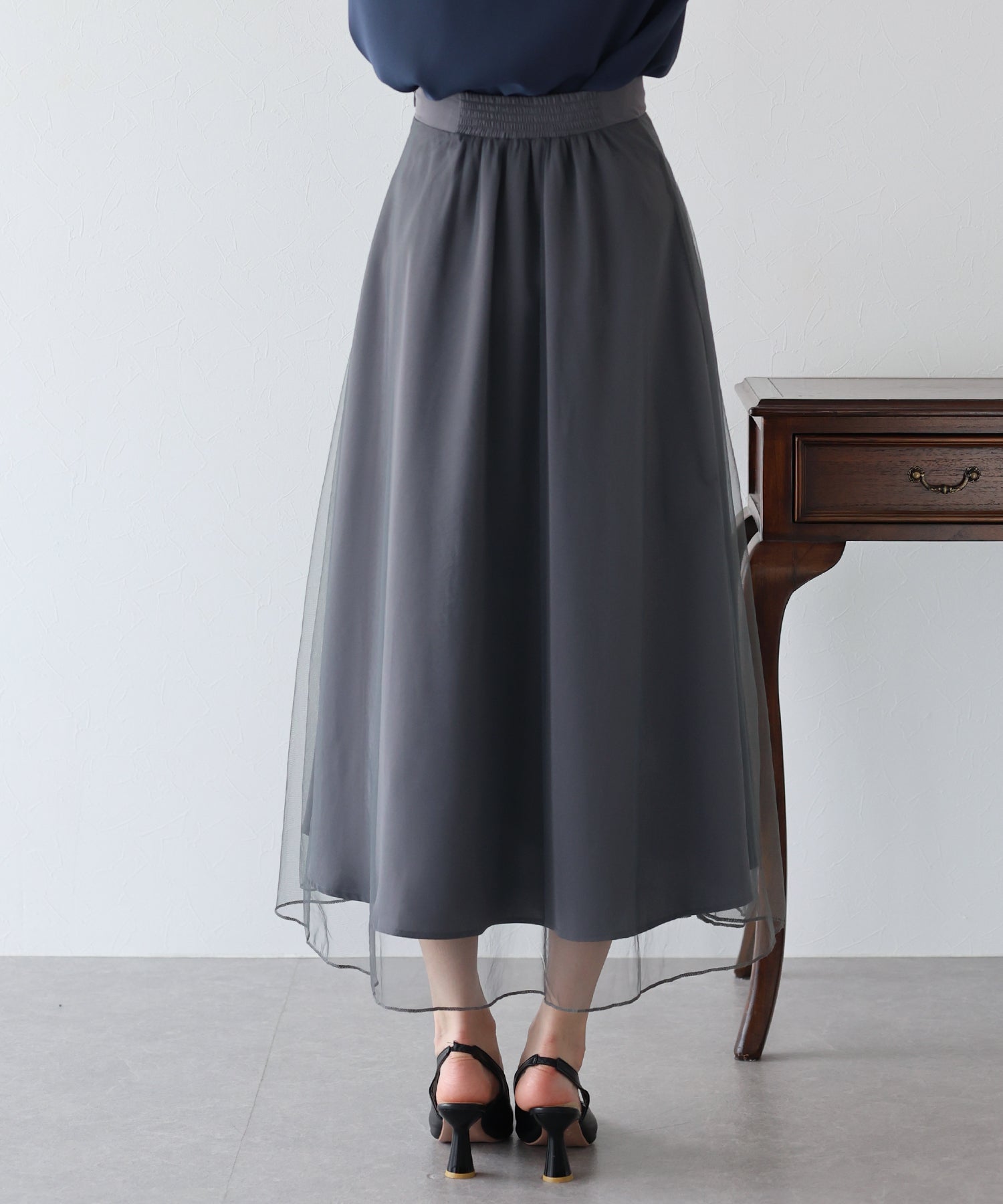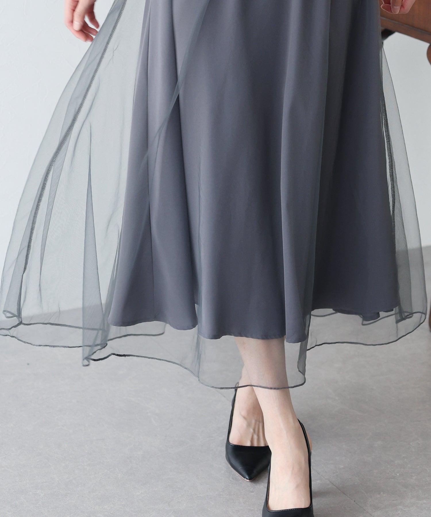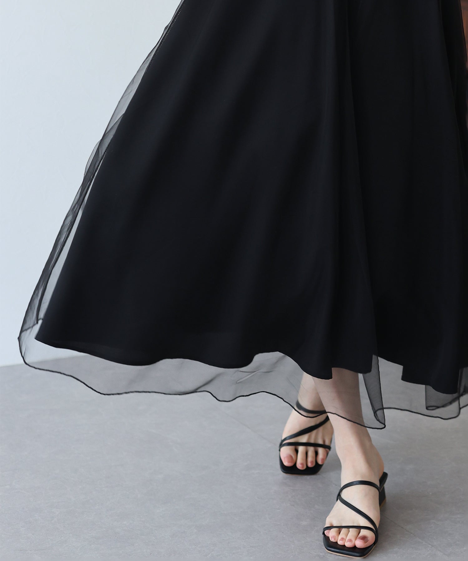 柔らかいチュールが歩くたびにフワッと揺れて足元を軽やかに見せてくれます。