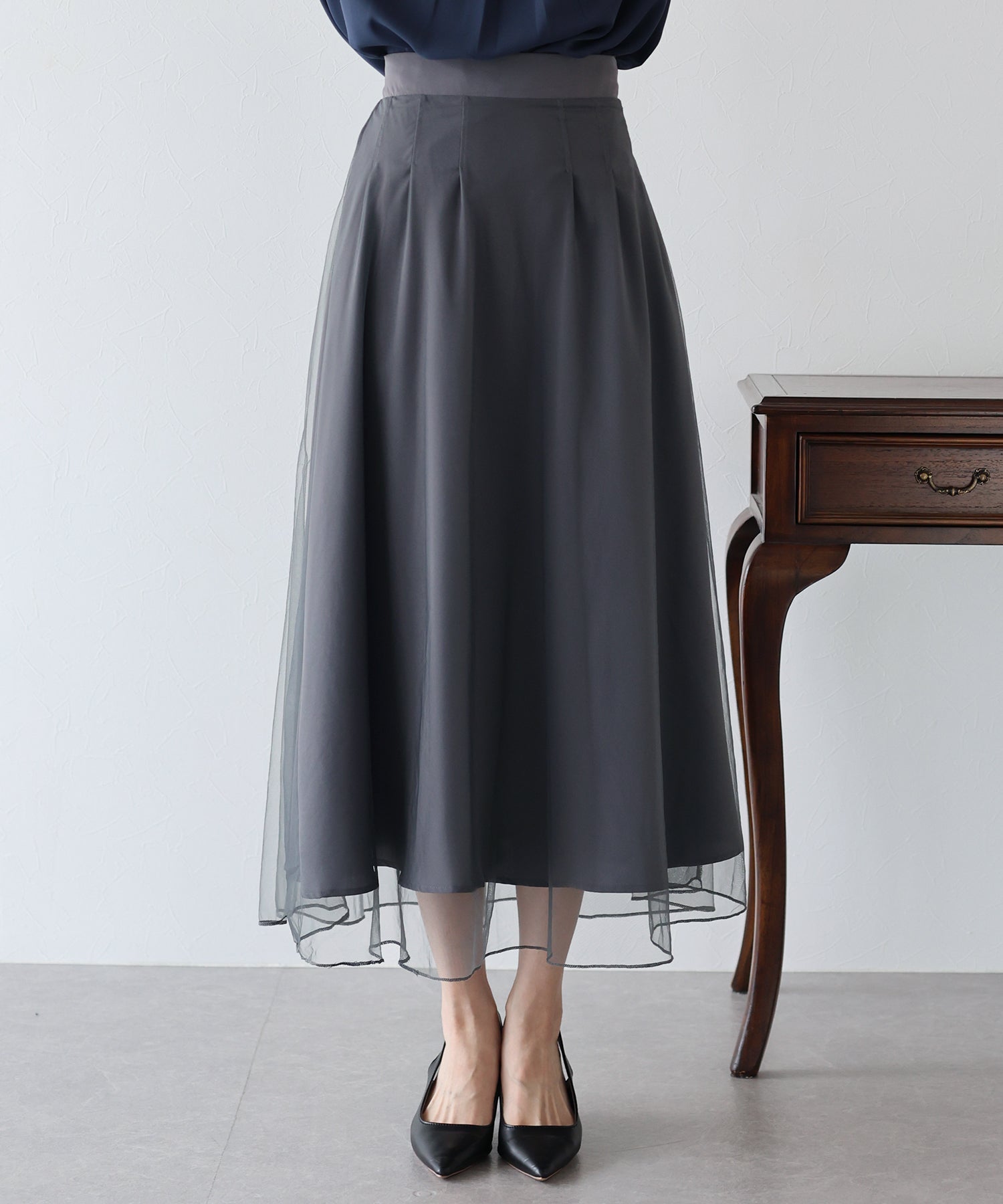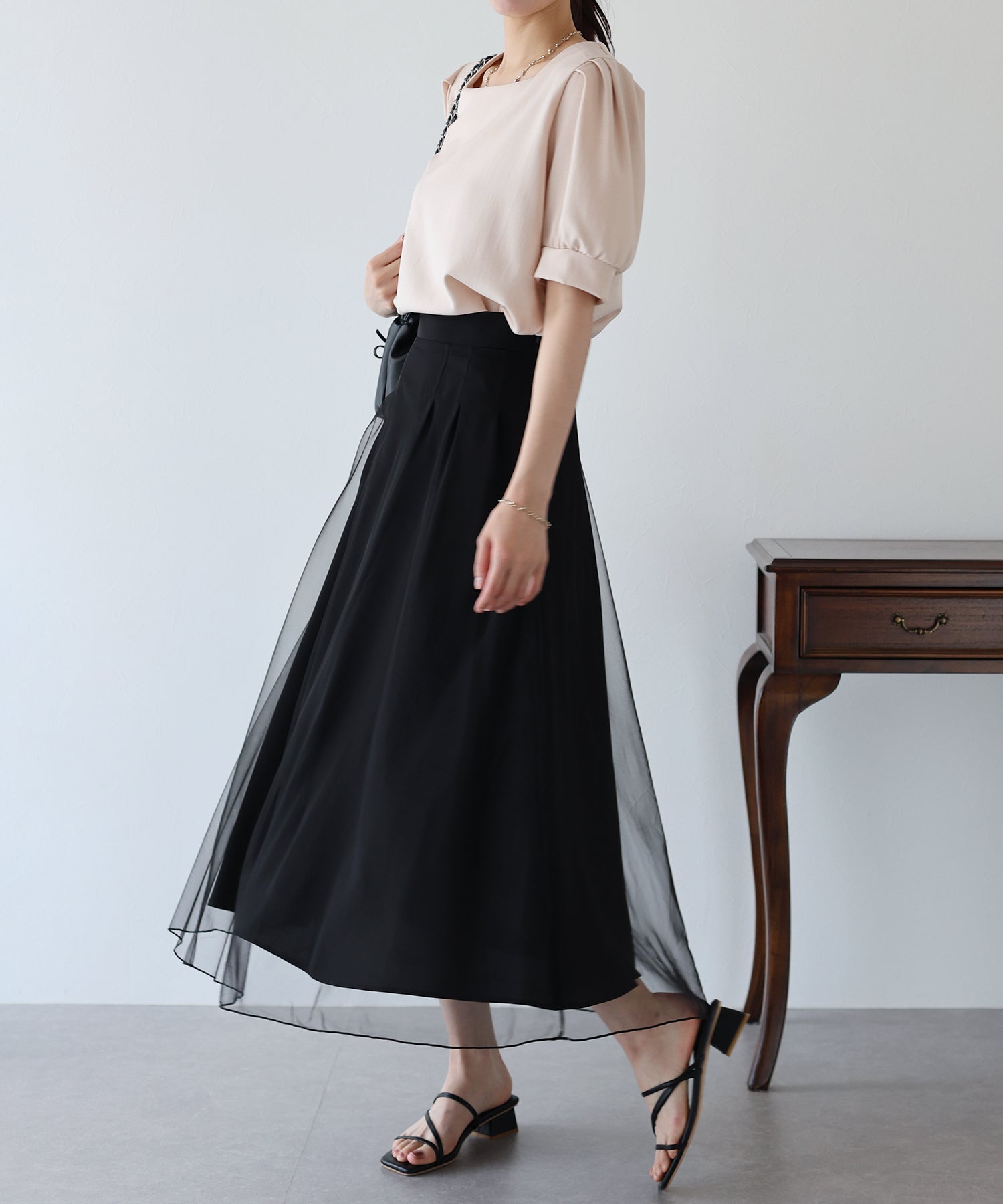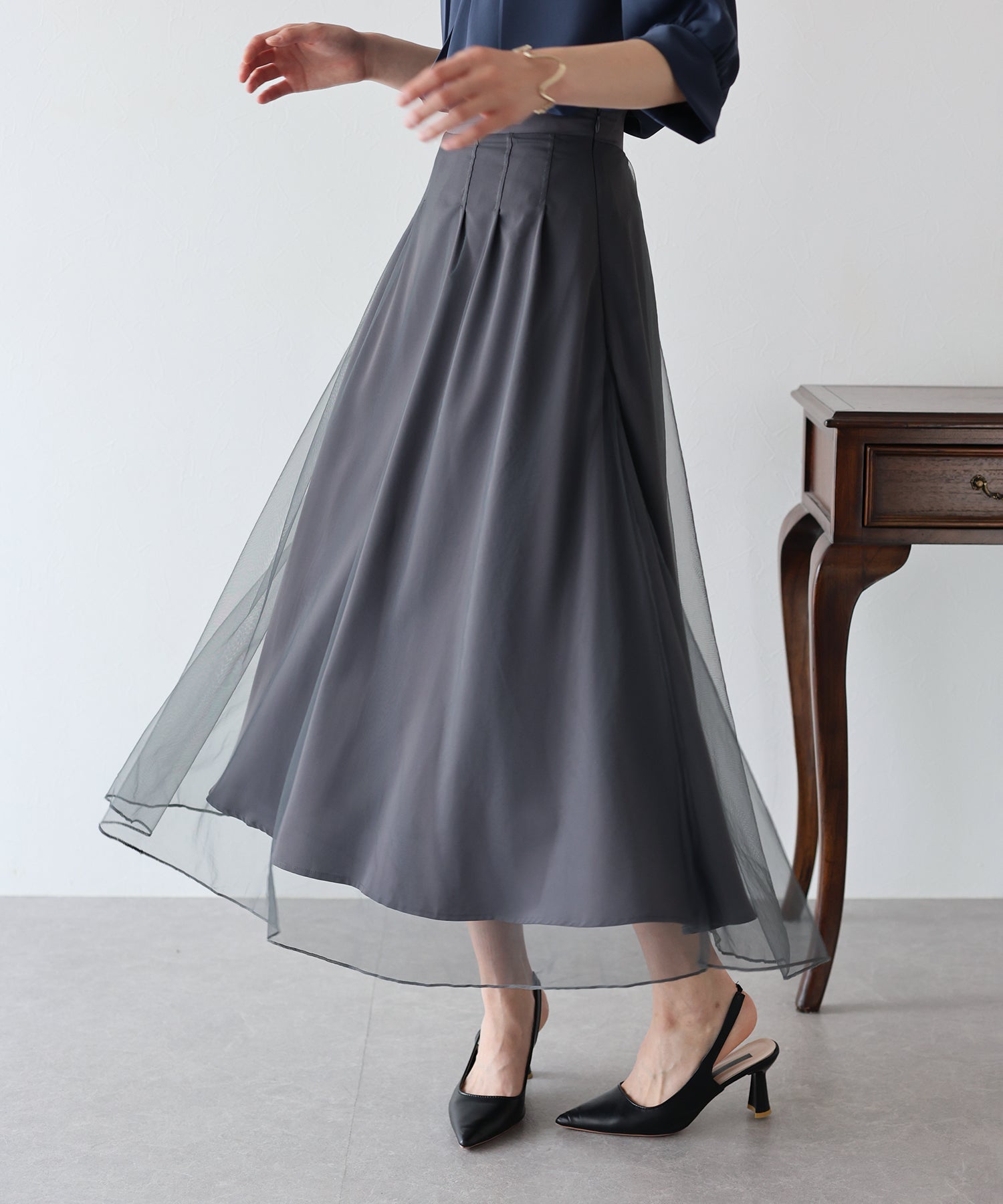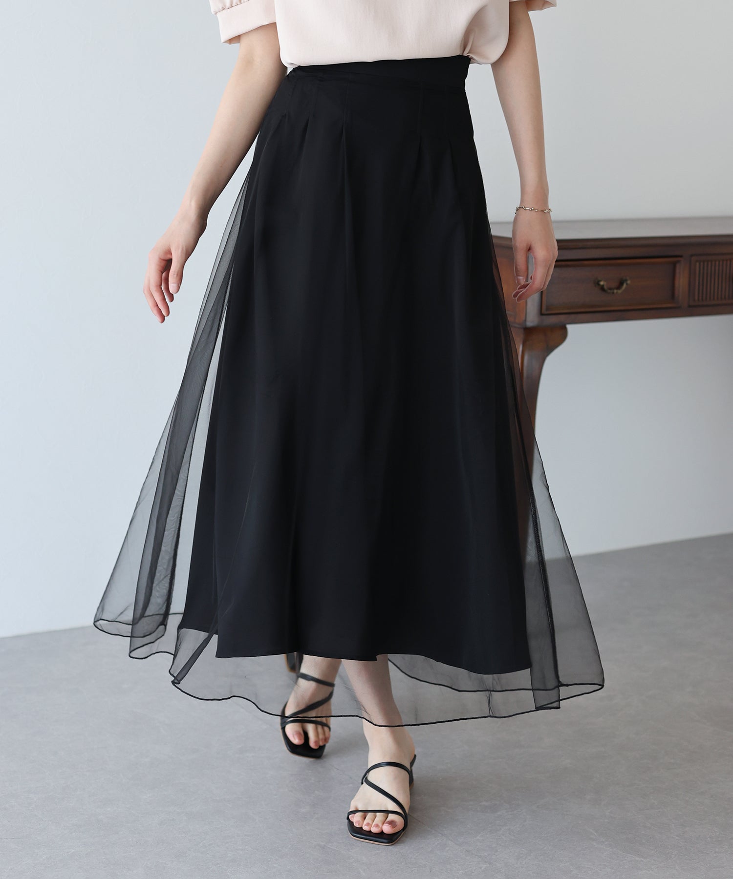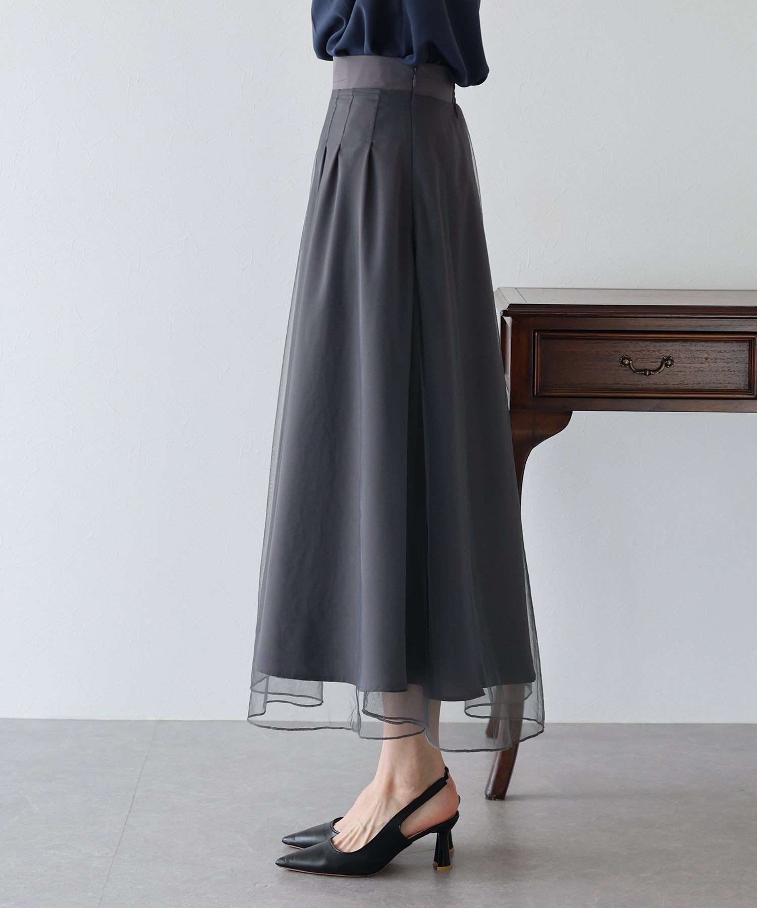 柔らかいチュールが歩くたびにフワッと揺れて足元を軽やかに見せてくれます。