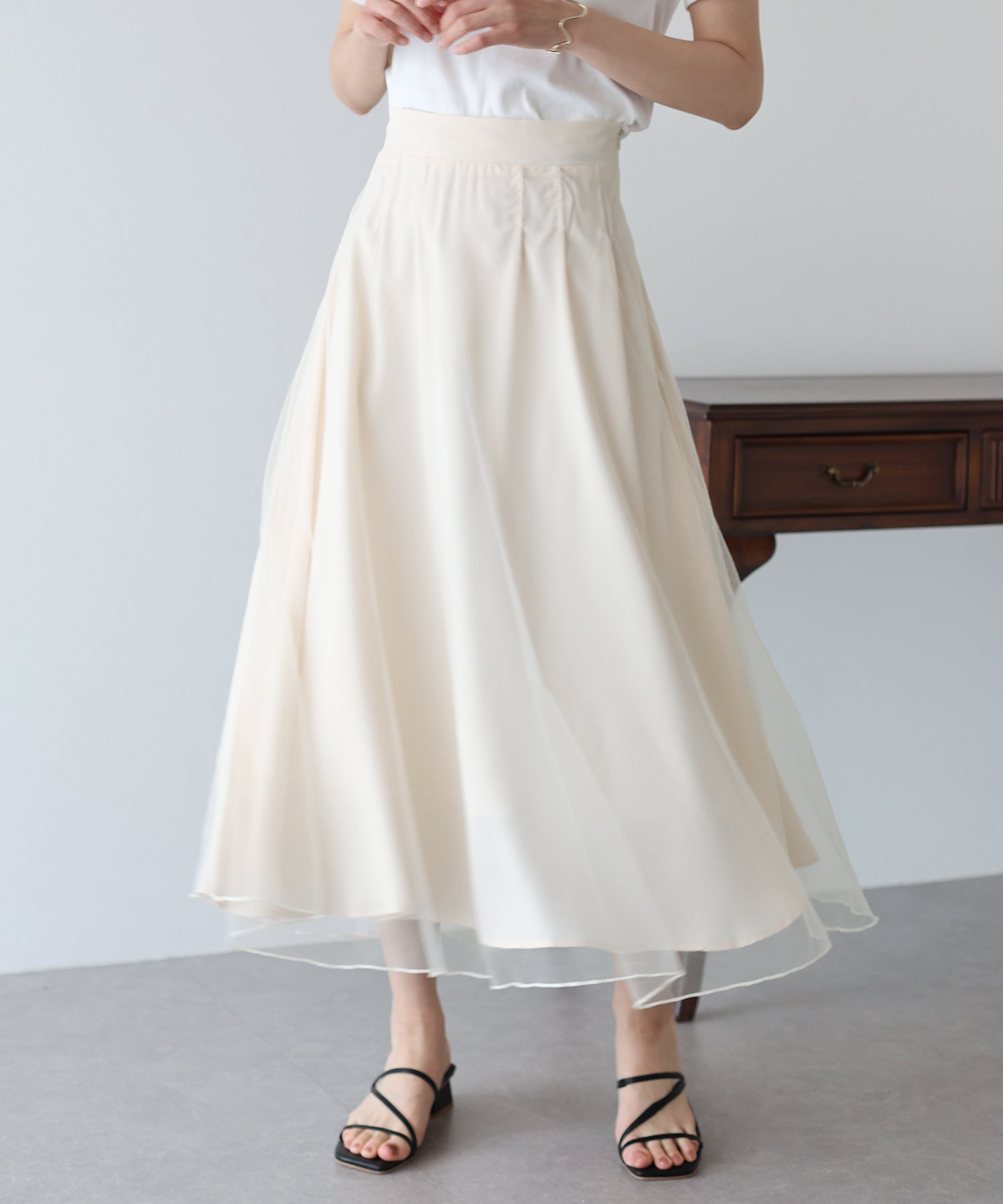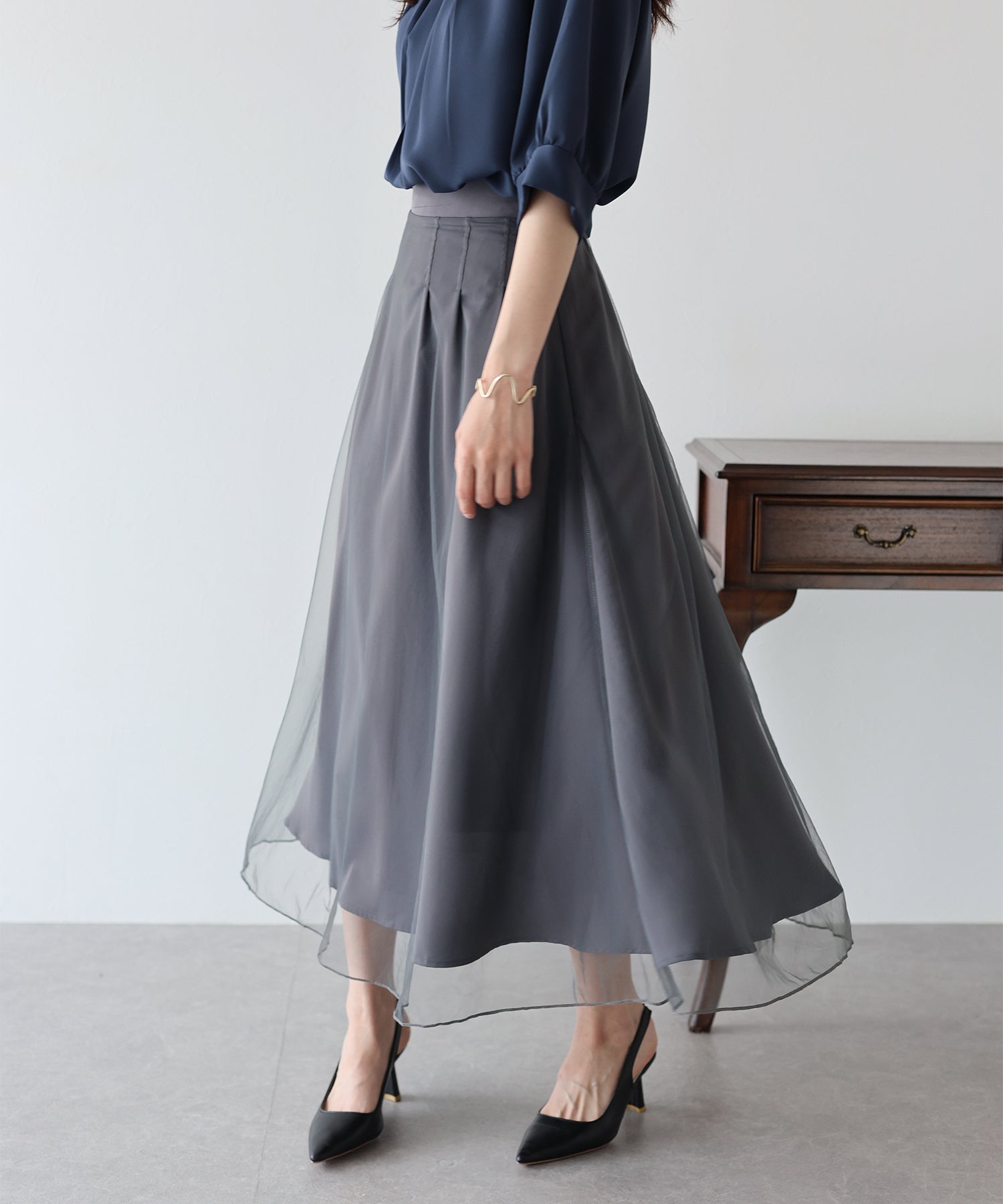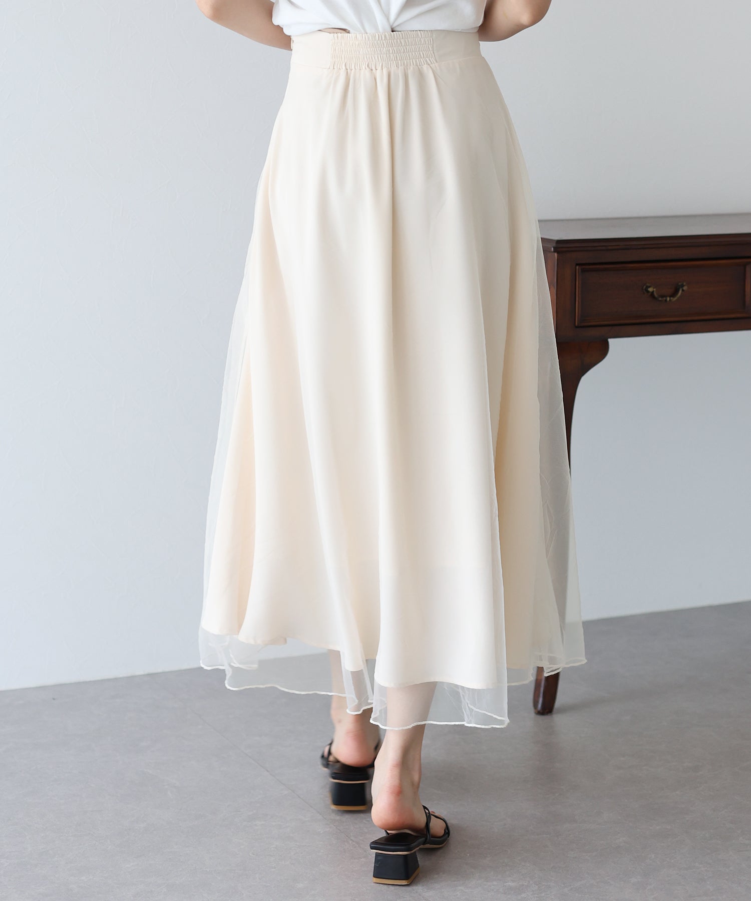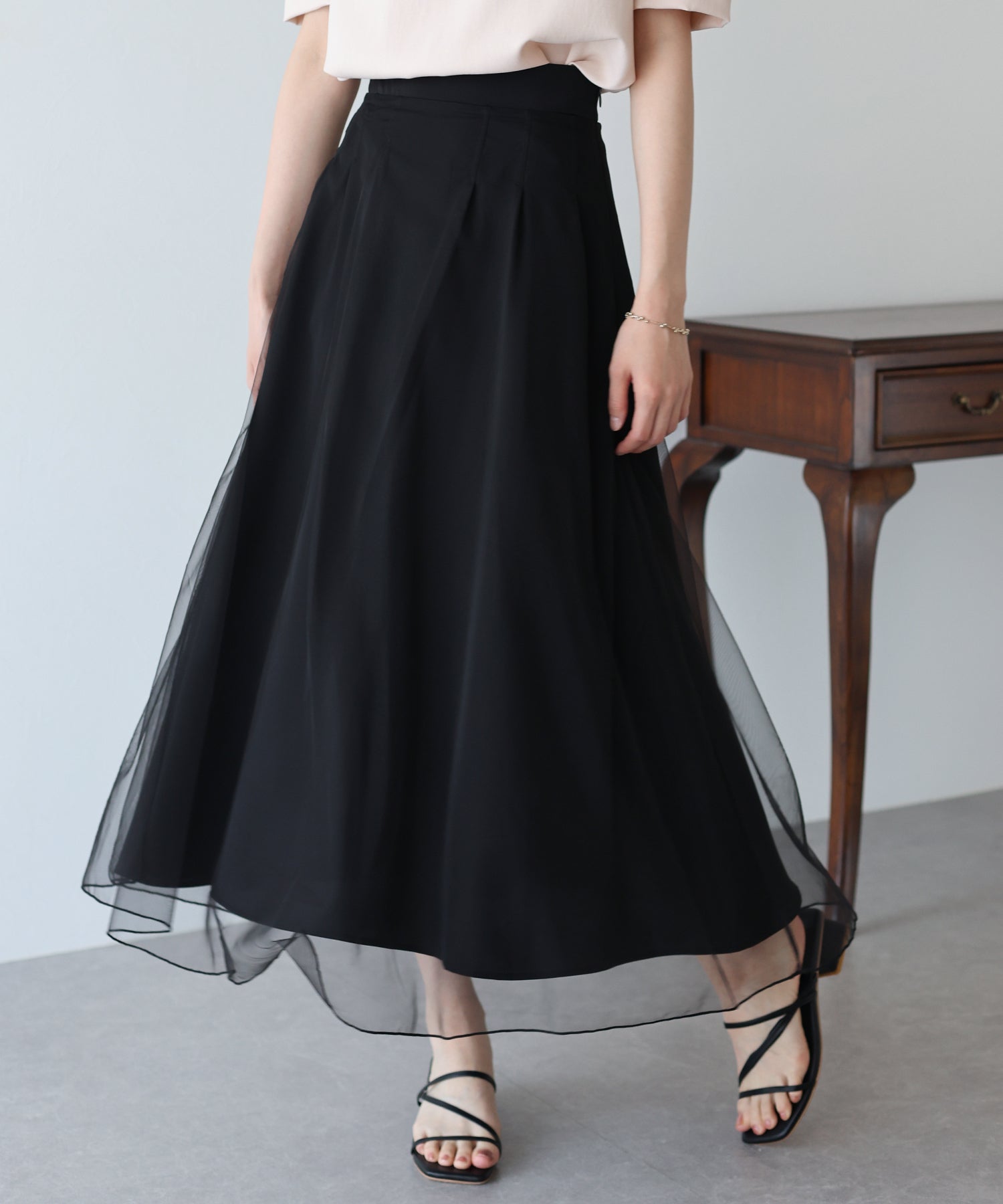 柔らかいチュールが歩くたびにフワッと揺れて足元を軽やかに見せてくれます。