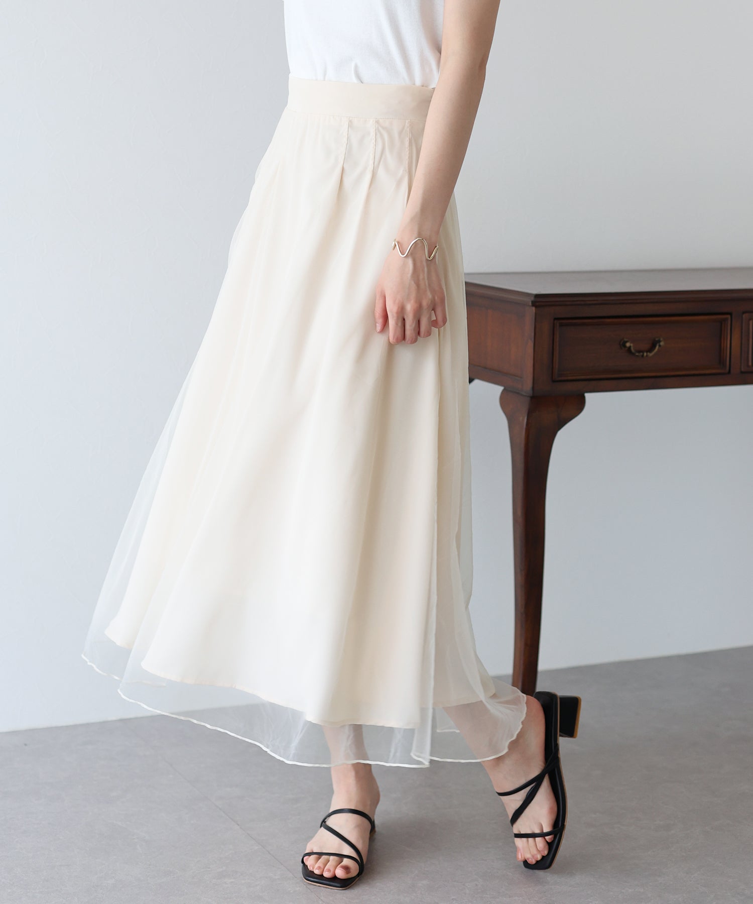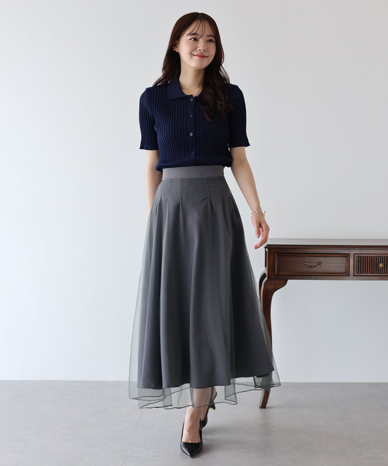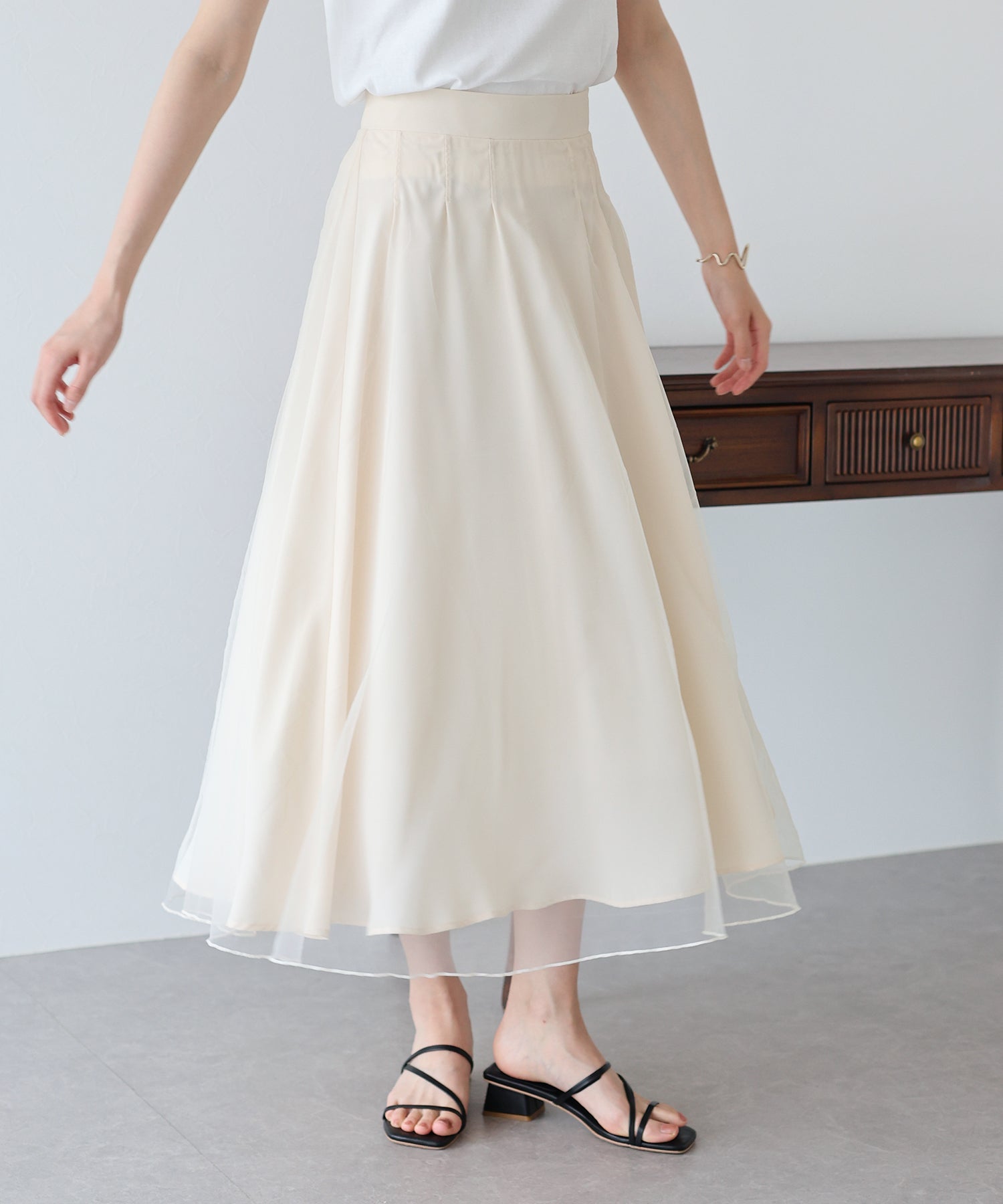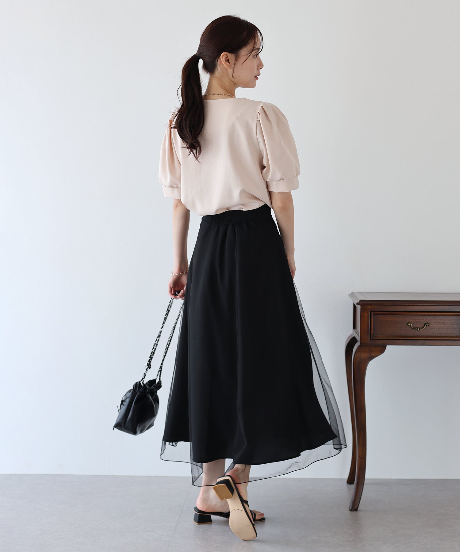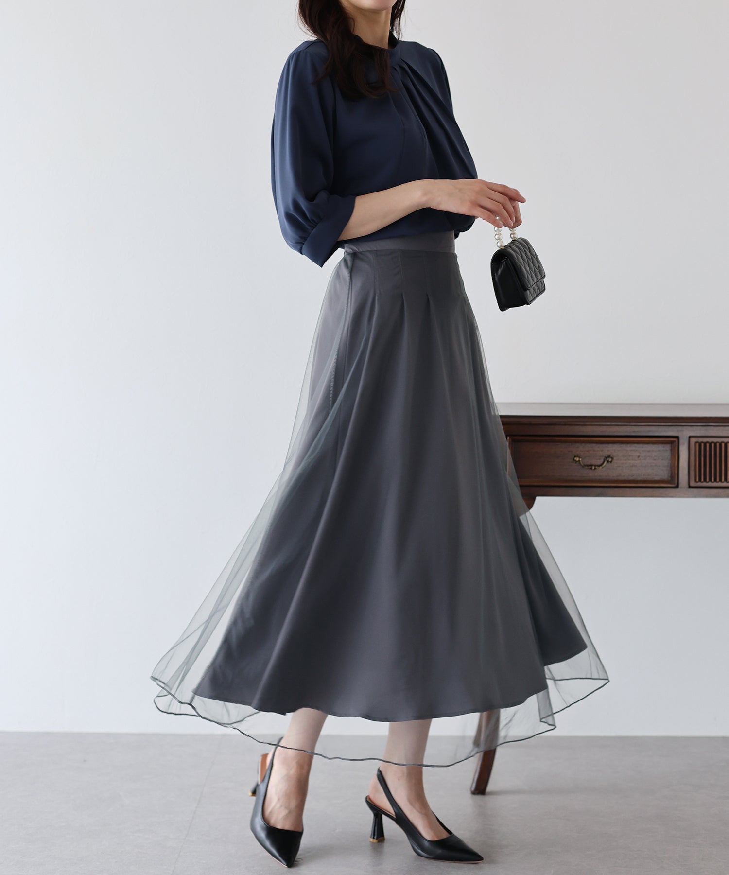 柔らかいチュールが歩くたびにフワッと揺れて足元を軽やかに見せてくれます。