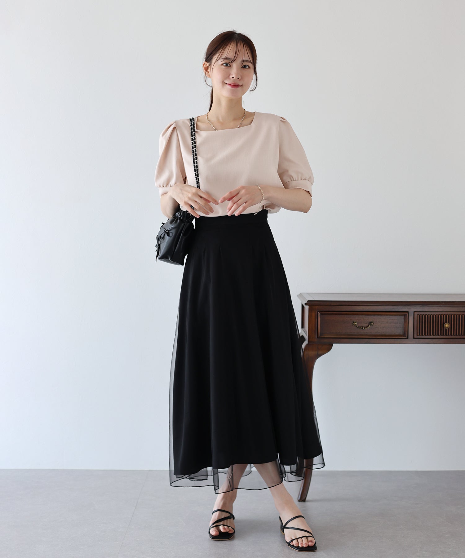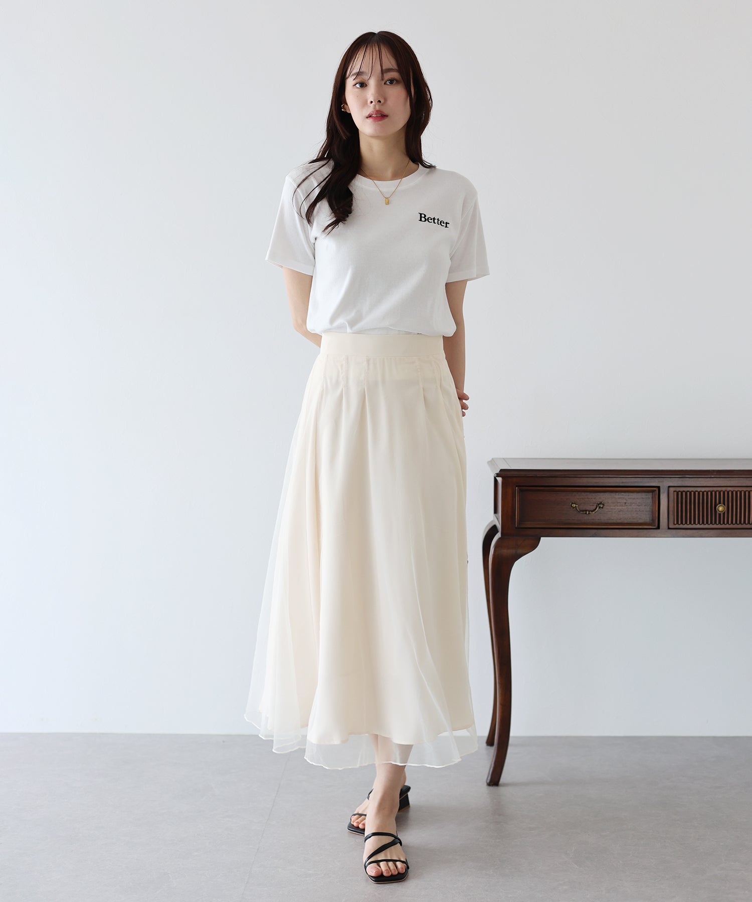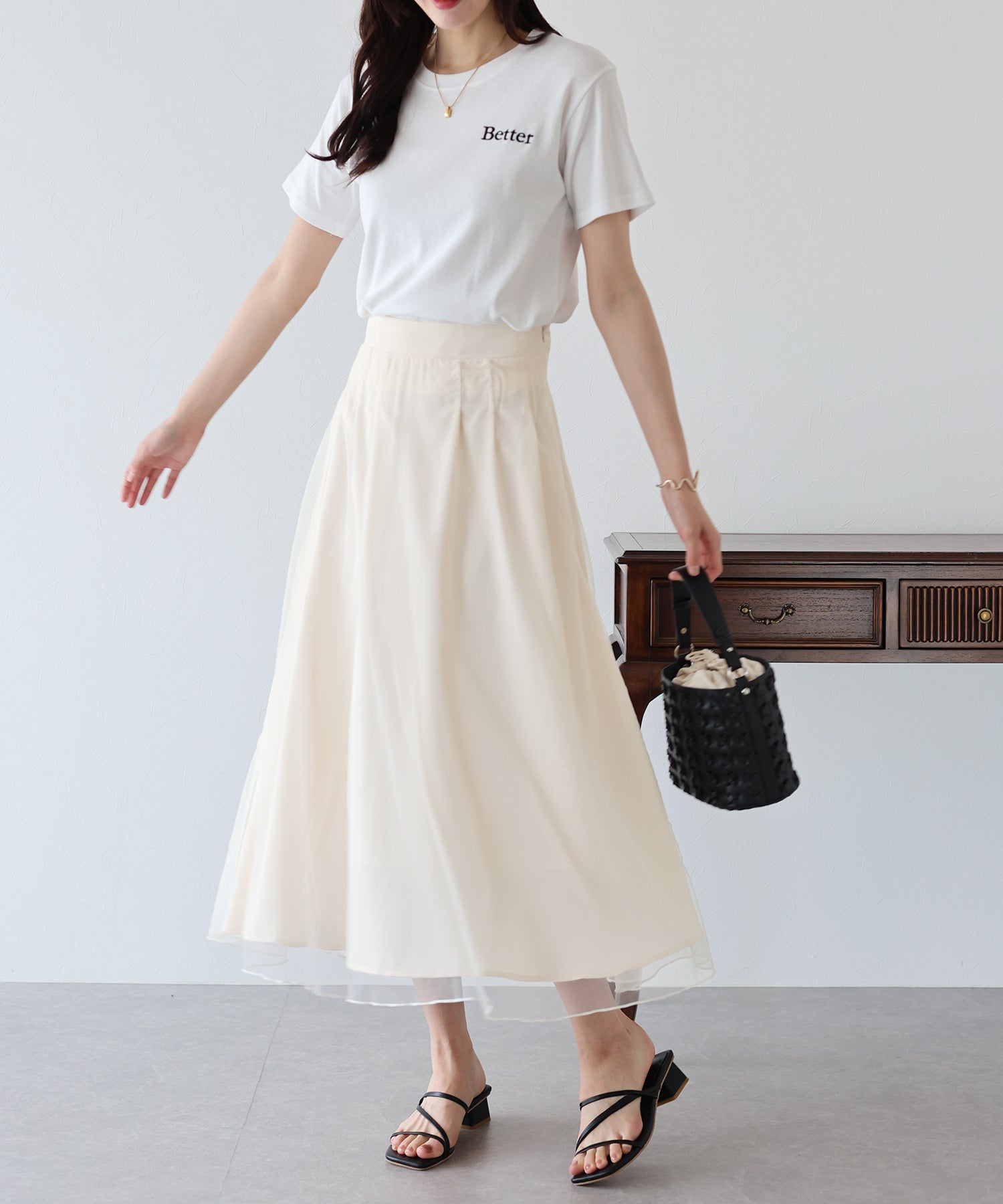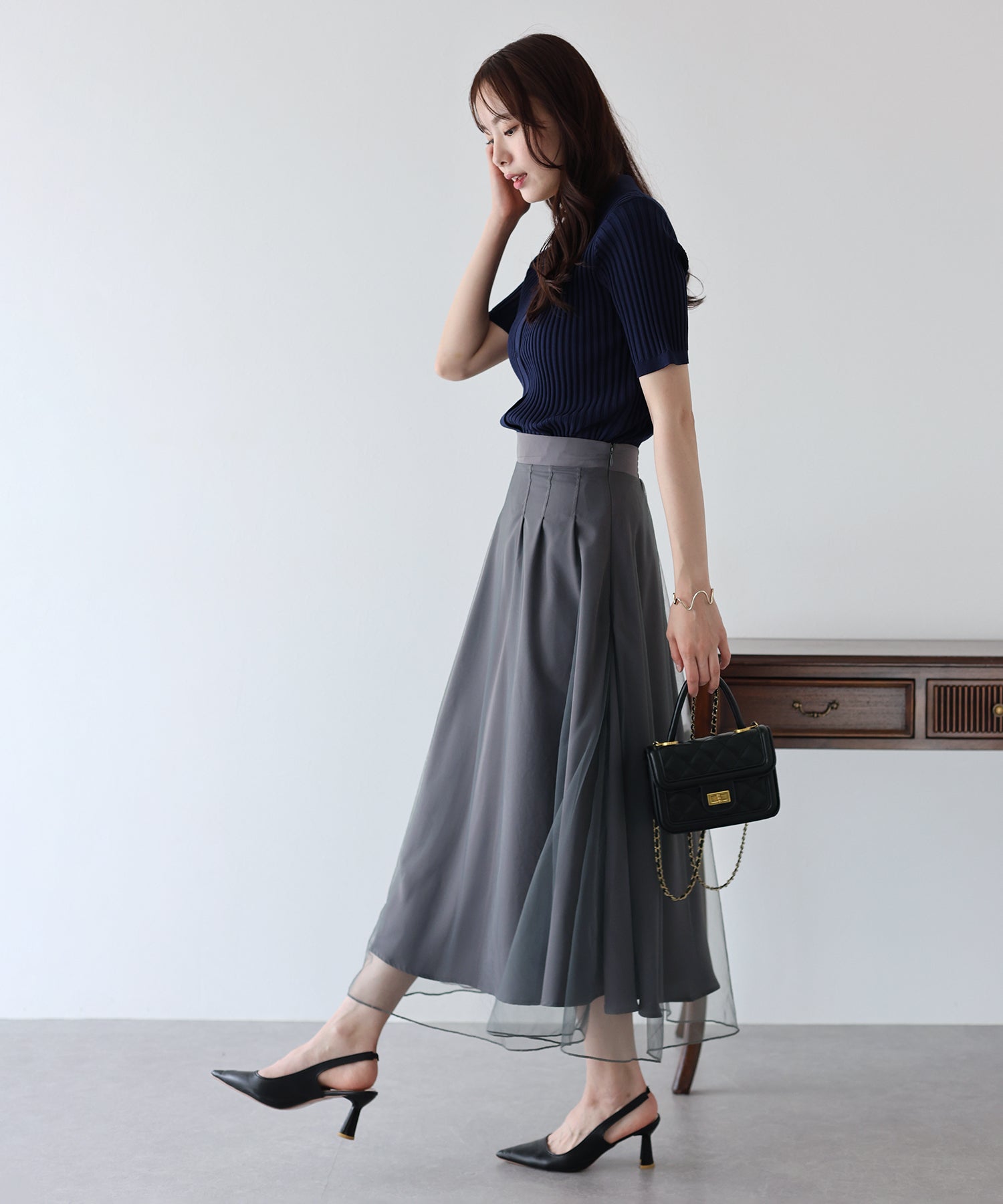 柔らかいチュールが歩くたびにフワッと揺れて足元を軽やかに見せてくれます。