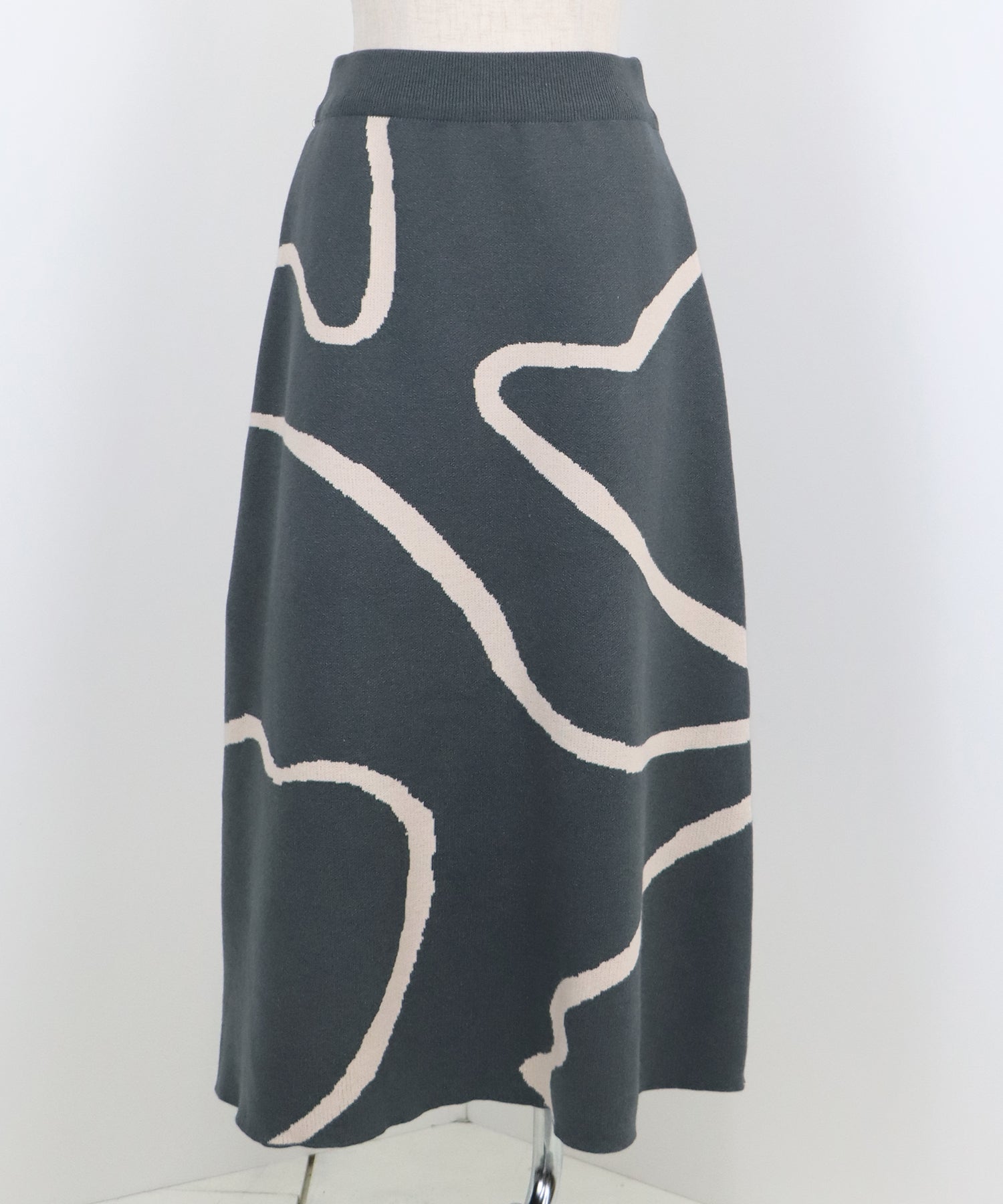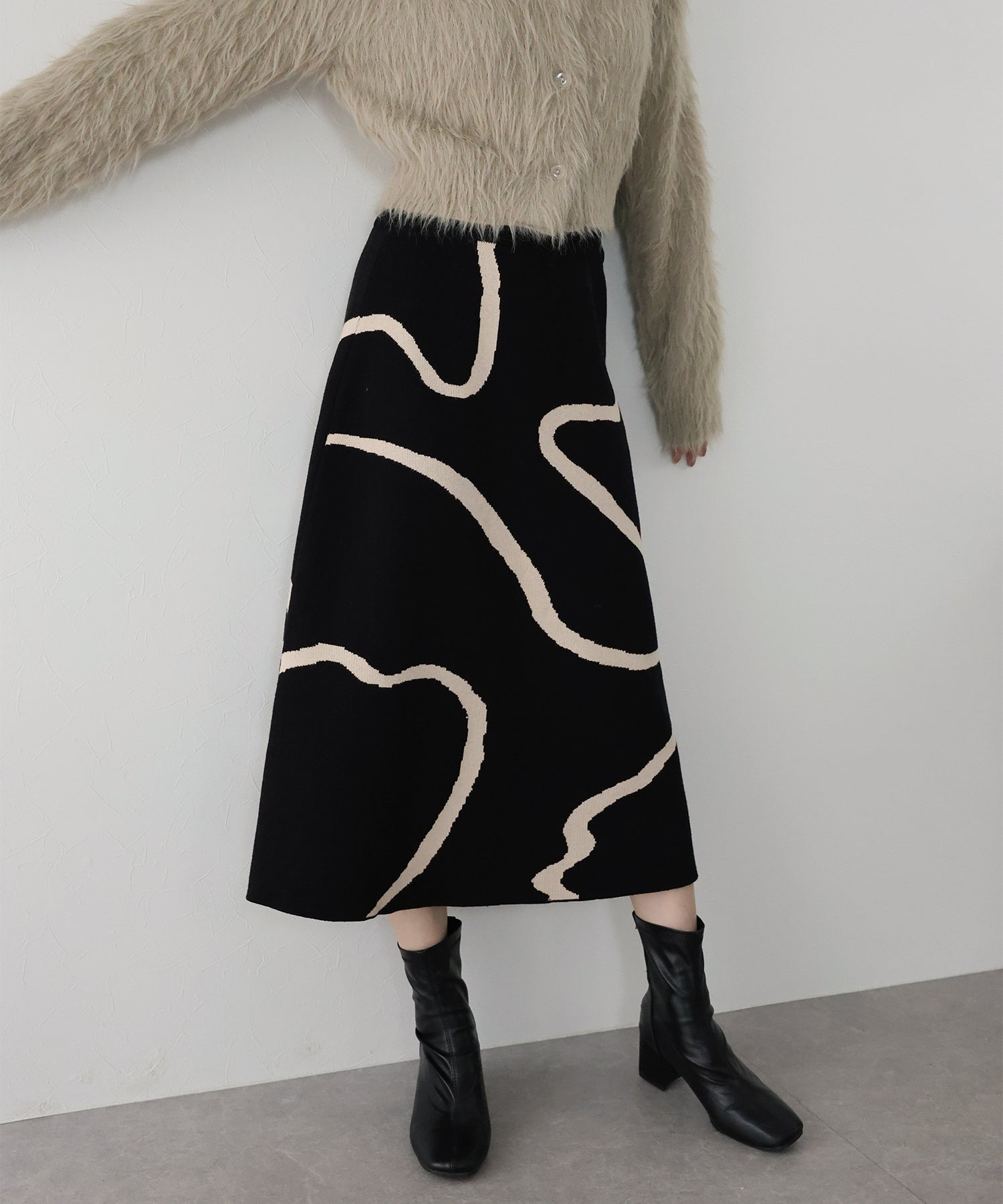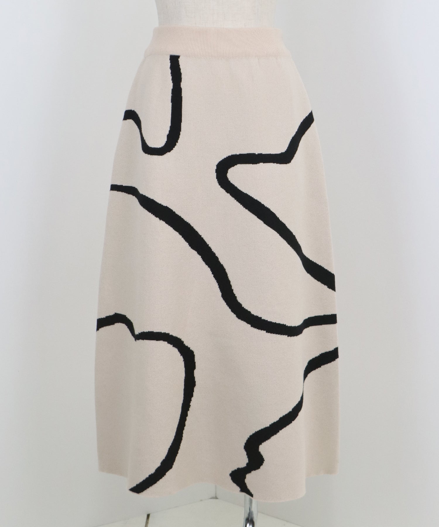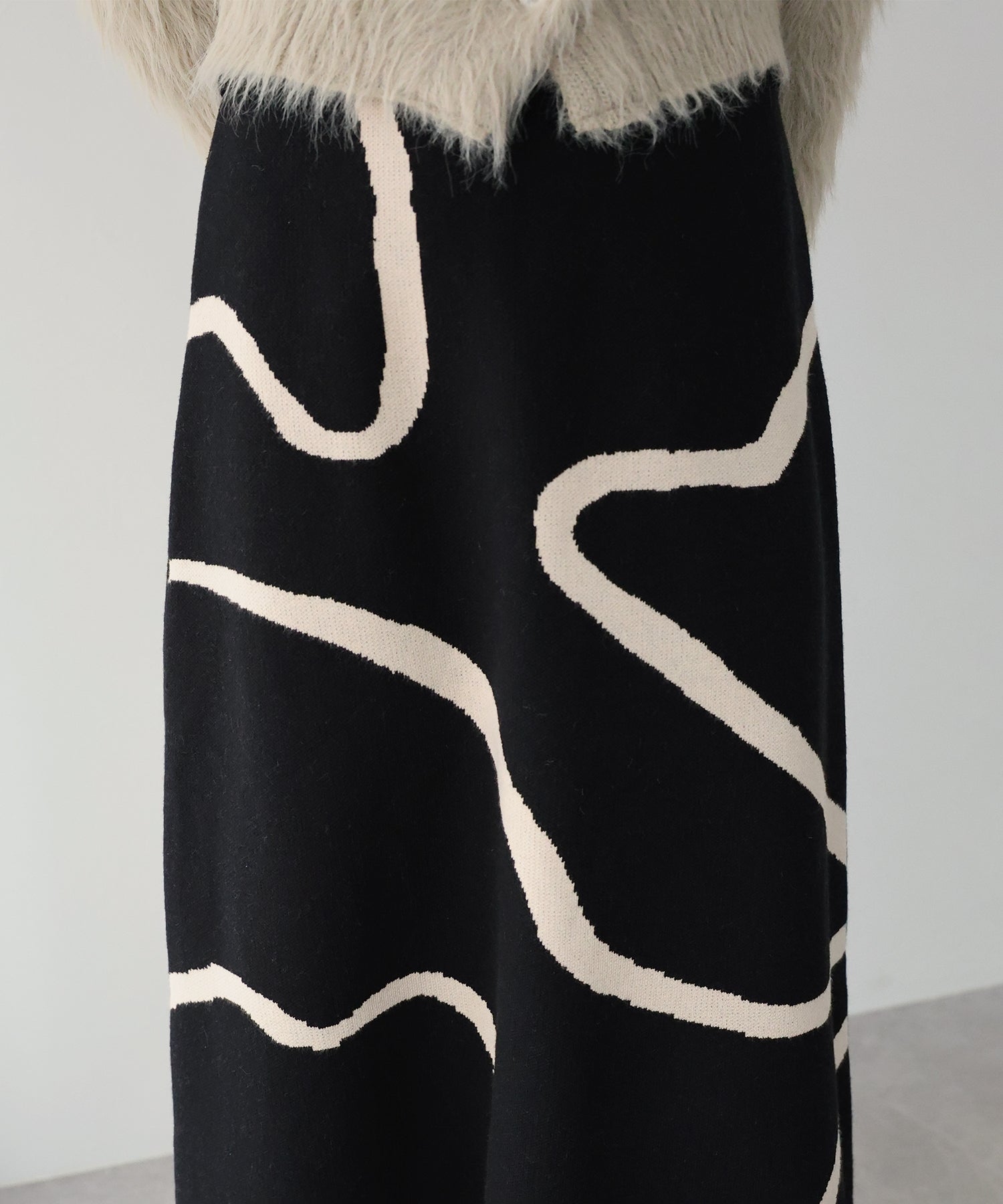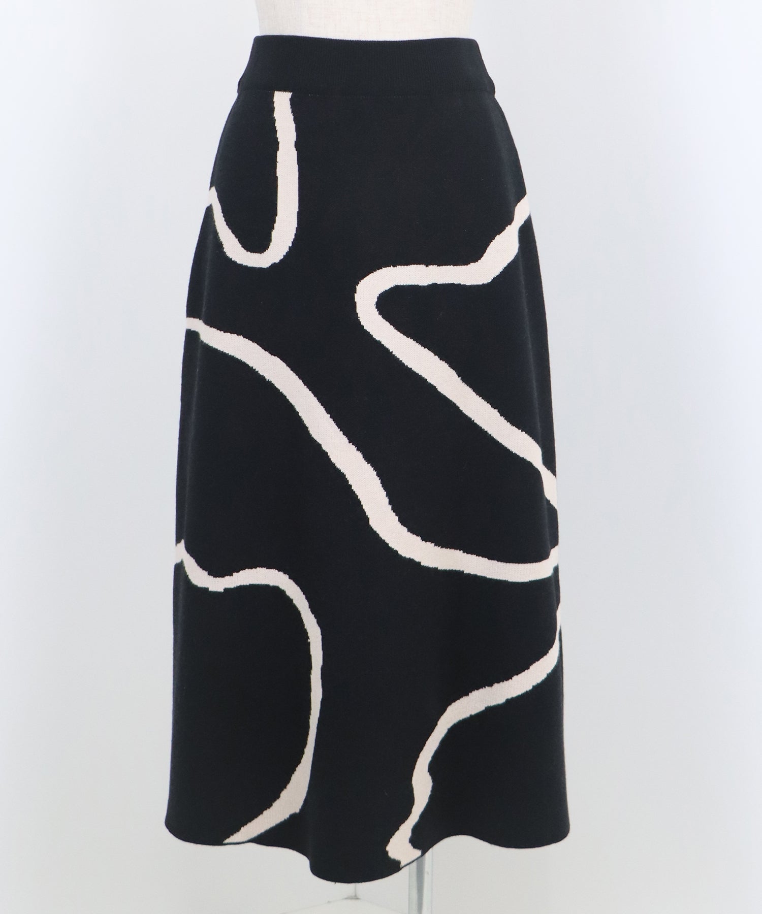 ?POINT ランダムな曲線が目を惹く、ニュアンス感漂うスカート。 大胆に入った配色ラインでインパクトのある見た目ながらも、 ベーシックな配色とすっきりとした台形のフレアーシルエットで大人っぽさをプラス。 優しい肌触りのニット素材&ウエストウエストゴムで履き心地も抜群◎ 厚みのあるしっかりとした生地感で暖かみもあり、秋冬の着こなしに華やかさを与えてくれる主役級スカートです。