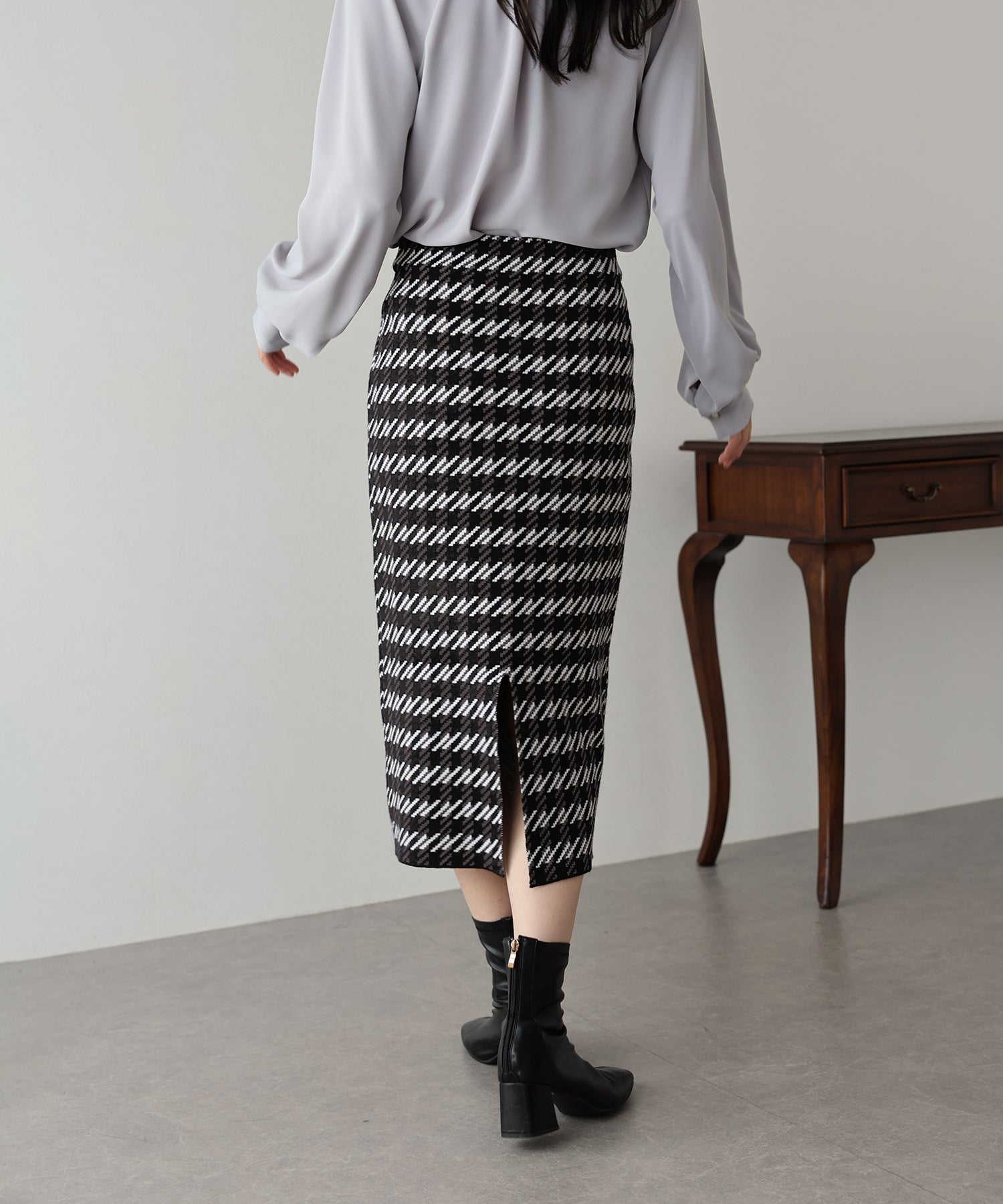 ウエストゴムで楽に着用でき、バックスリットで抜け感を出しました。