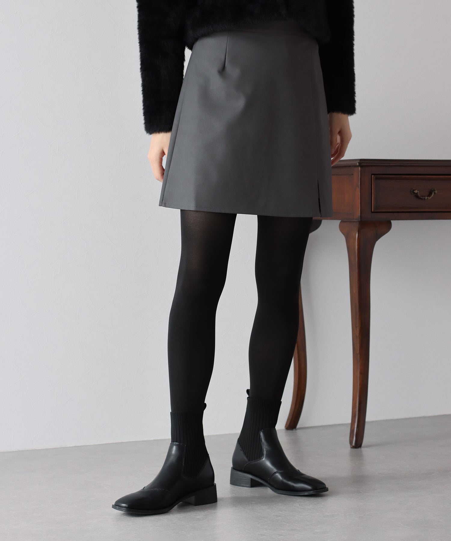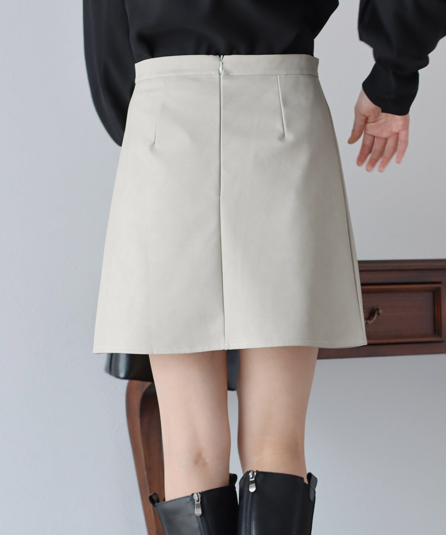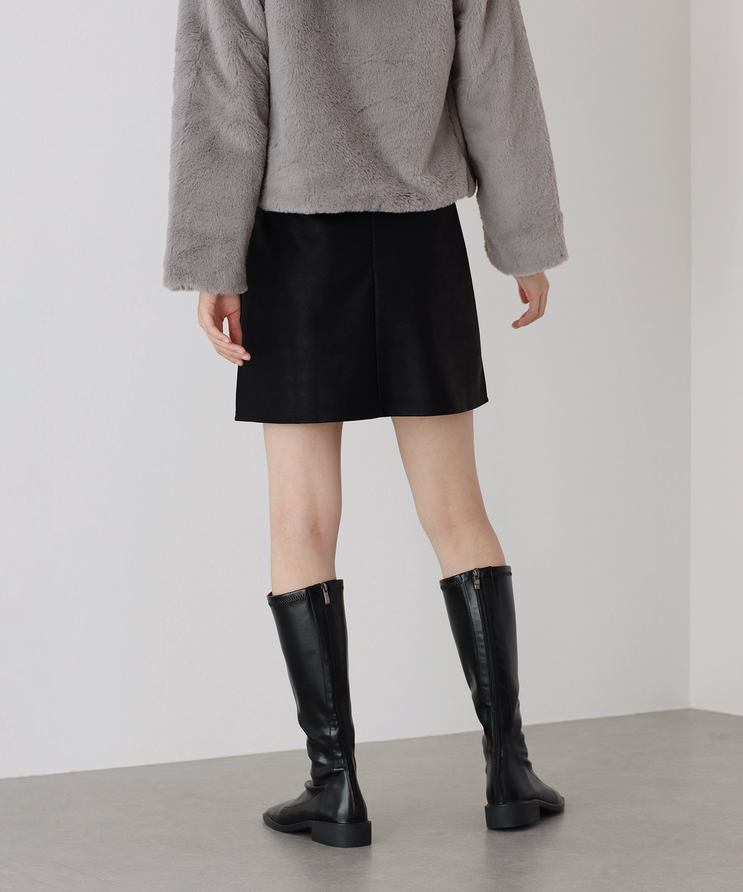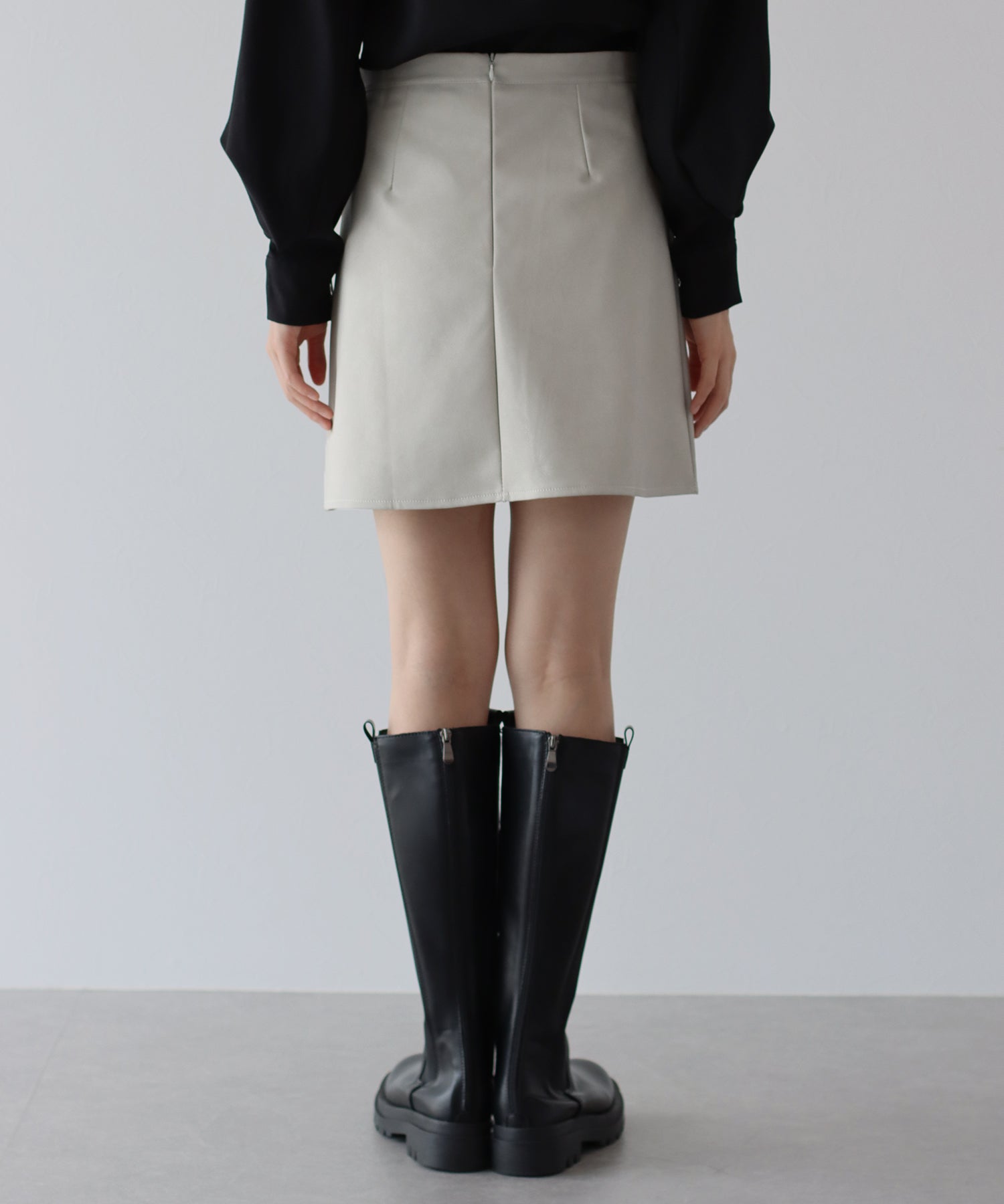 無駄のないシンプルなデザインで、どんなトップスとも馴染むミニスカート。 ミニ丈の台形シルエットスカートは脚長効果を期待できて、ロングブーツと合わせればトレンド感&美脚見え◎ ミニ丈なのでレザーでも重たくならず、スリットがアクセントに。 裏地がペチパンツタイプ仕様になっているのでミニ丈でも安心して着られます。 カラーはベーシックなブラック、チャコールグレーと春先にも楽しめるアイボリーの3色展開。 どんなトップスにも好相性でコーデにクールさをプラスできる、大活躍間違いなしのアイテムです。