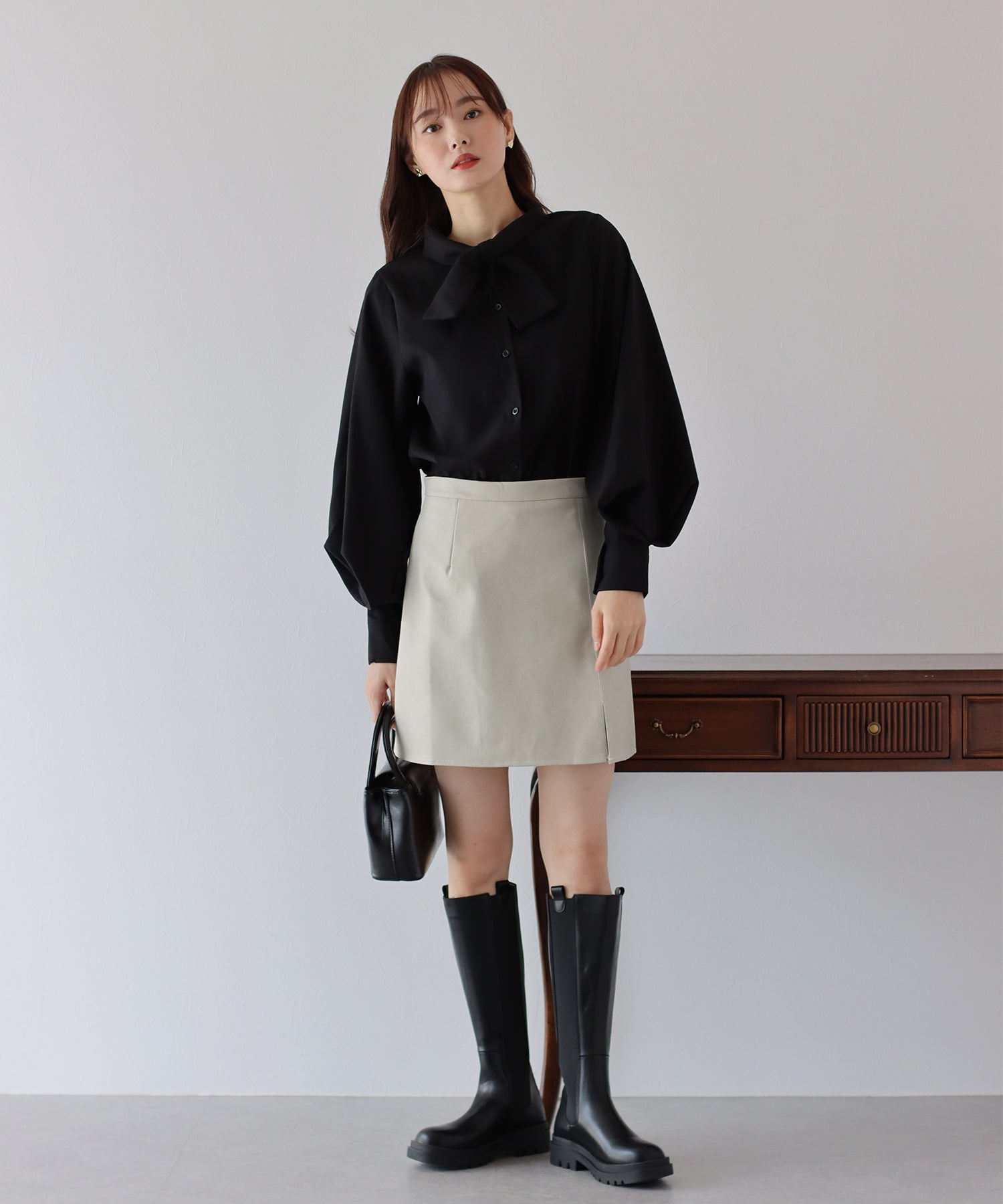 ?STYLING オーバーサイズのトップスと合わせるだけで韓国コーデが完成します。 スウェットに合わせてカジュアルにまとめるのも◎ キレイめブラウスやシャツ、ニットやTシャツなど、幅広いスタイルに合わせられます。 足元は、ブーツやローファーを合わせていただくのがおすすめです。