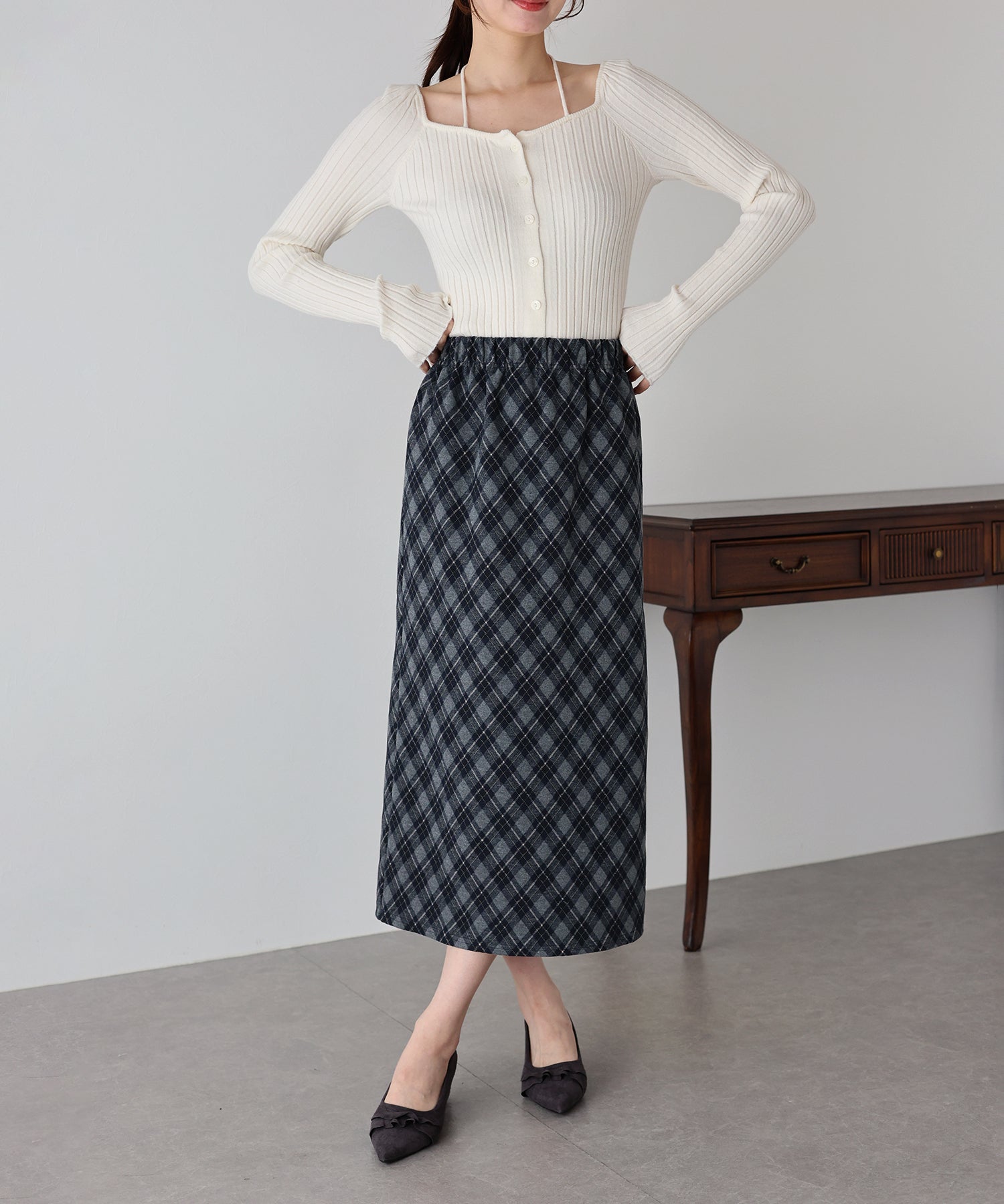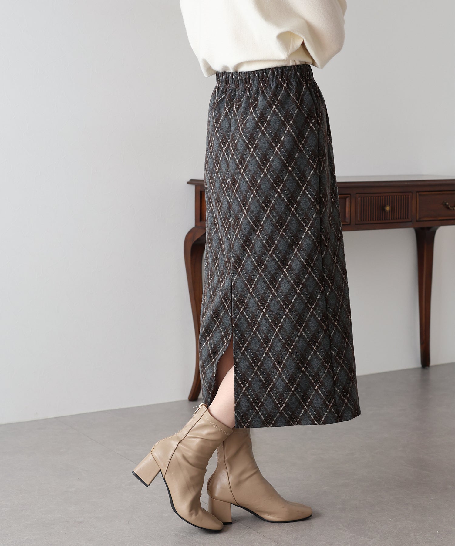 - 丈が選べるチェックロングスカート