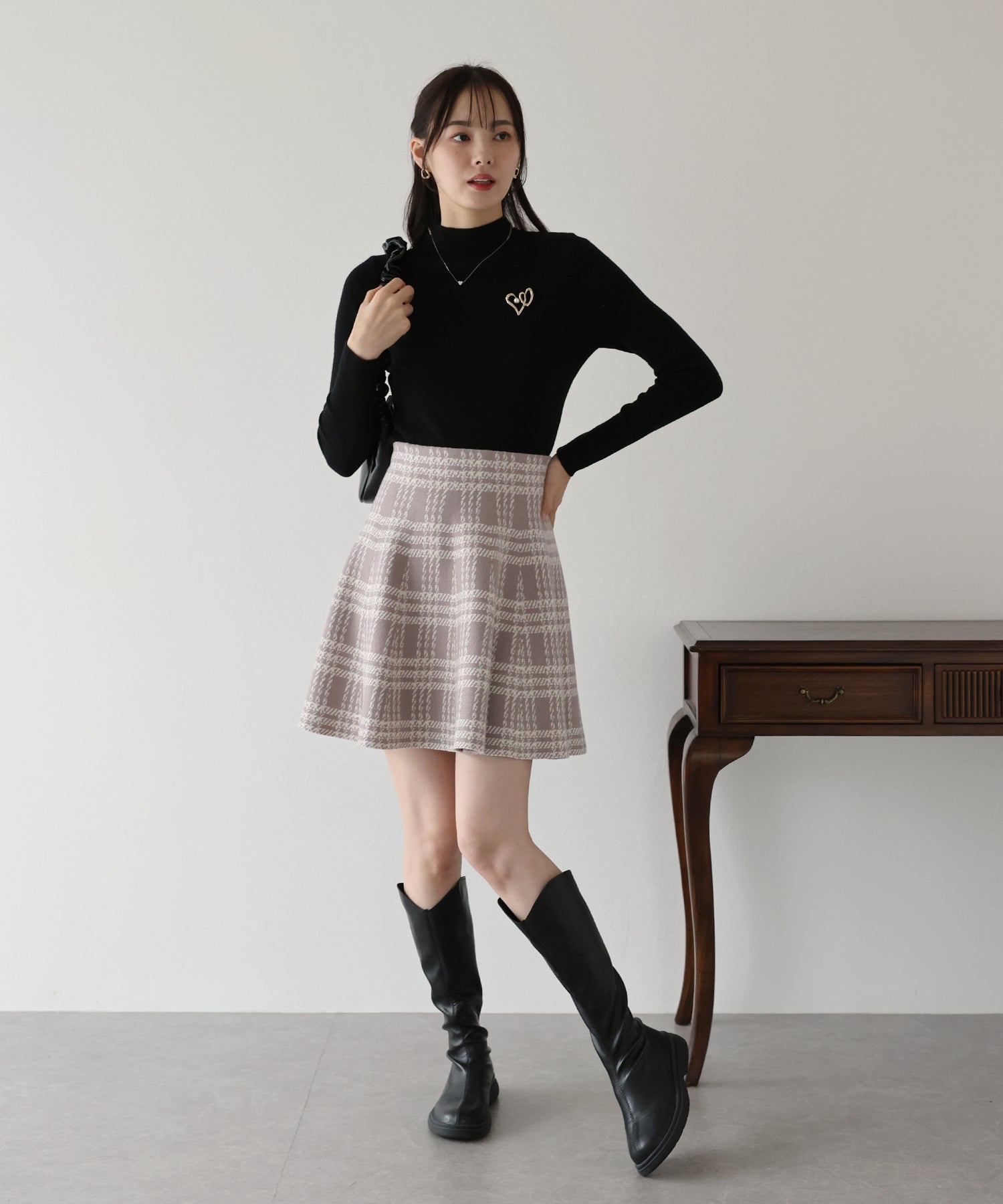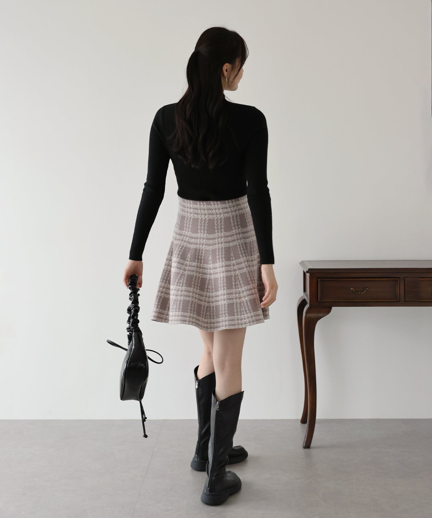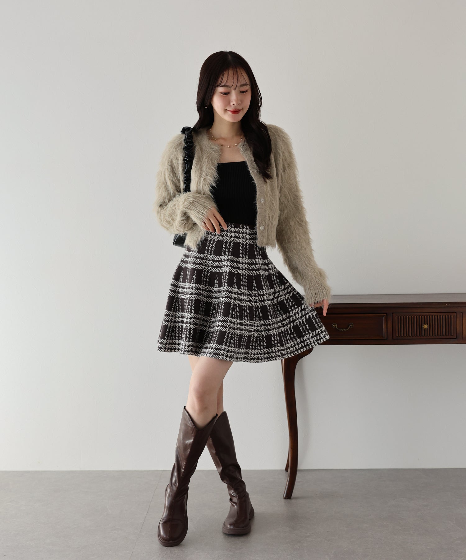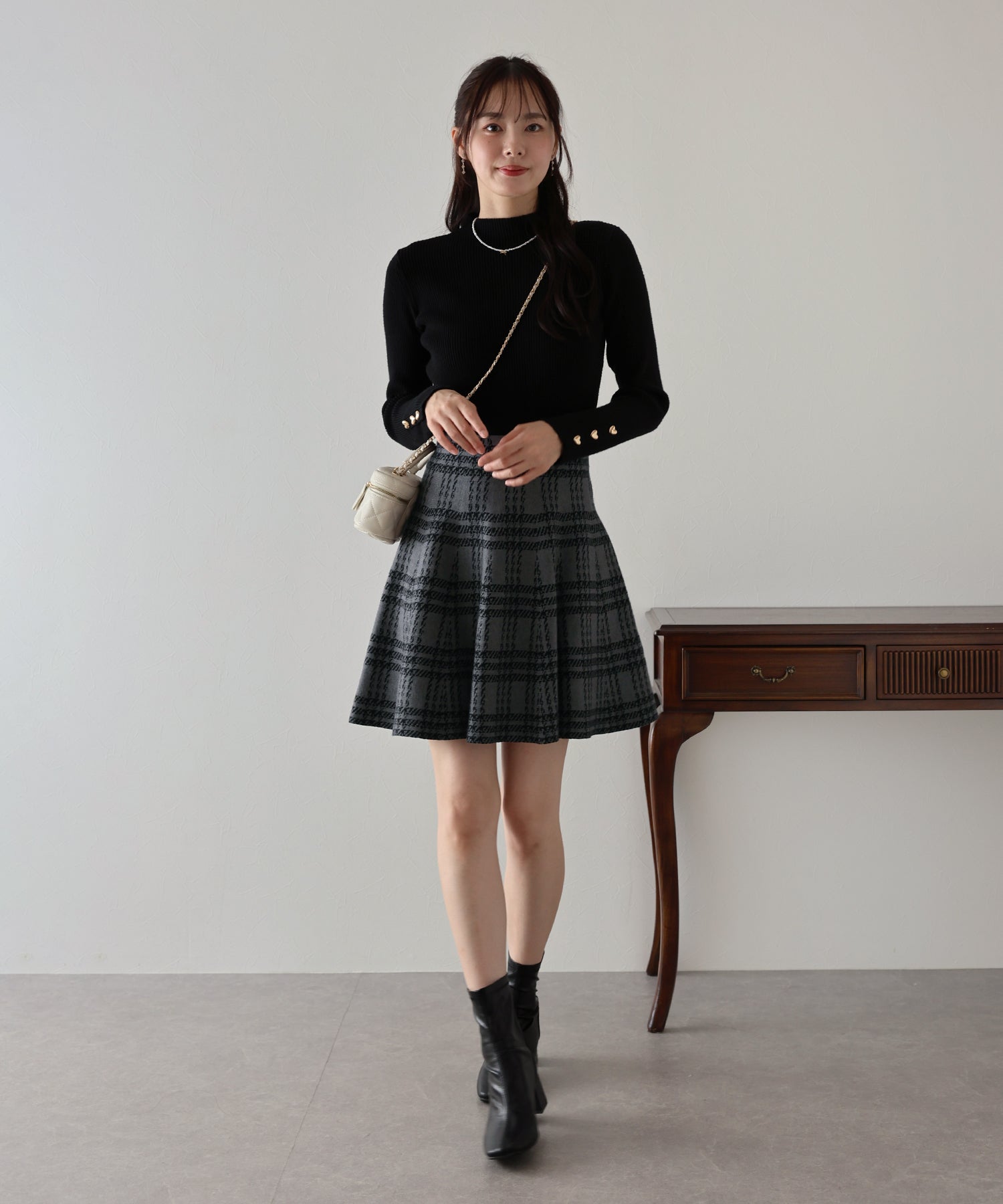 | 生地 | 程よい厚みのもちっとしたチェック柄ジャガードニット素材